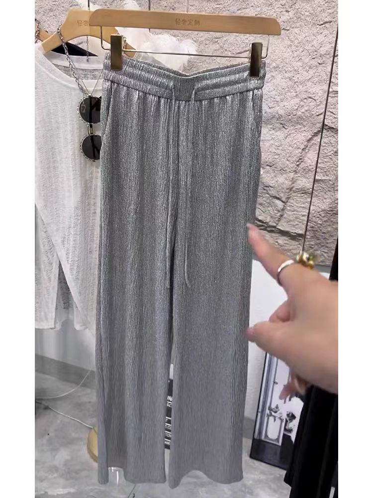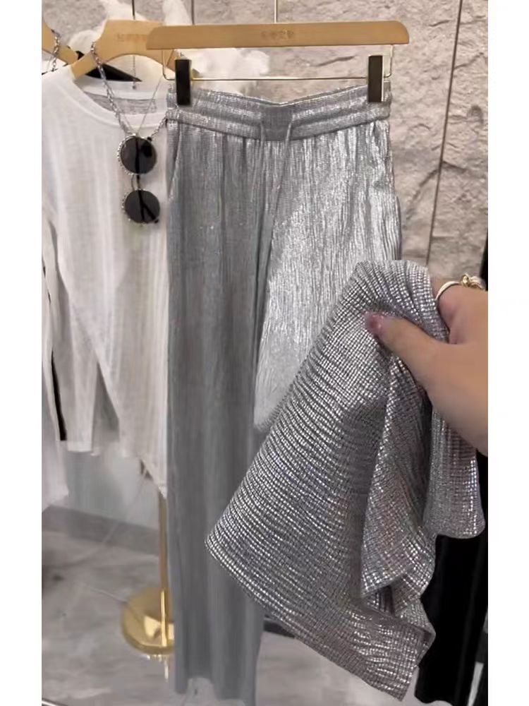 欧货冰丝重工高级感垂感窄版阔腿裤女夏季亮闪闪薄款拖地直筒长裤