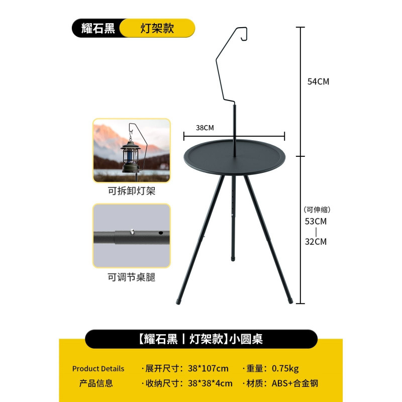 야외 접이식 캠핑 테이블, 휴대용 소형 원형 테이블, 피크닉 캠핑 장비, 커피 테이블, 조명 스탠드가 있는 이중층 리프팅 테이블