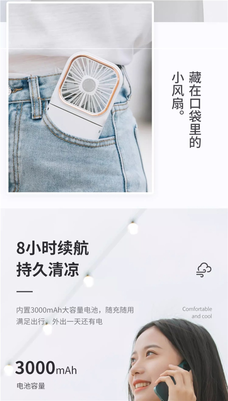 • 플래그십 모델 [글레이셔 화이트] 스탠드는 접을 수 있고 찬 바람이 분다, 배터리 수명이 길다, 3단계 조절 가능