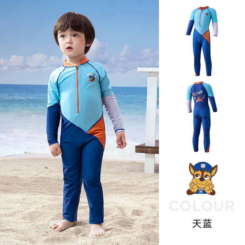 Woof 팀 어린이 수영복 소년의 긴 소매 선 스크린 수영복 학생 수영 훈련 스노클링 서핑 해파리 세트
