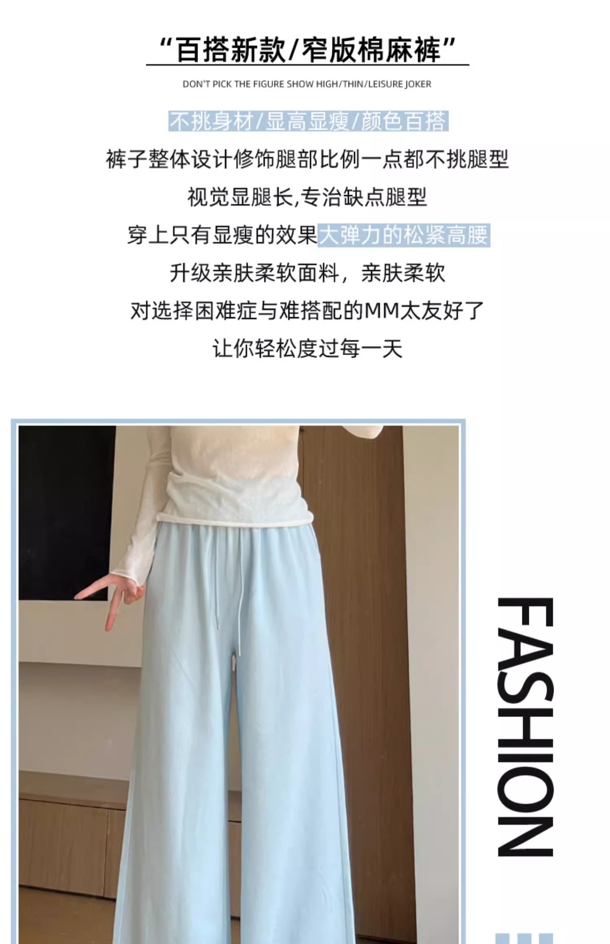 화이트 코튼 린넨 와이드 레그 바지 여성 여름 2025 새로운 높은 허리 스트레이트 루즈 게으른 스타일 좁은 캐주얼 바지 얇은스토어 가기