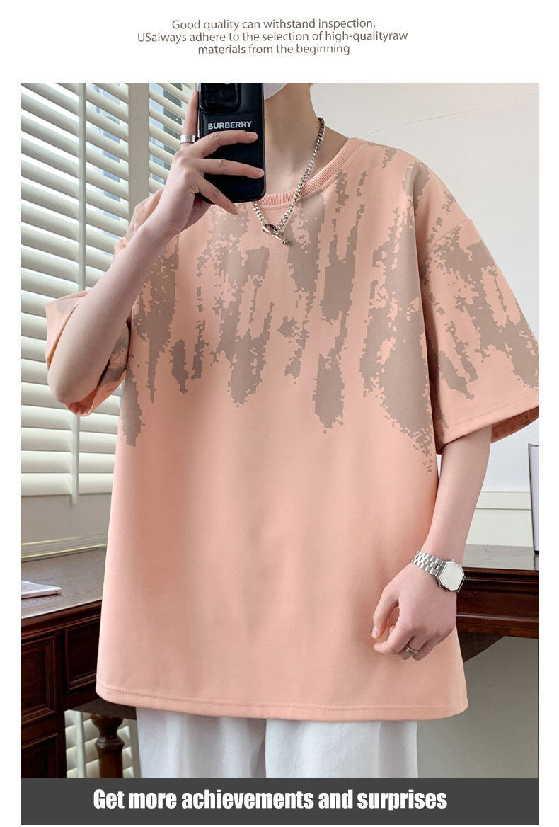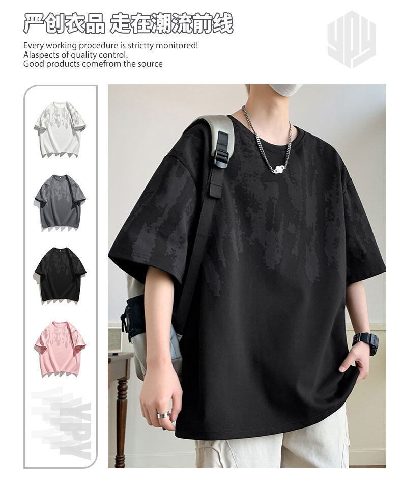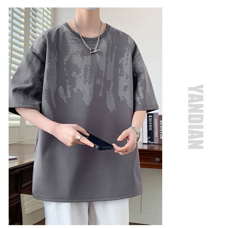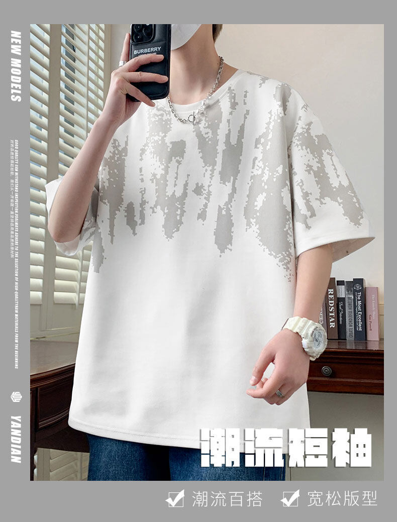 여름 반팔 티셔츠 남성용 루즈 캐주얼 올 매치 니치 디자인 센스 플러스 사이즈 남성용 대형 얇은 티셔츠스토어 가기