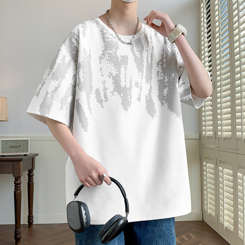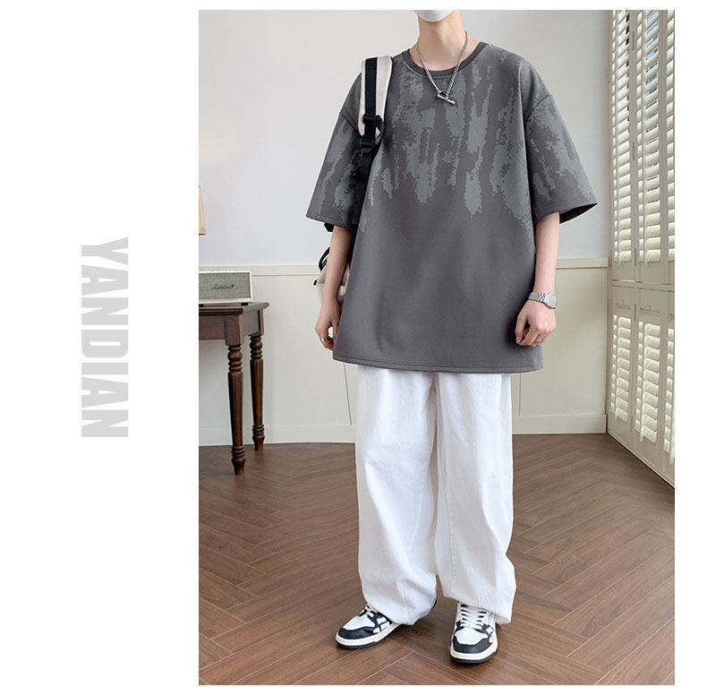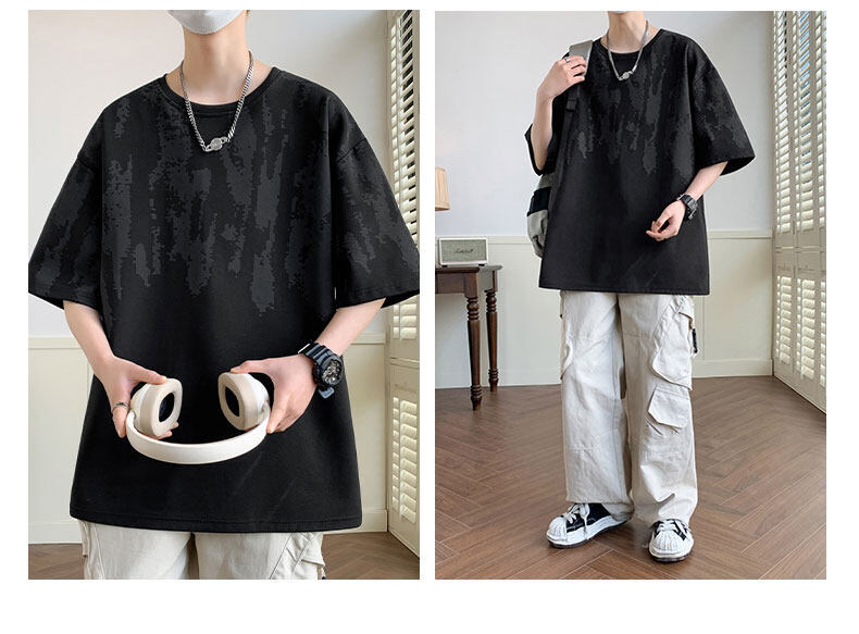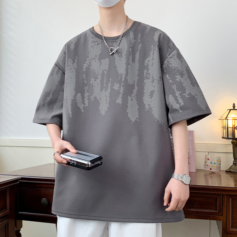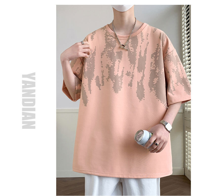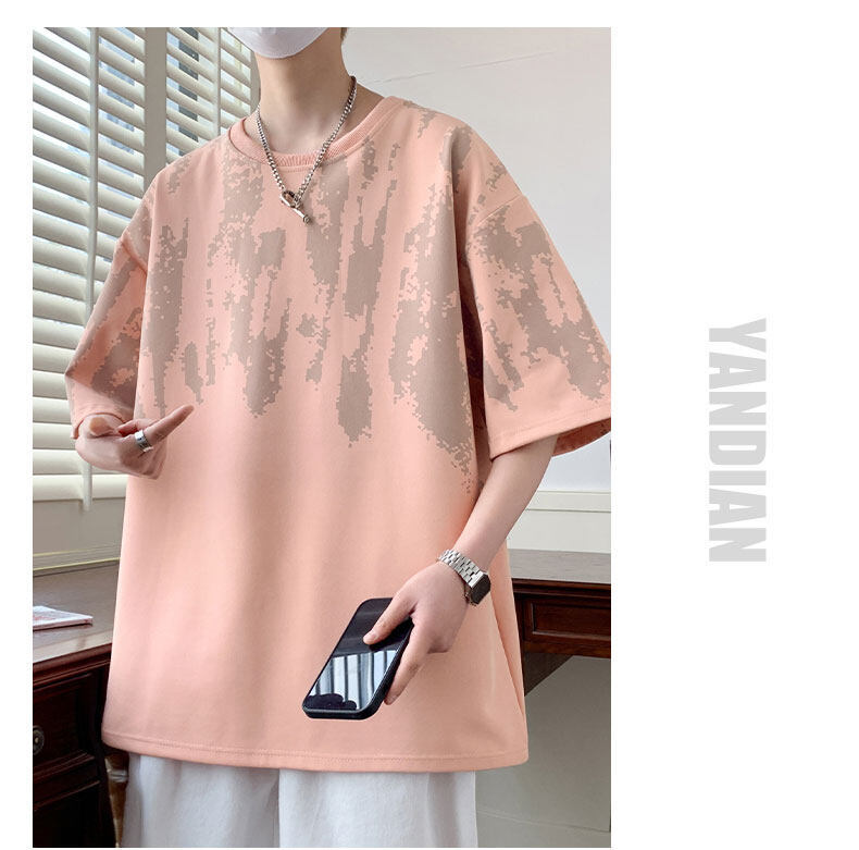 여름 반팔 티셔츠 남성용 루즈 캐주얼 올 매치 니치 디자인 센스 플러스 사이즈 남성용 대형 얇은 티셔츠스토어 가기