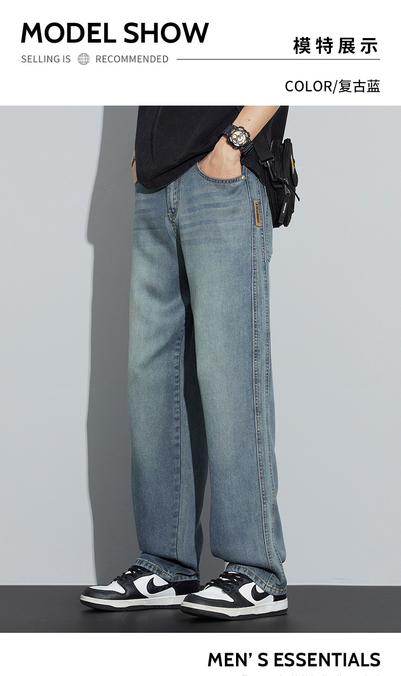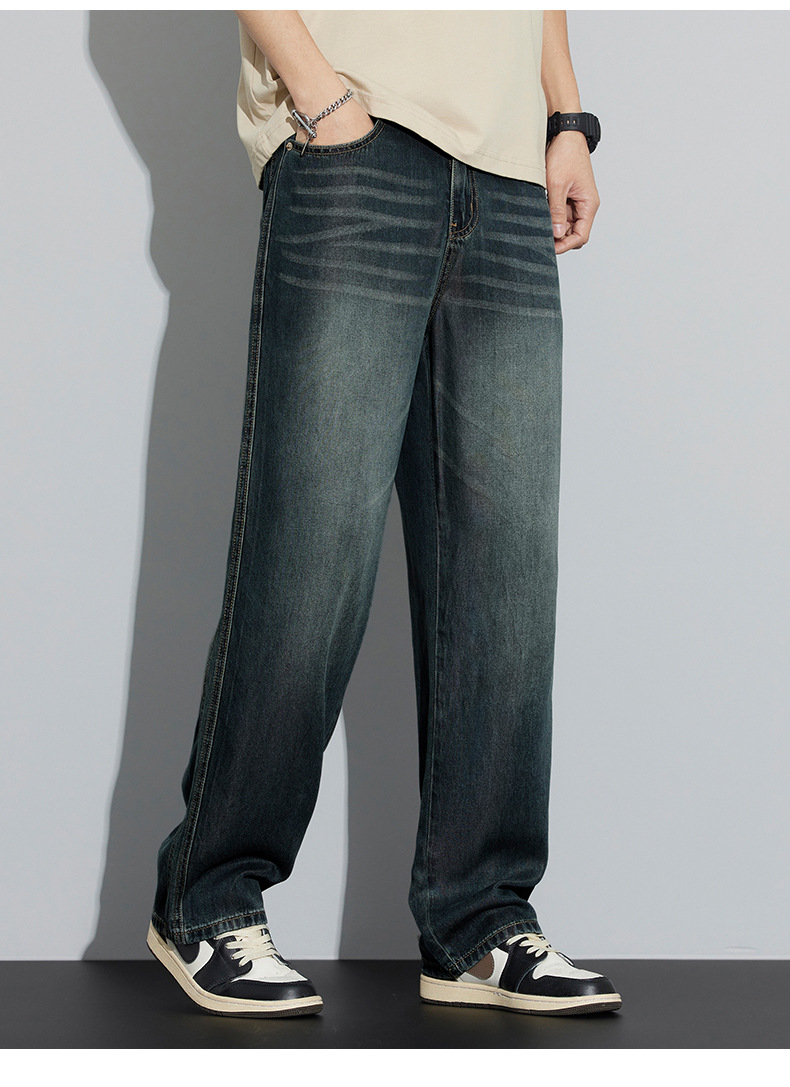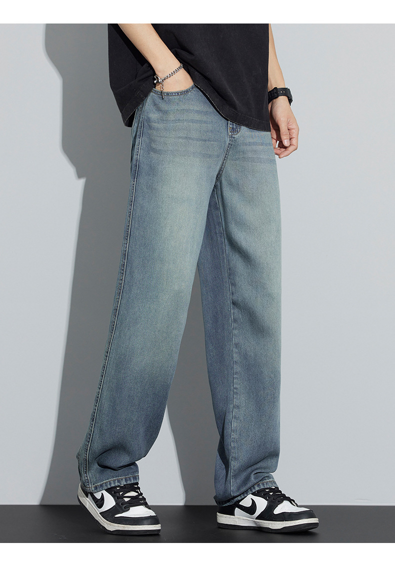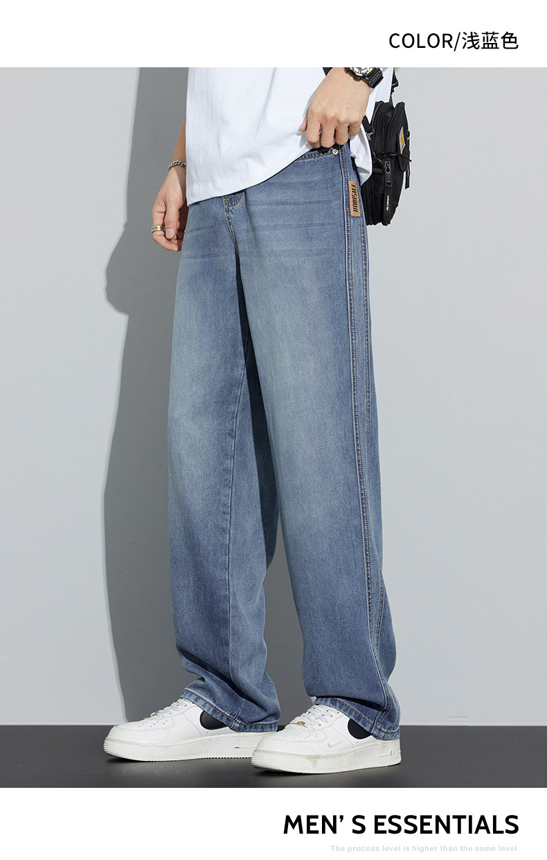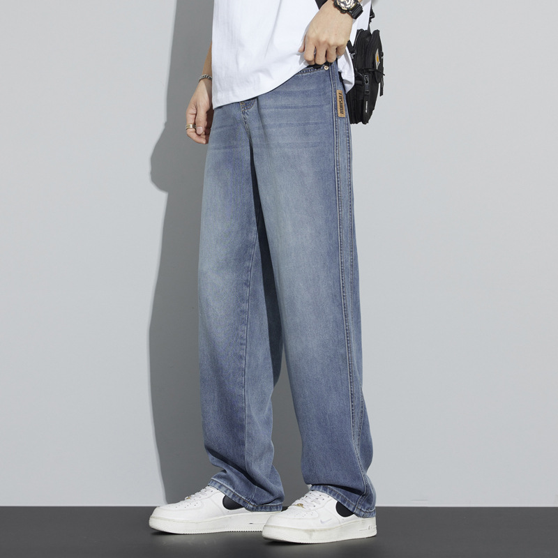 2025 여름 얇은 텐셀 청바지 남성용 느슨한 넓은 다리 바지 Lyocell 담금 통기성 캐주얼 바지스토어 가기