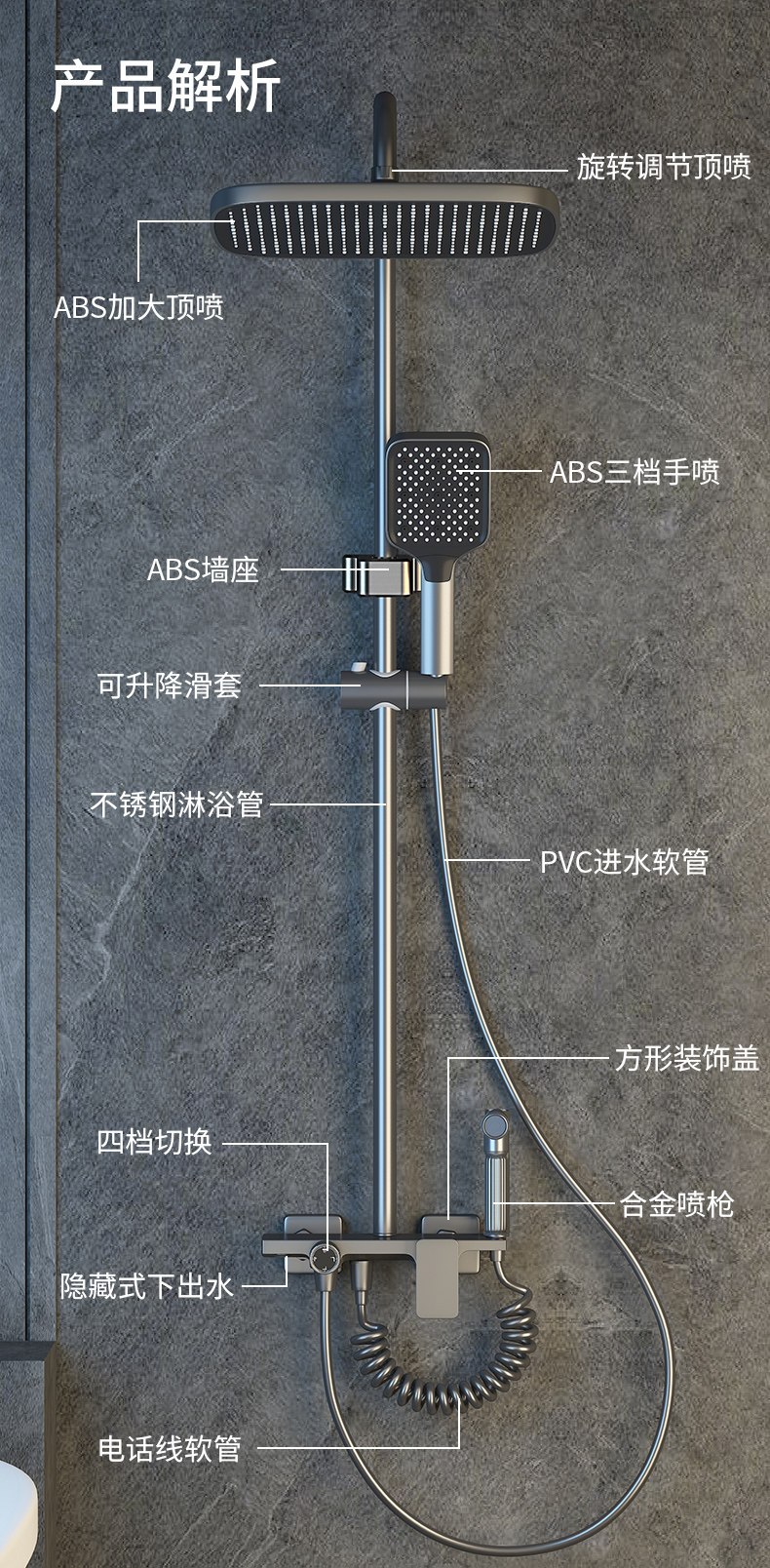 국경 간 무역용 건식 샤워기 세트 가정용 욕실 4단계 샤워기 전동식 샤워기스토어 가기