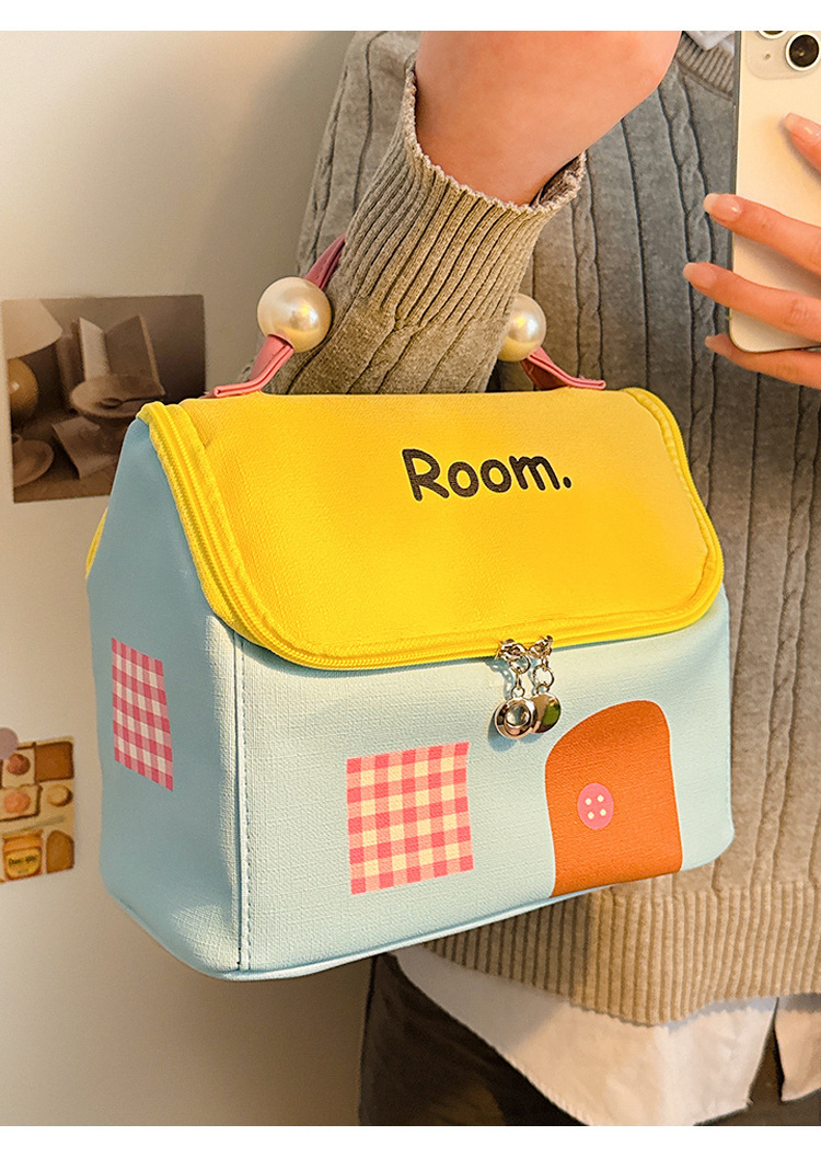 • [블루에 노란색] 작은 집 화장품 가방
