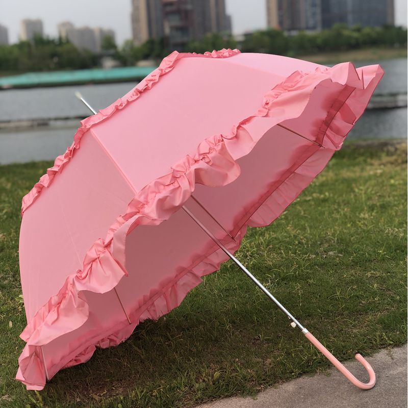 소녀의 작은 신선한 더블 레이스 크리 에이 티브 우산 비 또는 빛 긴 손잡이 태양 우산 로리타 결혼식 우산스토어 가기