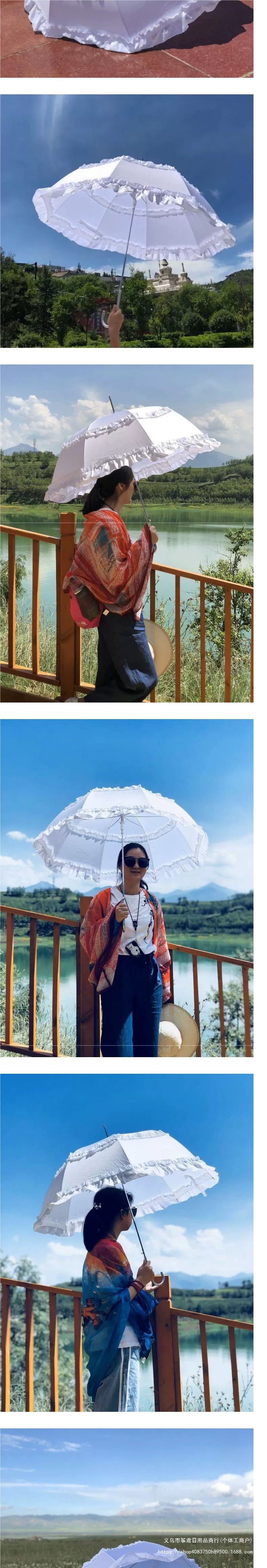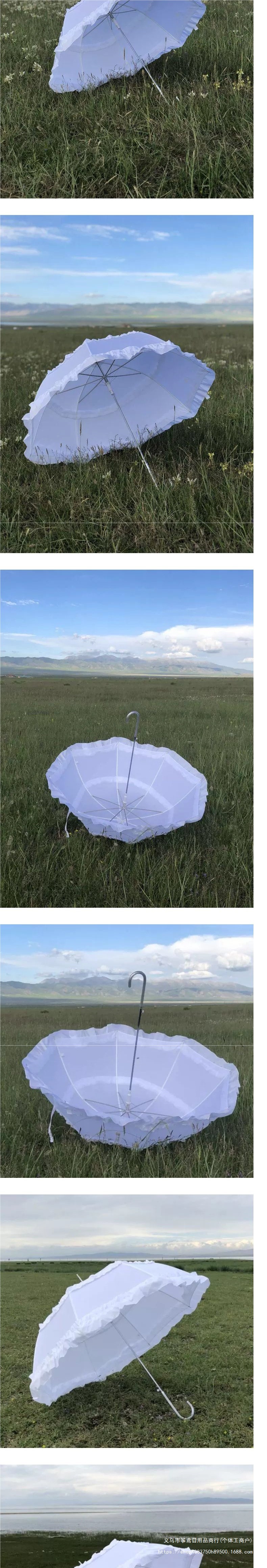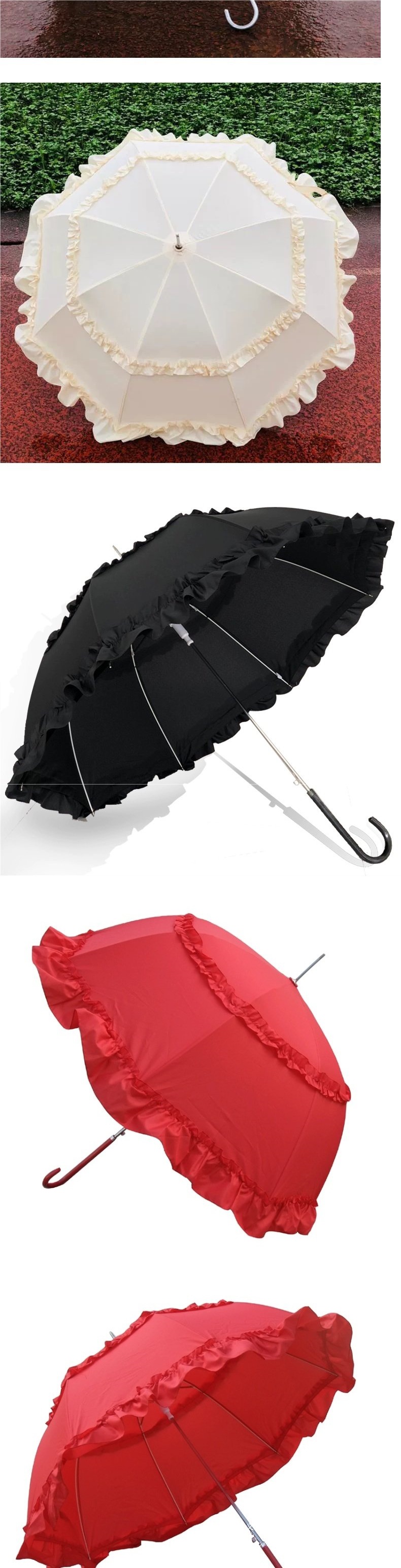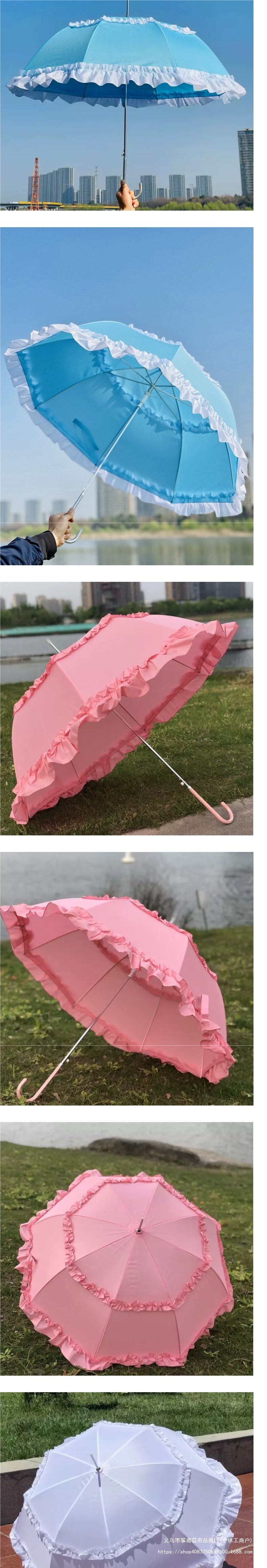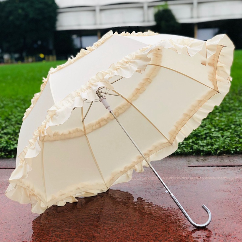 소녀의 작은 신선한 더블 레이스 크리 에이 티브 우산 비 또는 빛 긴 손잡이 태양 우산 로리타 결혼식 우산