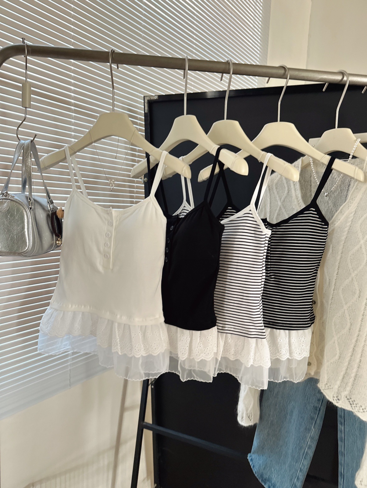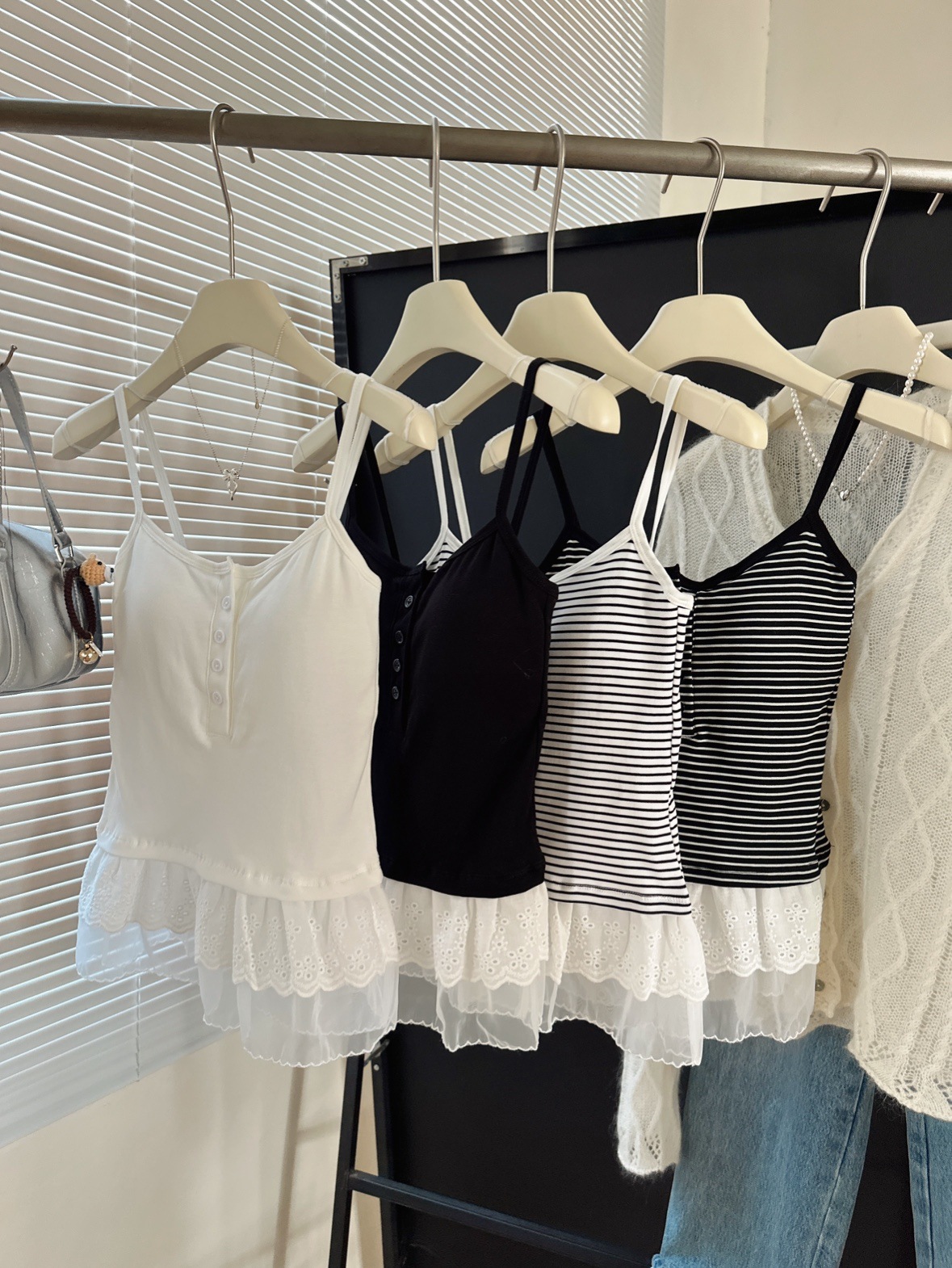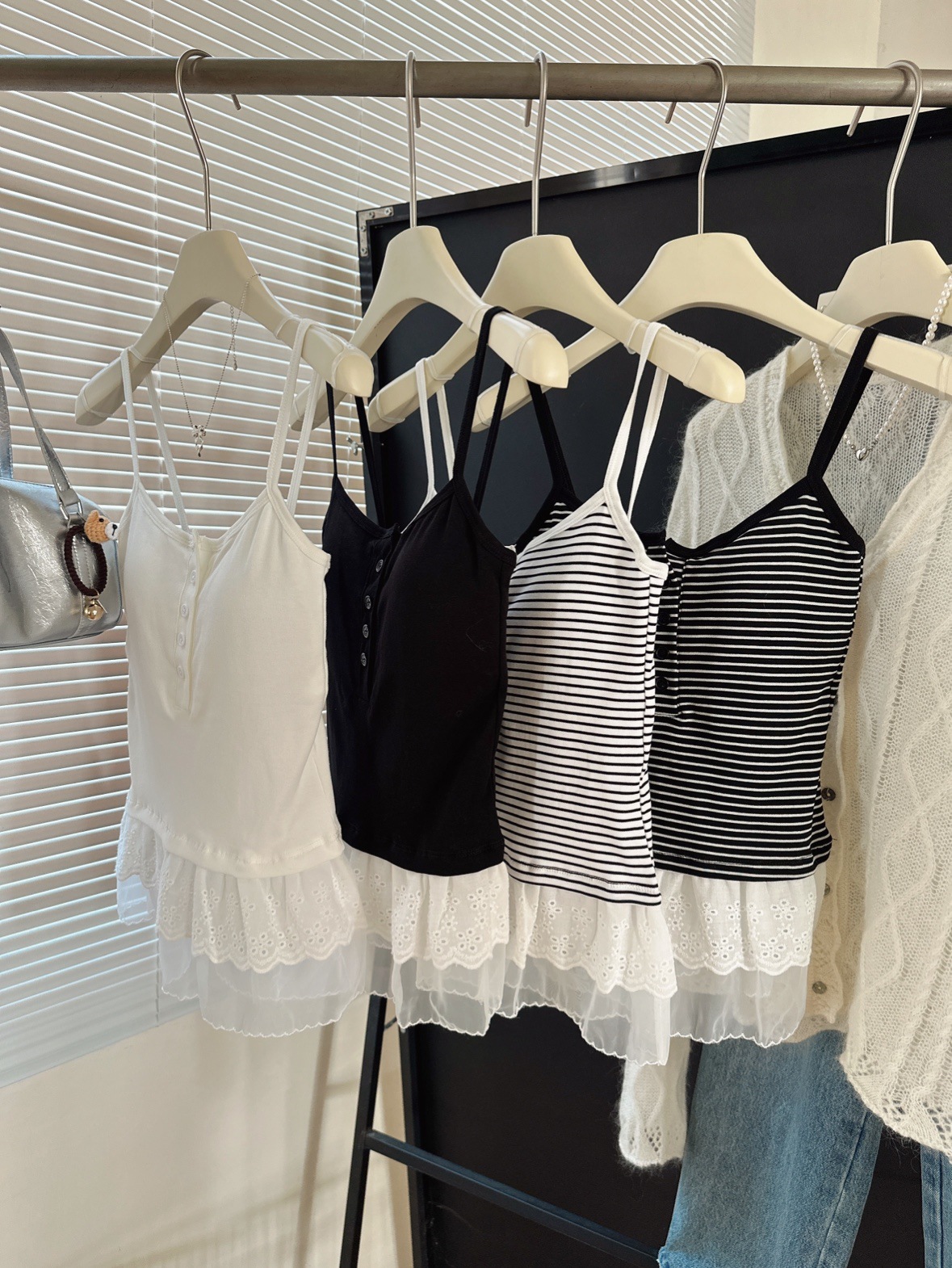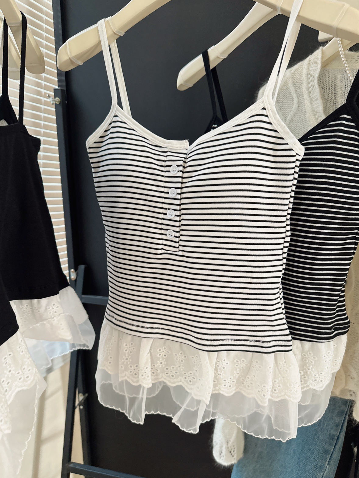여름 폭발성 스티칭 버튼 달콤한 올매치 컬러 스트라이프 슬링 헤드 레이스 디자인 센스 슬링 조끼스토어 가기