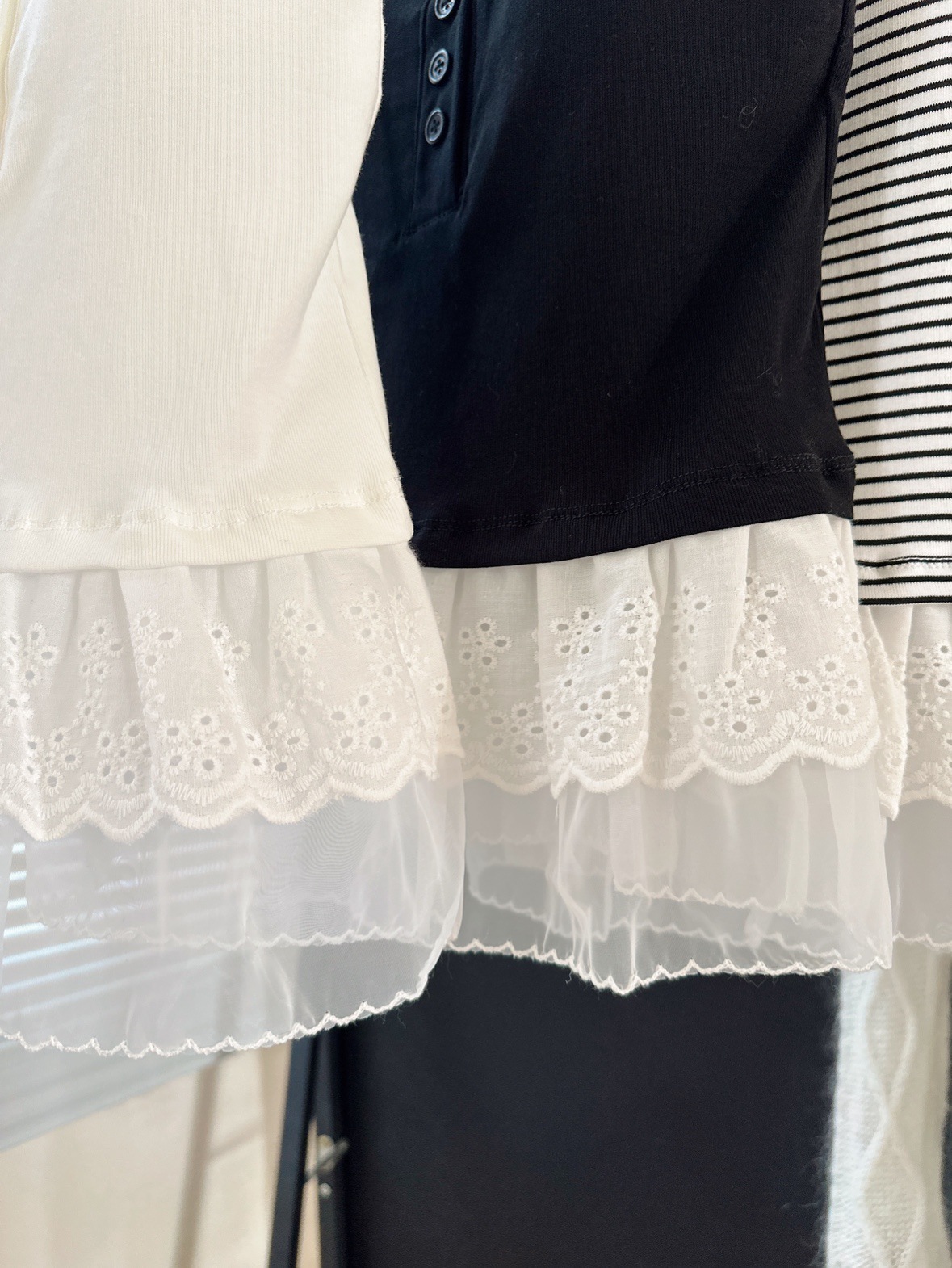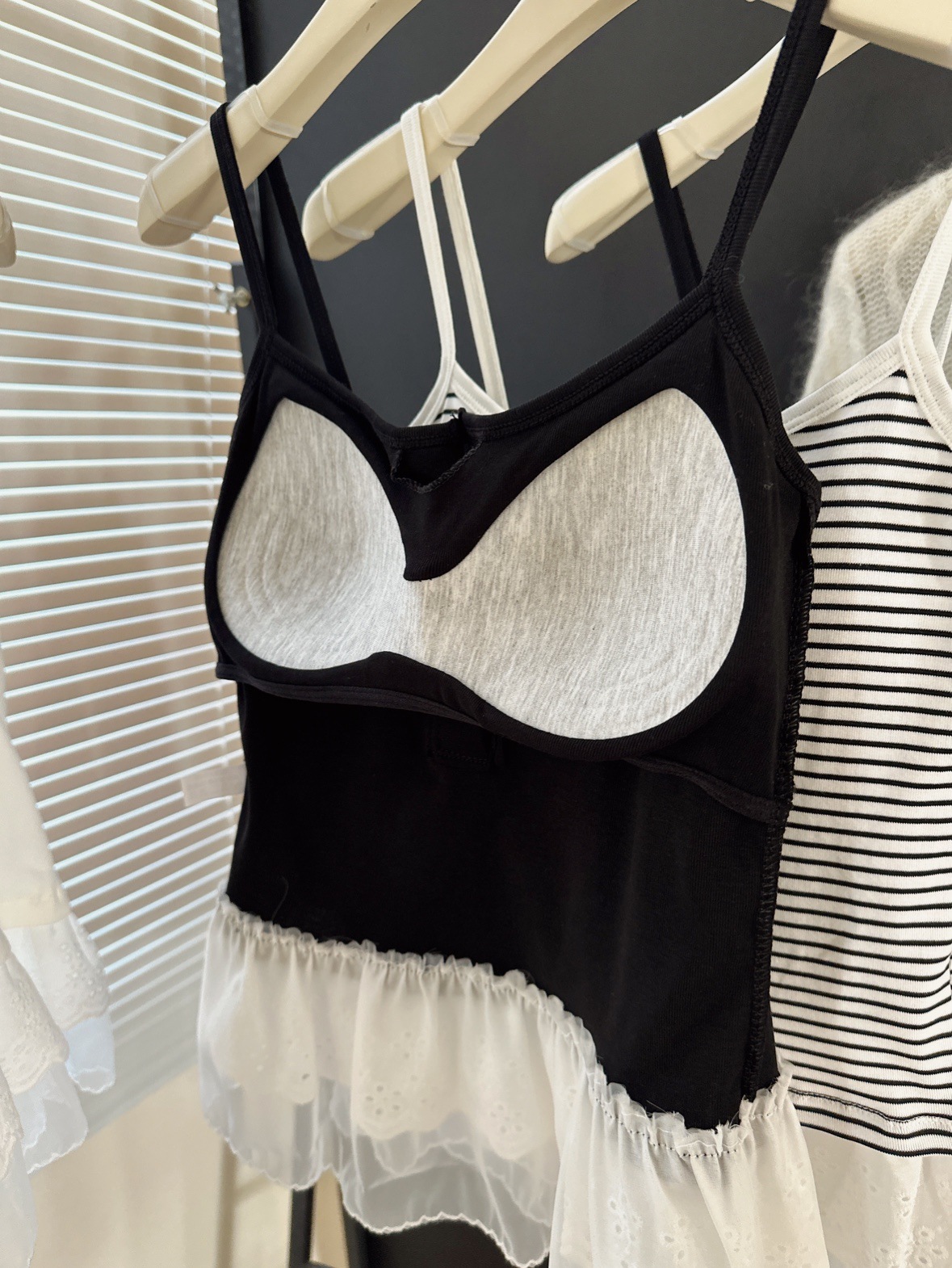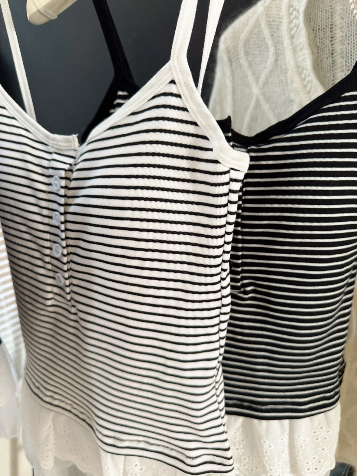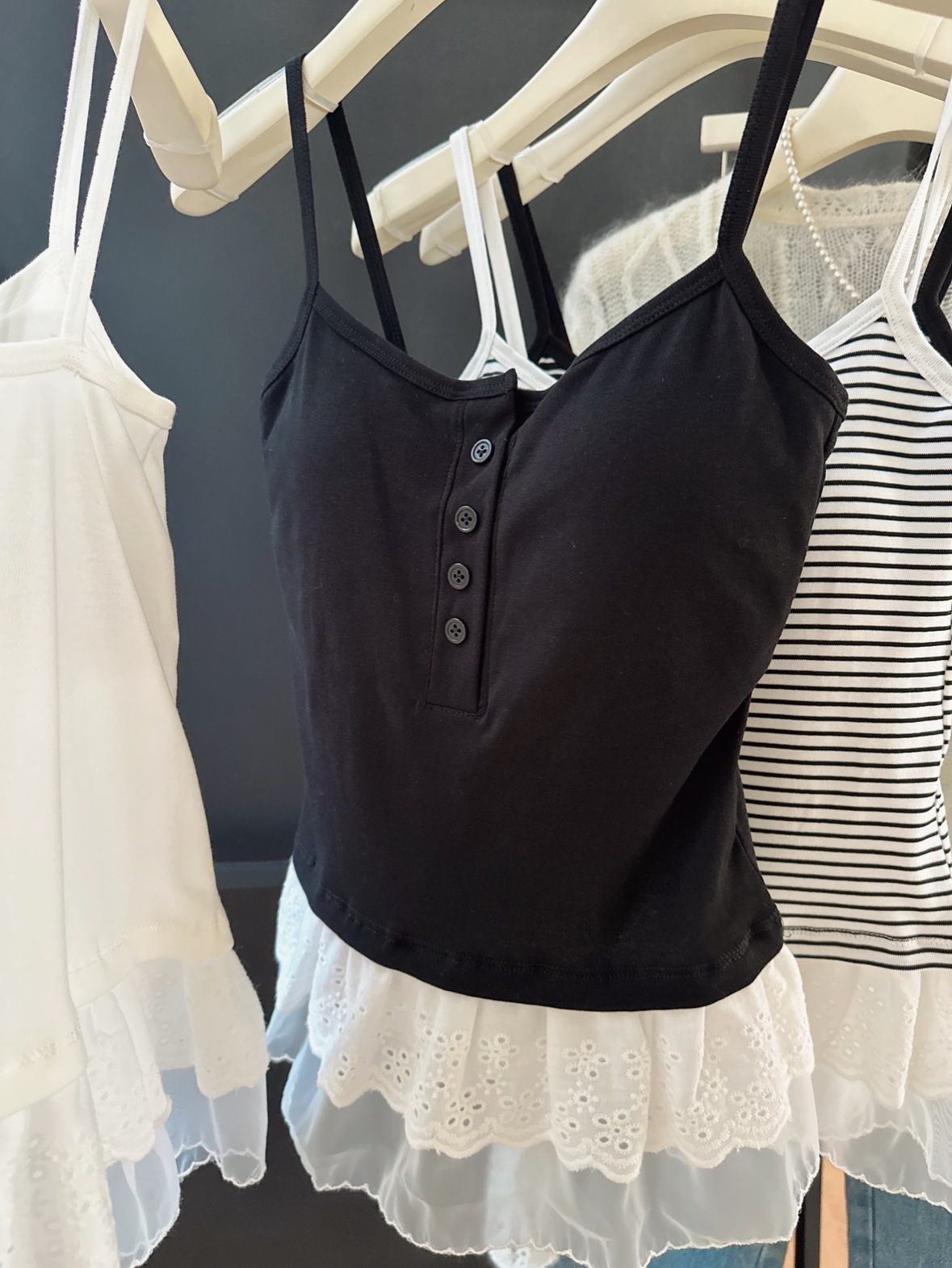 여름 폭발성 스티칭 버튼 달콤한 올매치 컬러 스트라이프 슬링 헤드 레이스 디자인 센스 슬링 조끼스토어 가기