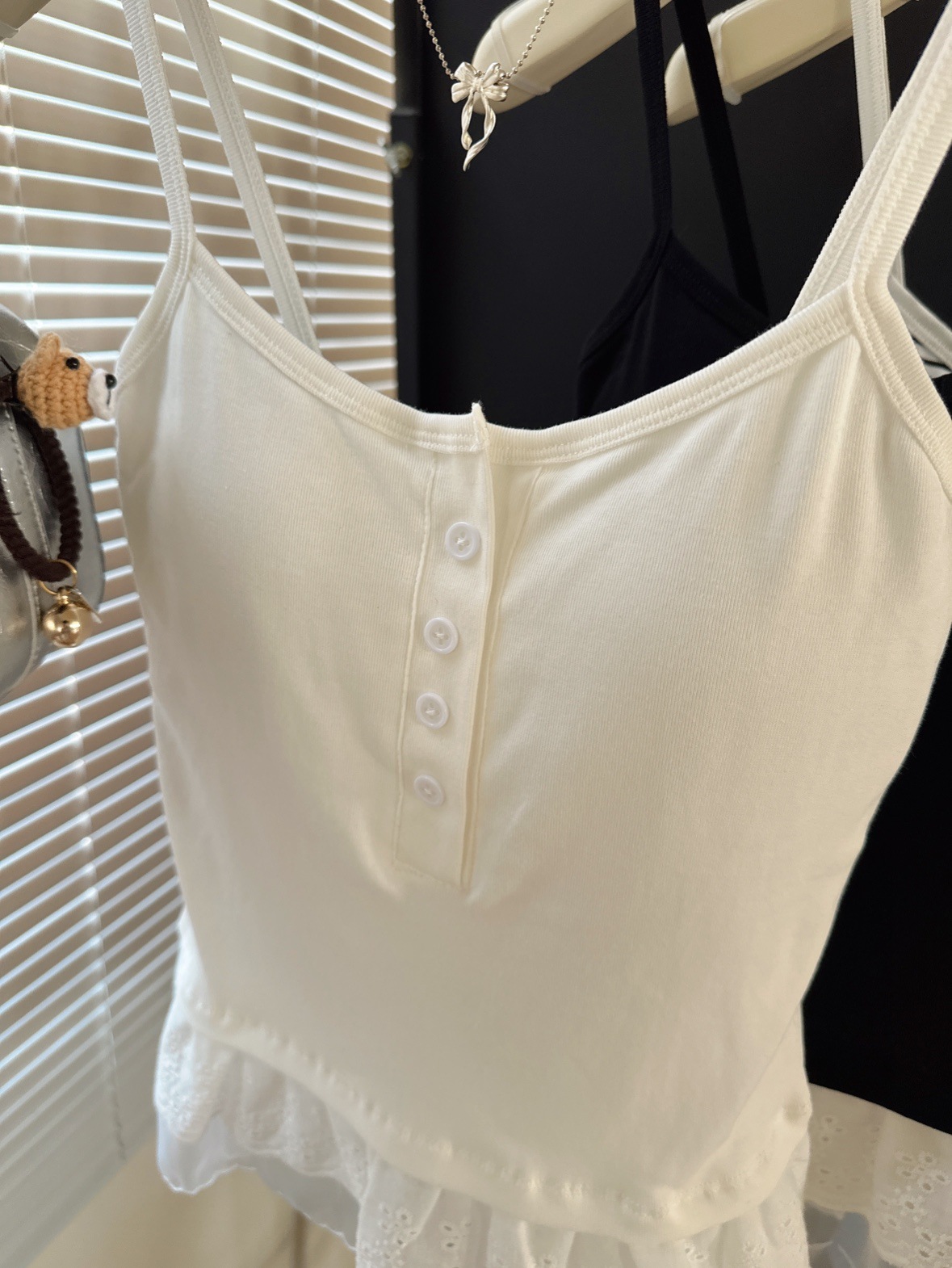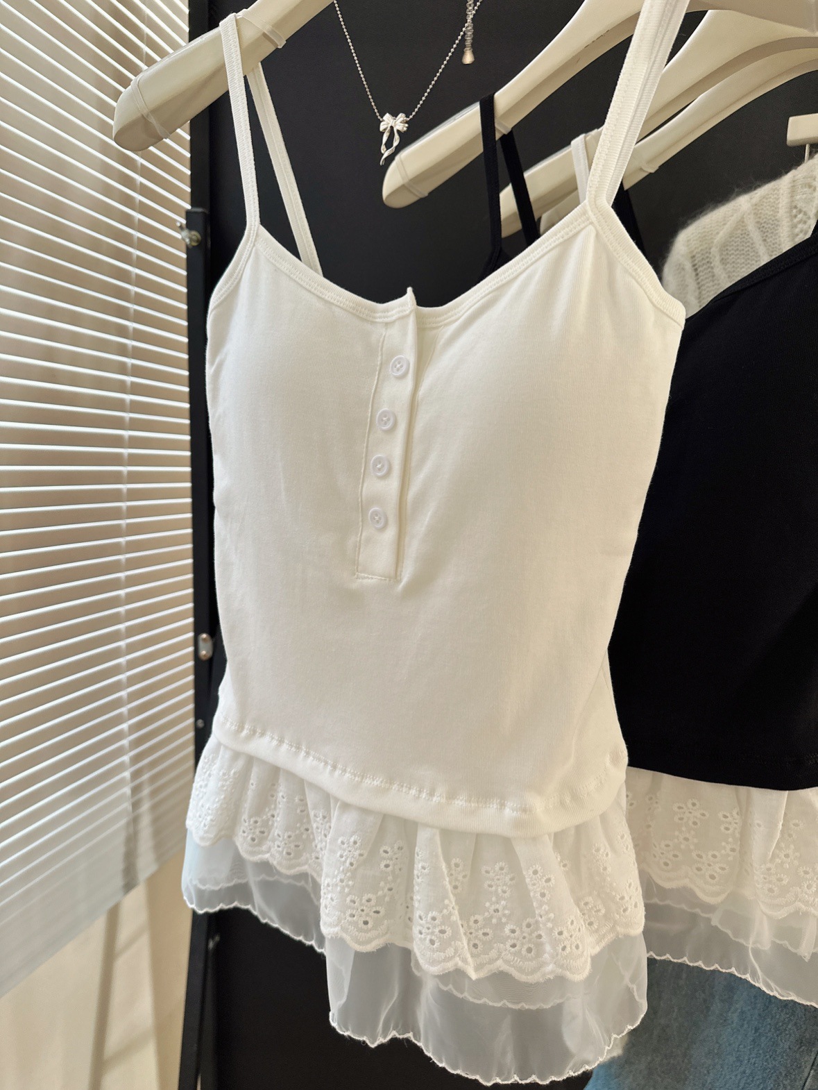 여름 폭발성 스티칭 버튼 달콤한 올매치 컬러 스트라이프 슬링 헤드 레이스 디자인 센스 슬링 조끼
