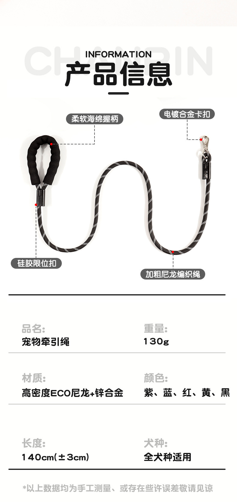 개 로프 도매 재고 국경 간 애완 동물 용품 개 체인 걷는 개 로프 반사 제조 업체 애완 동물 개 가죽 끈