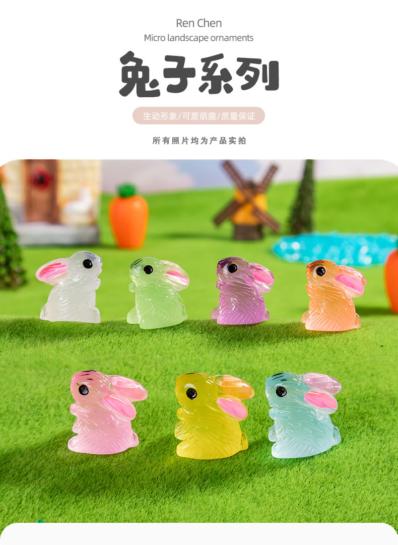 빛나는 미니 명상 토끼 동물 입체 마이크로 풍경 장식 공예 diy 수지 액세서리 작은 장식품스토어 가기