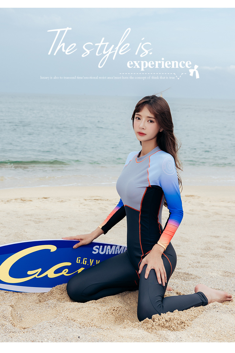 새로운 스타일 수영복 여성 긴 소매 바지 보수적 인 원피스 스노클링 해파리 슈트 잠수복 뒤 지퍼 서핑 슈트