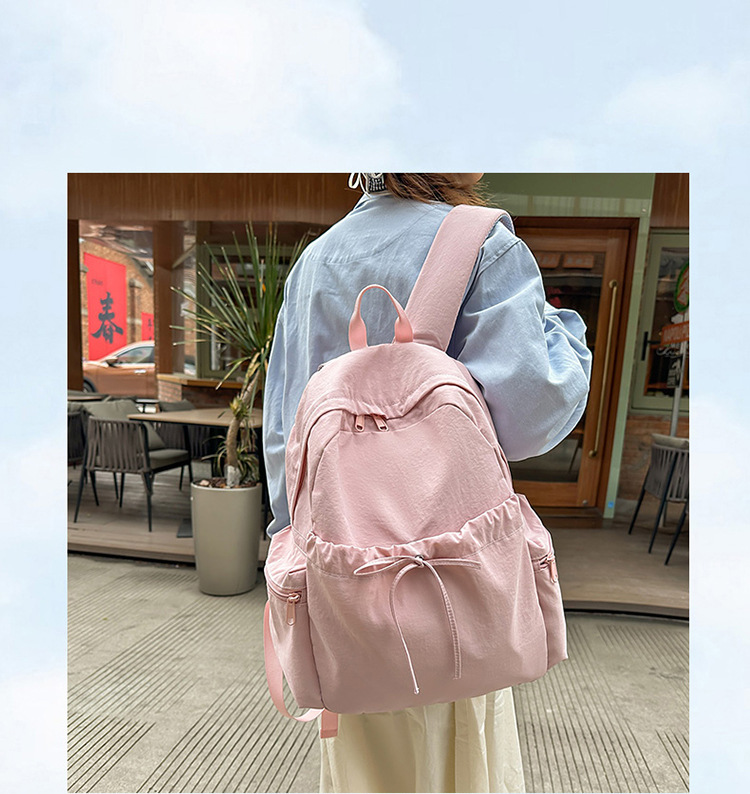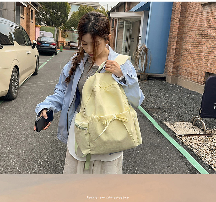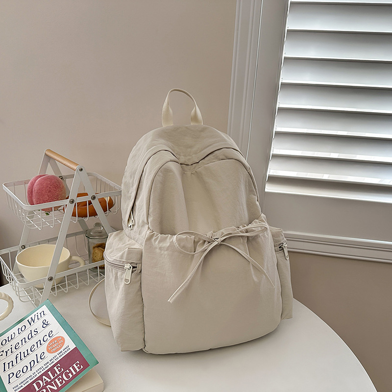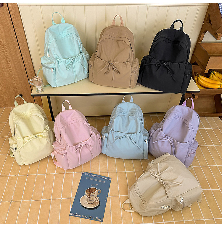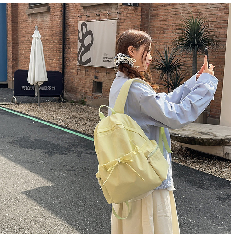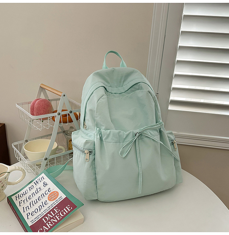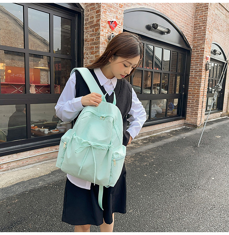 한국식 솔리드 컬러 학생 스쿨백 여성 나일론 경량 올 매치 여행 가방 서양식 캠퍼스 통근 대용량 배낭
