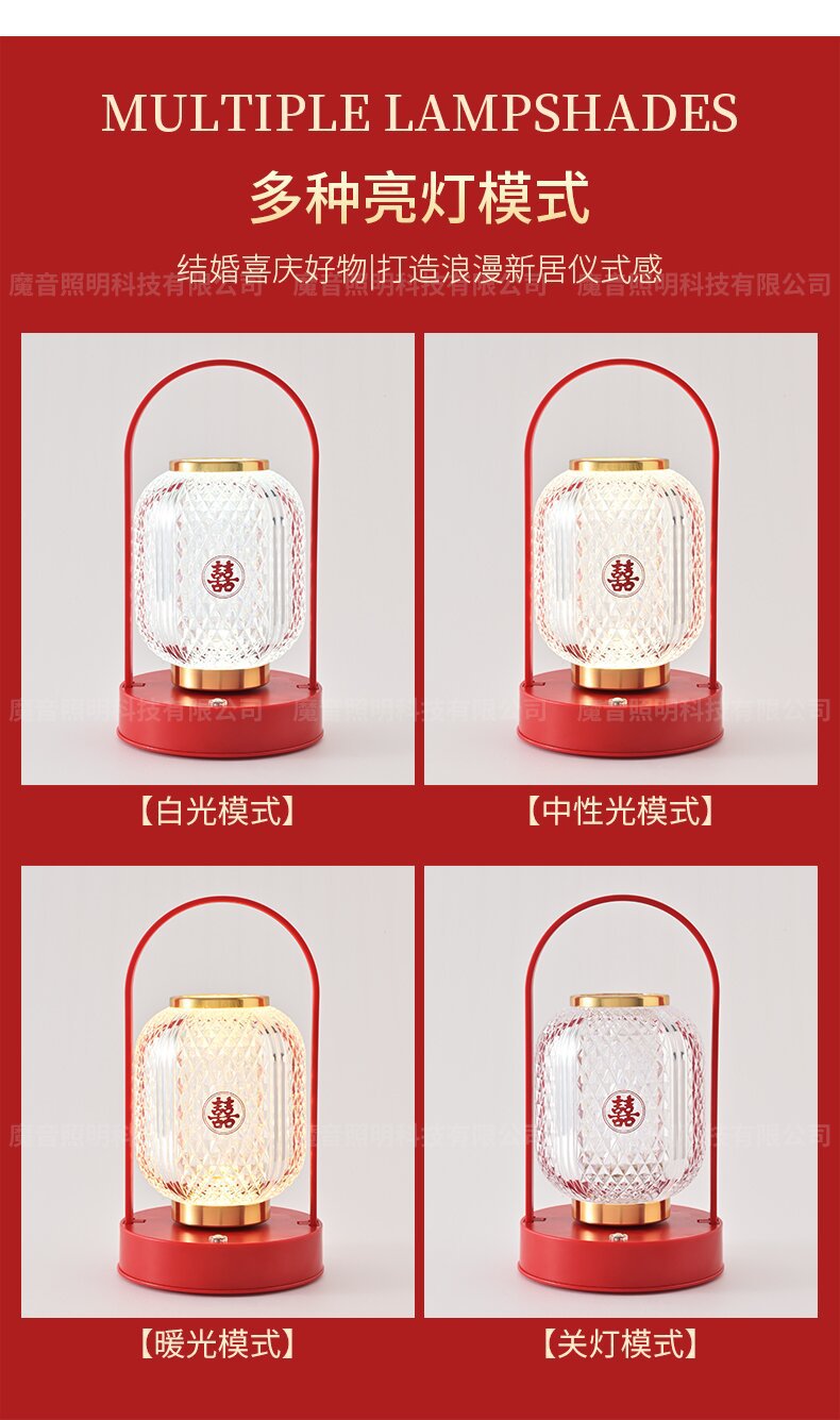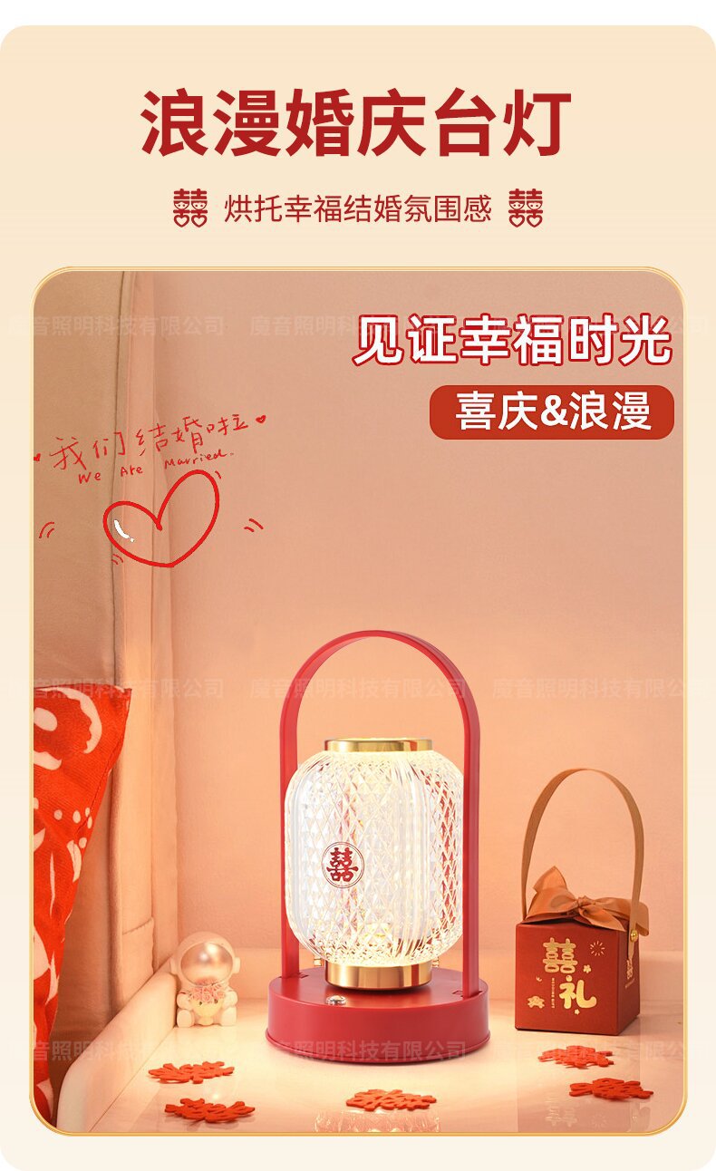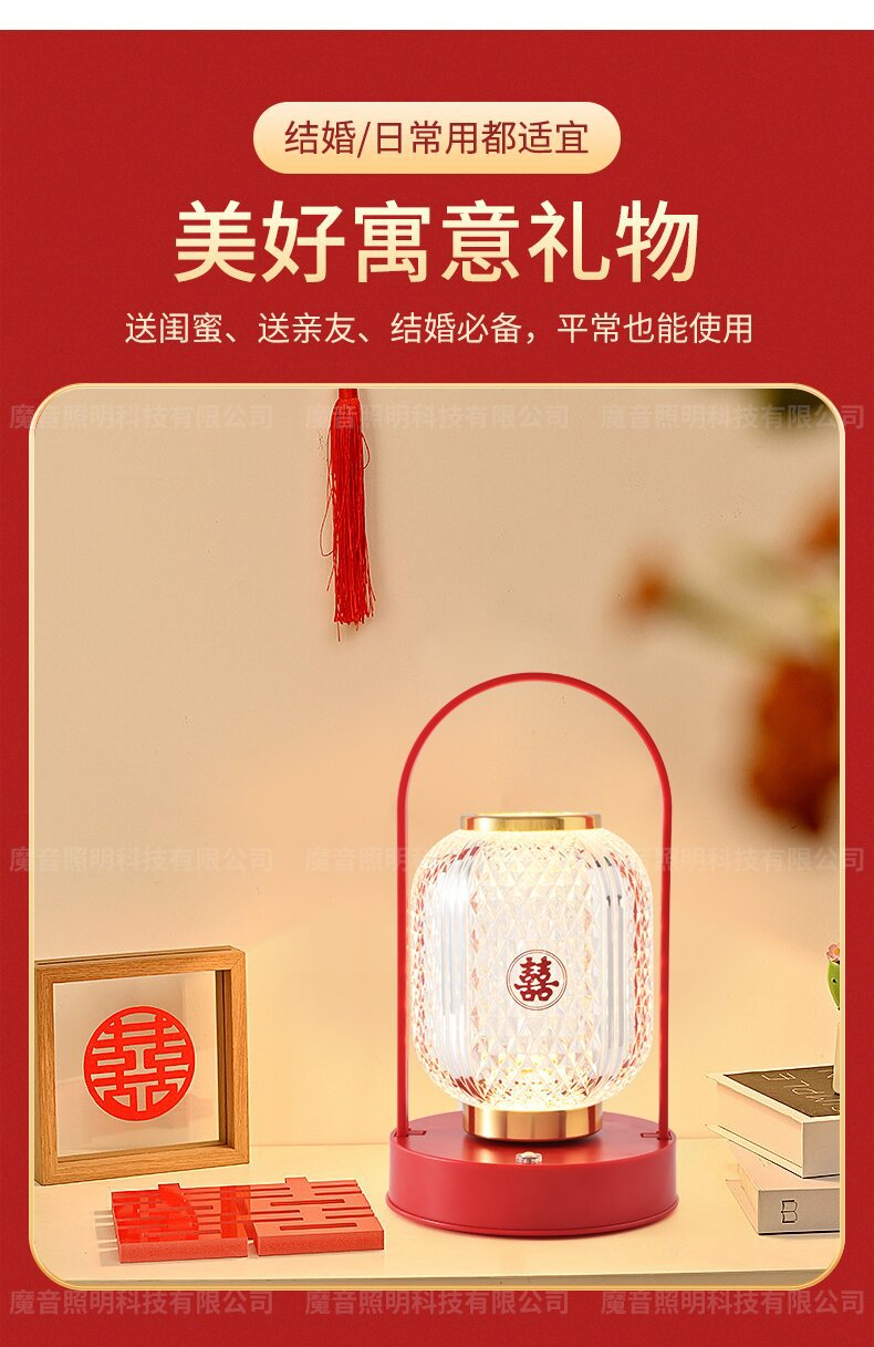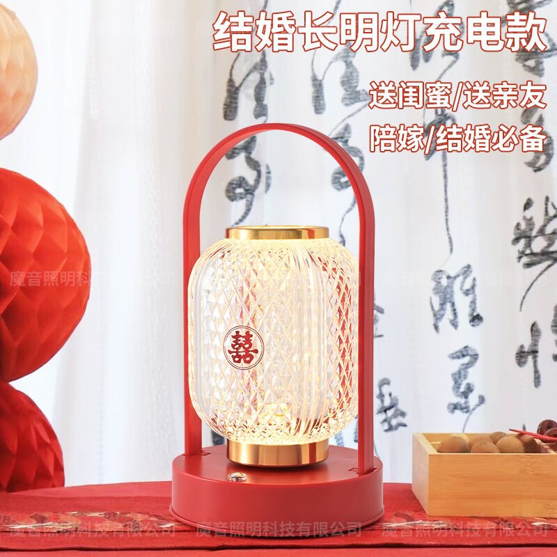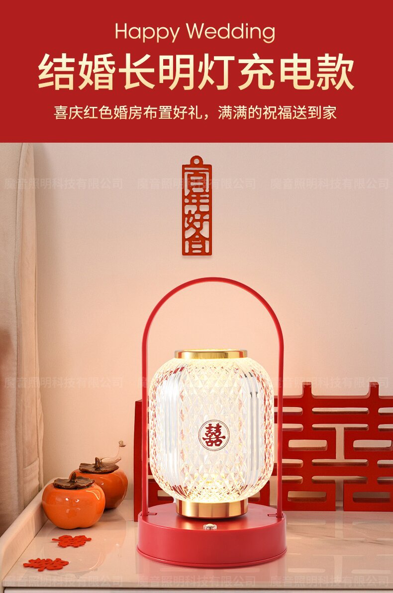 신혼부부를 위한 긴불, 결혼식 한 쌍의 고급 웨딩룸 장식, 빨간색 탁상스탠드, 침대 옆 램프, 신혼부부를 위한 결혼 선물스토어 가기