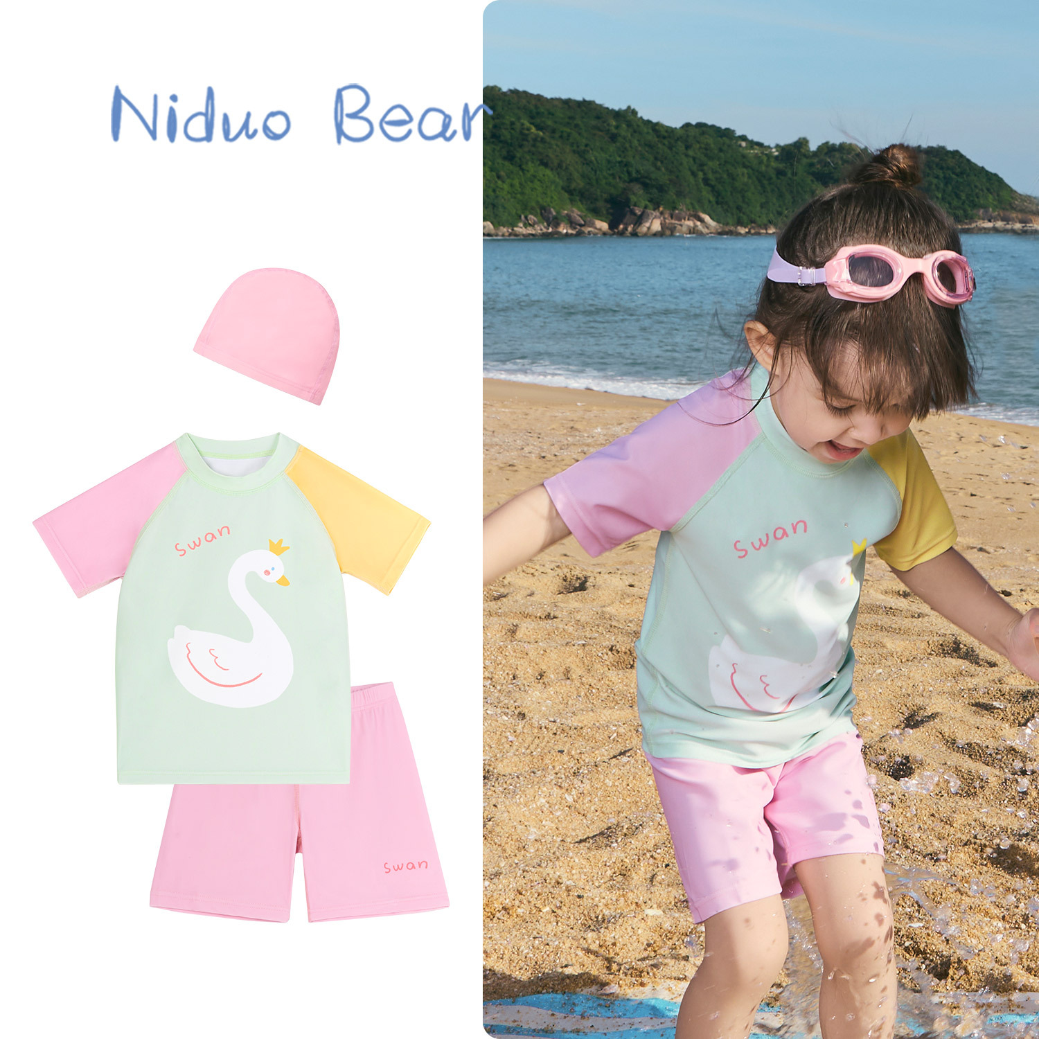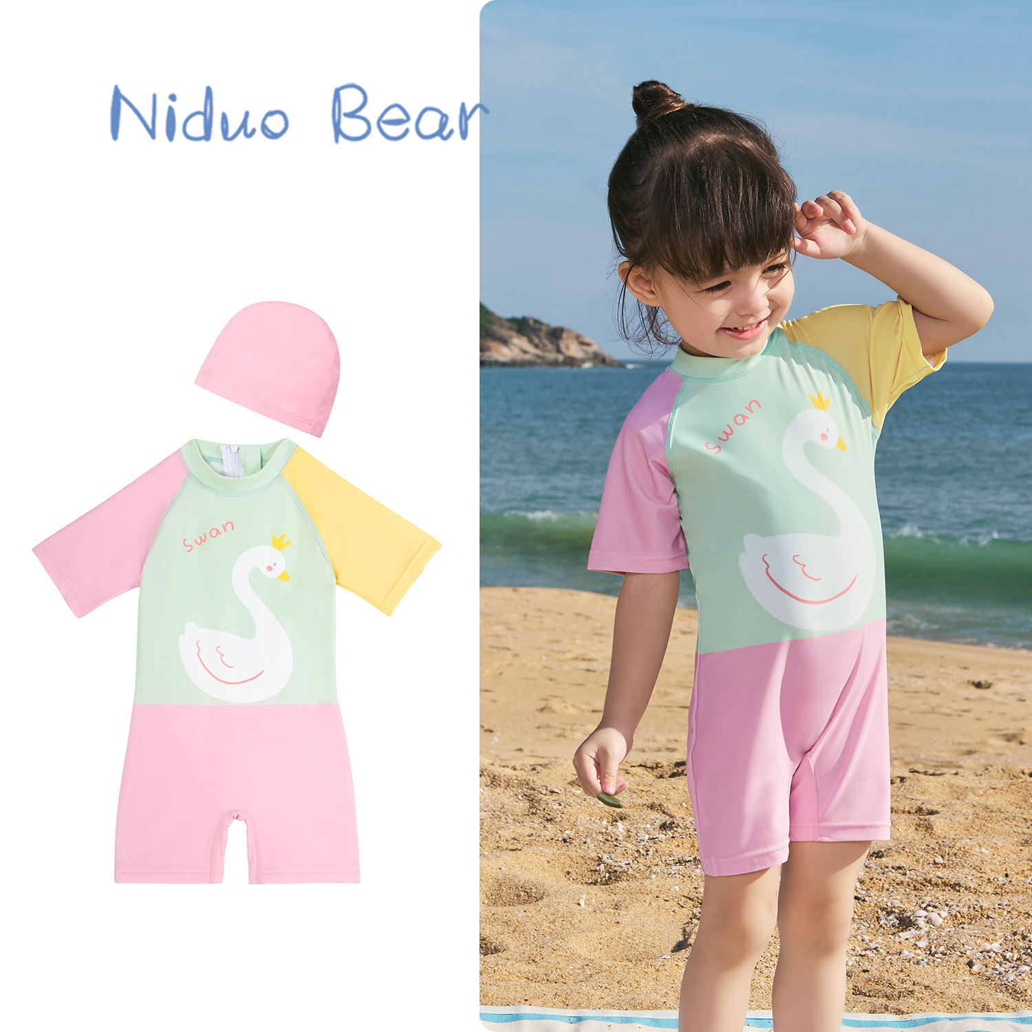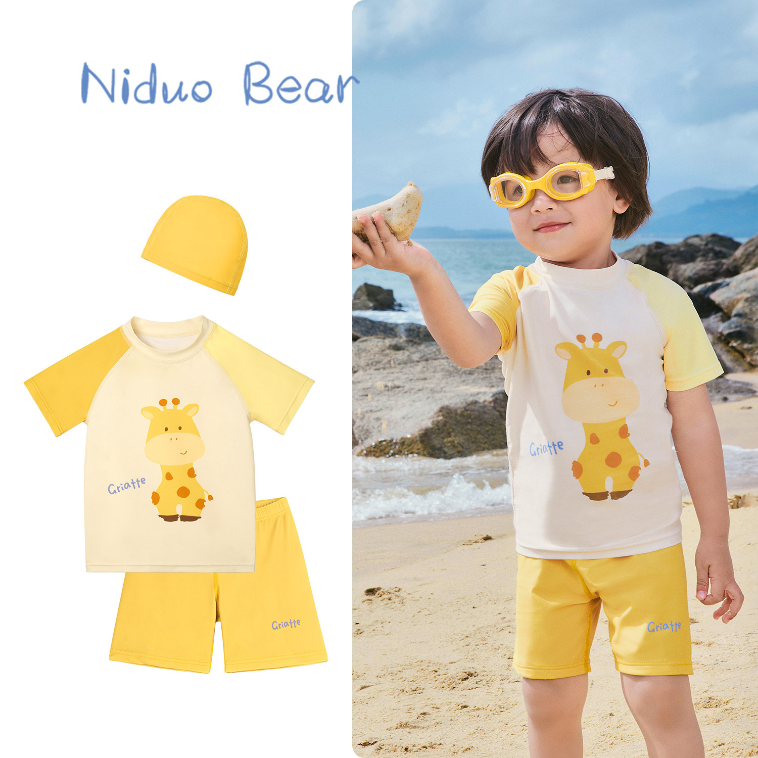 • YS2406 노란색 기린 스플릿(동일한 스타일의 수영모 포함)
