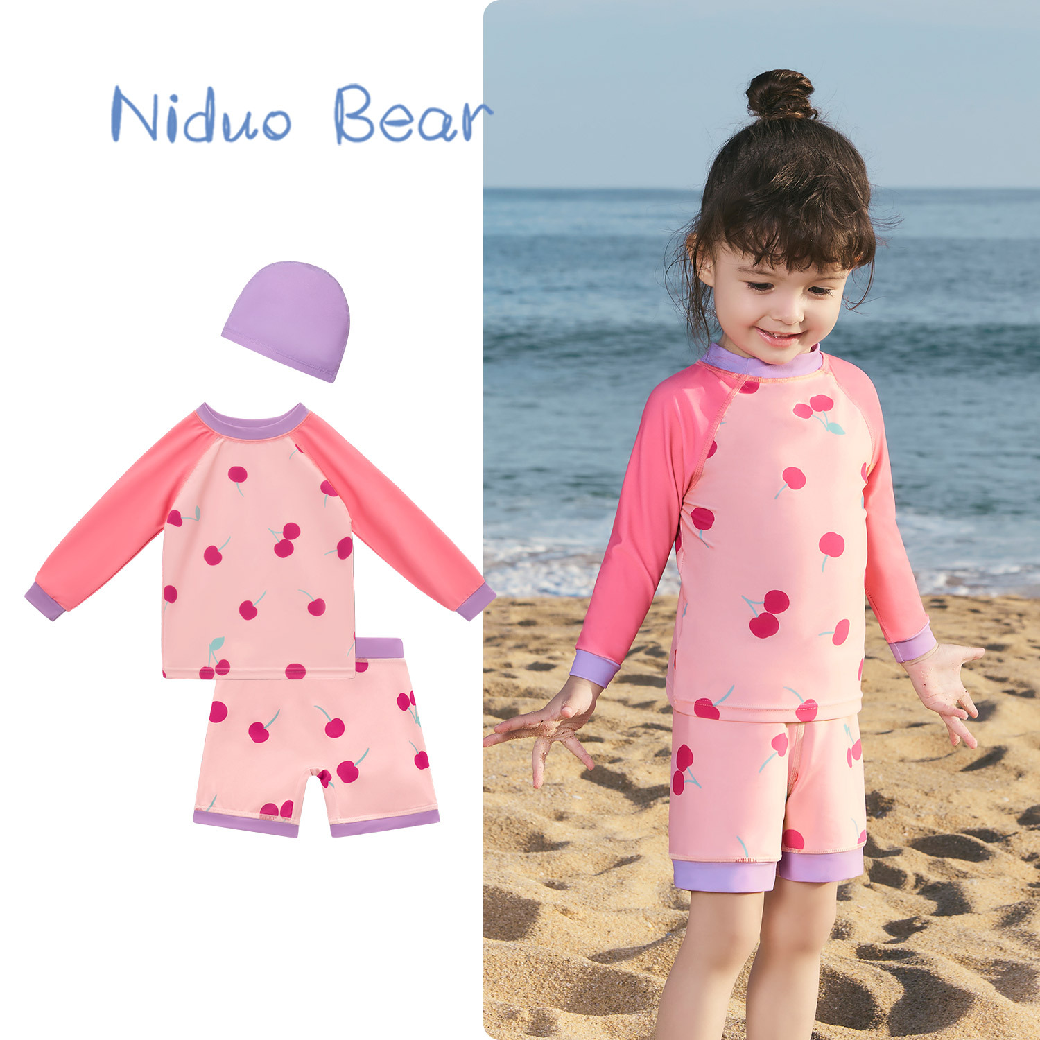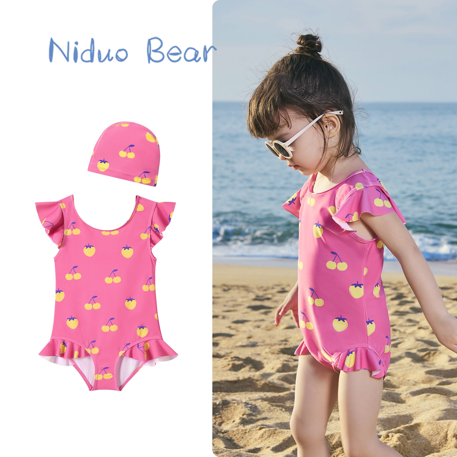 • YS2406 핑크캣 원피스(동일한 스타일의 수영모 포함)