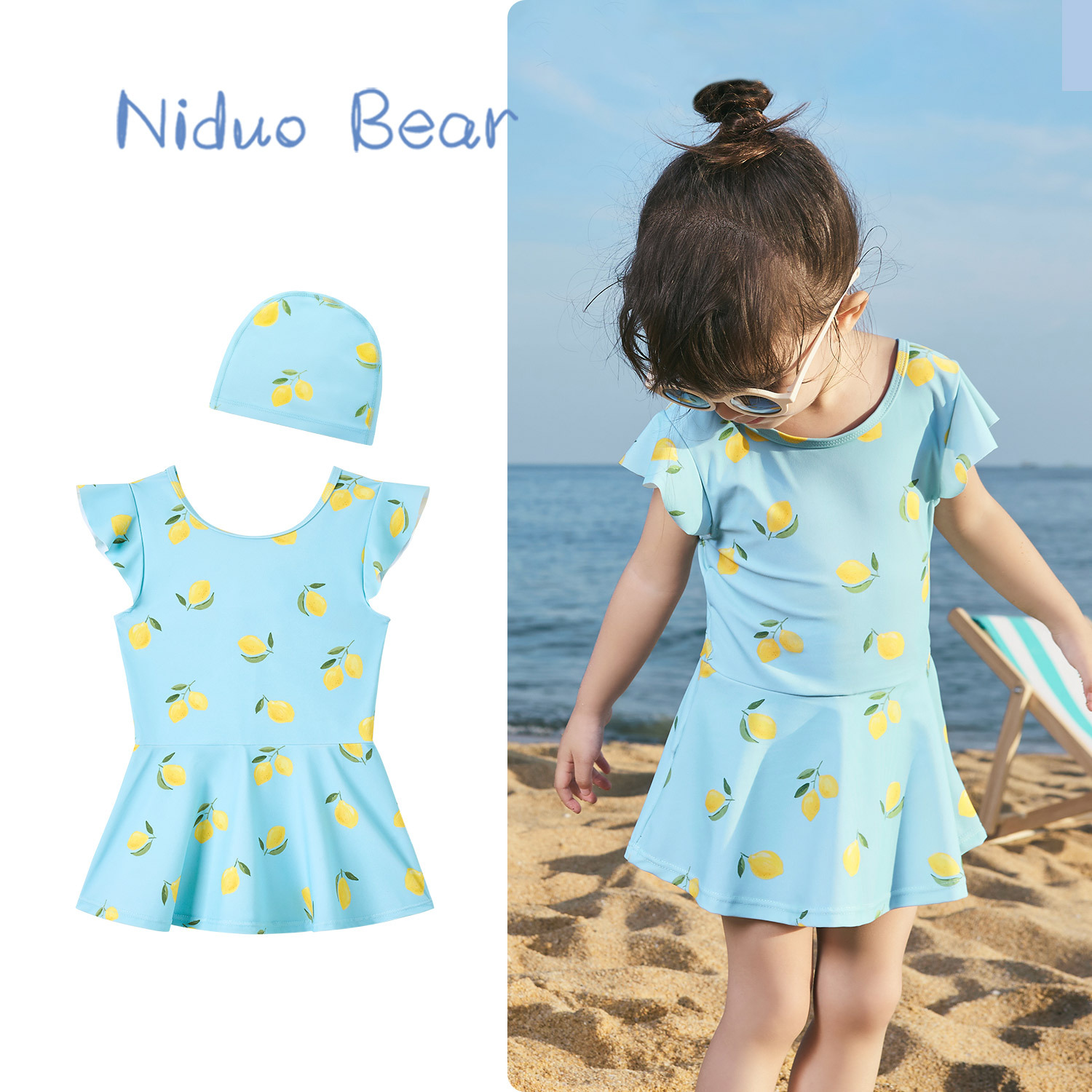 • YS2406 노란색 기린 원피스(동일한 스타일의 수영모 포함)