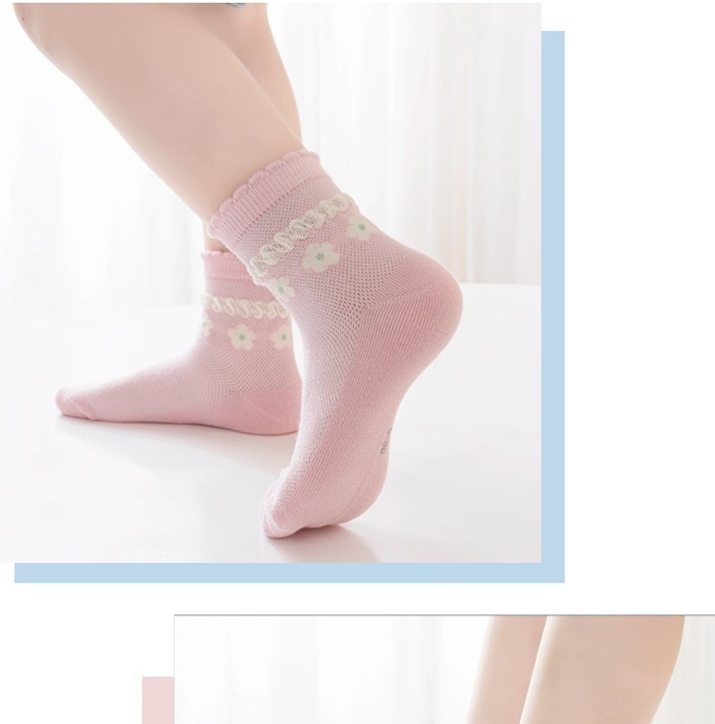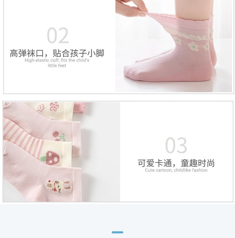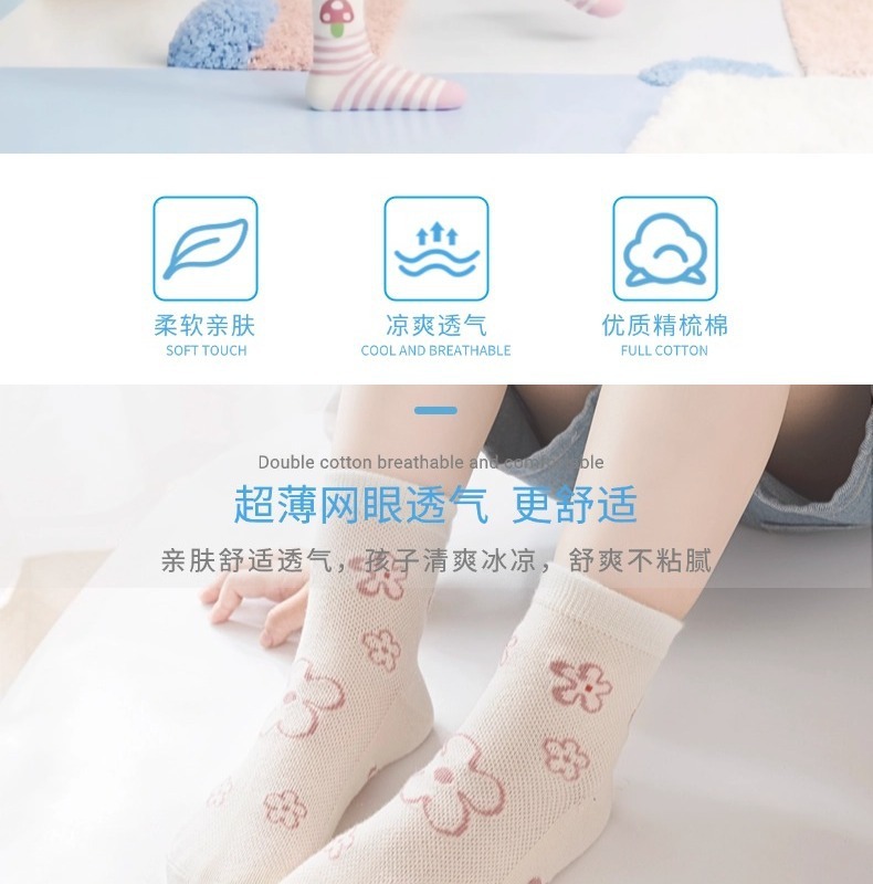 Six Finger Mouse 도매 2025 봄과 여름 새로운 Six Finger Mouse 어린이 양말 빗질면 소녀 클래스 A 메쉬 코튼 미드 튜브 양말