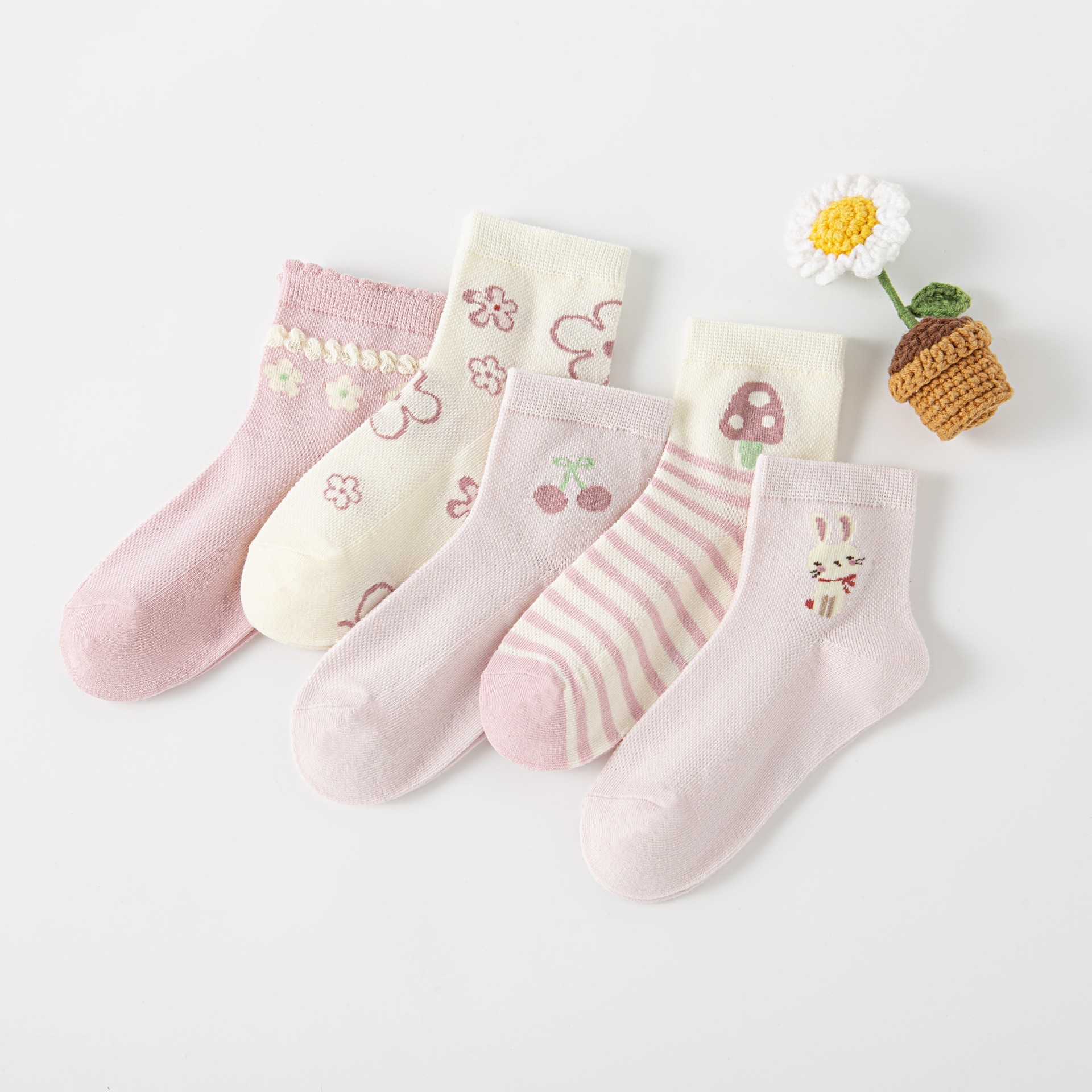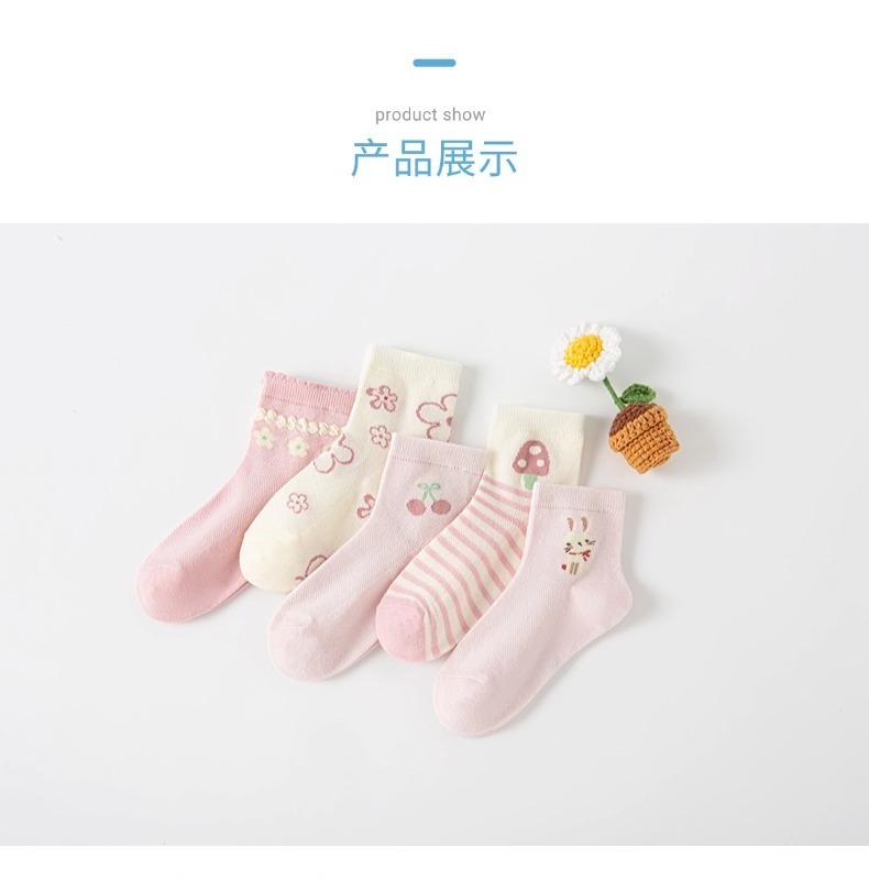 Six Finger Mouse 도매 2025 봄과 여름 새로운 Six Finger Mouse 어린이 양말 빗질면 소녀 클래스 A 메쉬 코튼 미드 튜브 양말스토어 가기