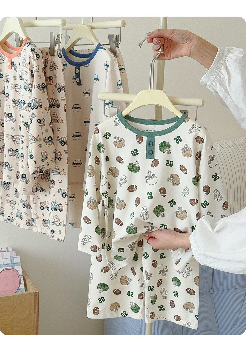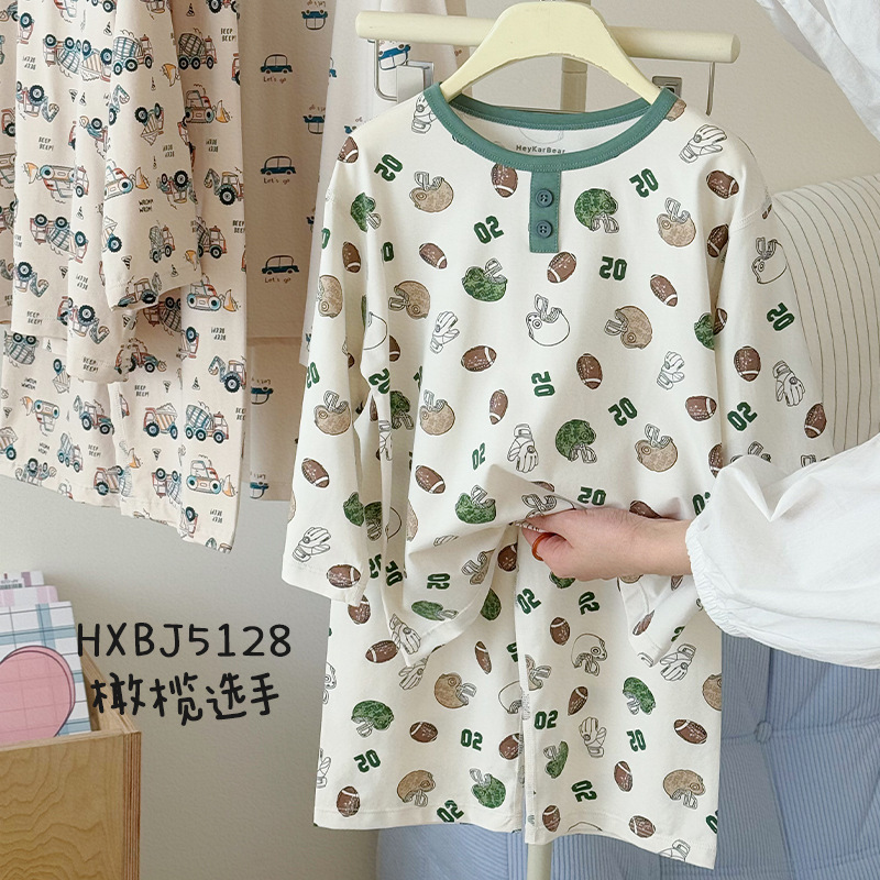 블랙 커피 베어 만화 모달 코튼 클래스 남학생 홈 옷 봄과 여름 긴 소매 바지 파자마 세트 착용 가능스토어 가기