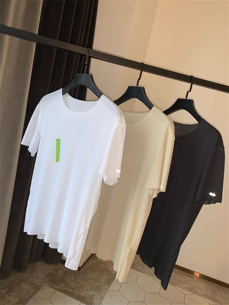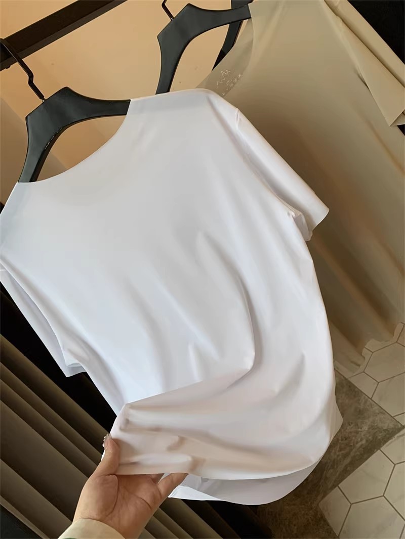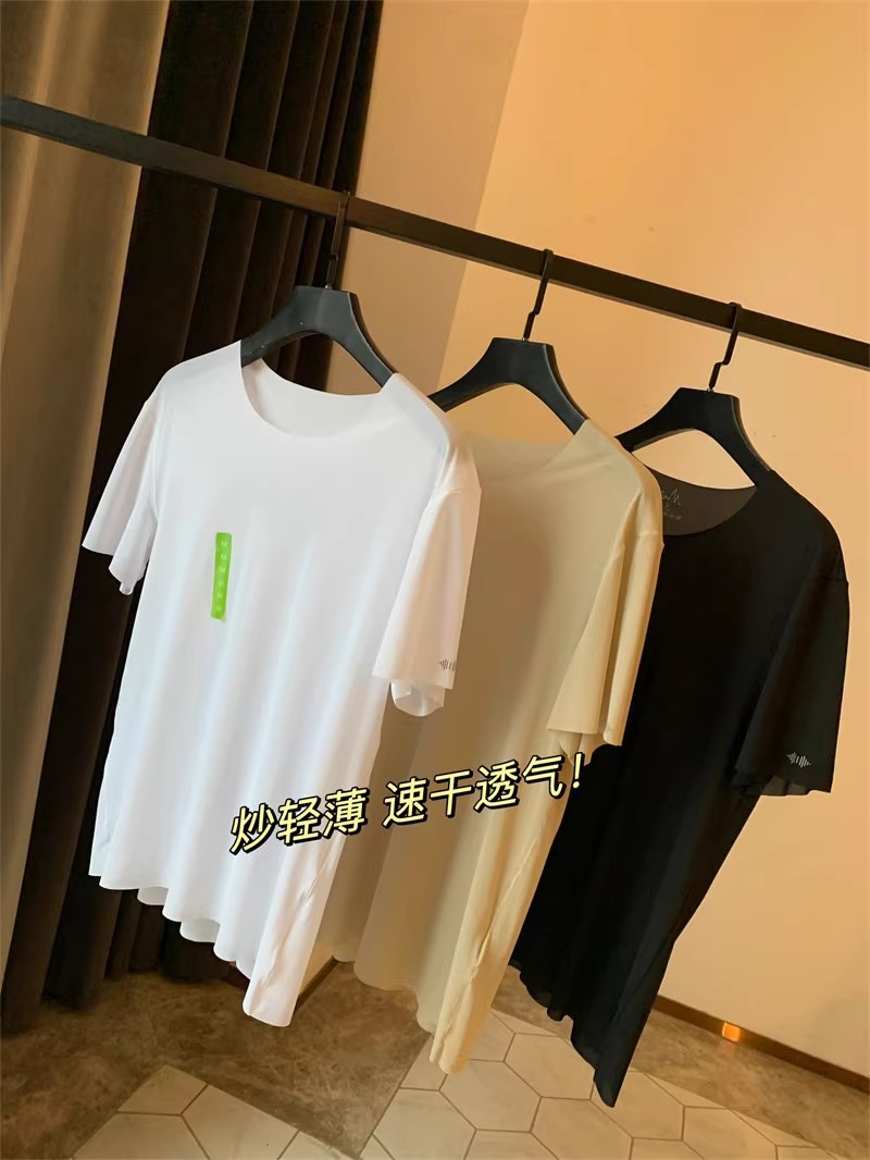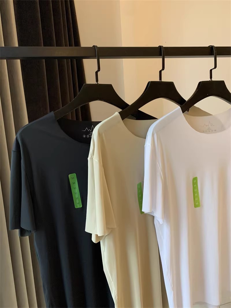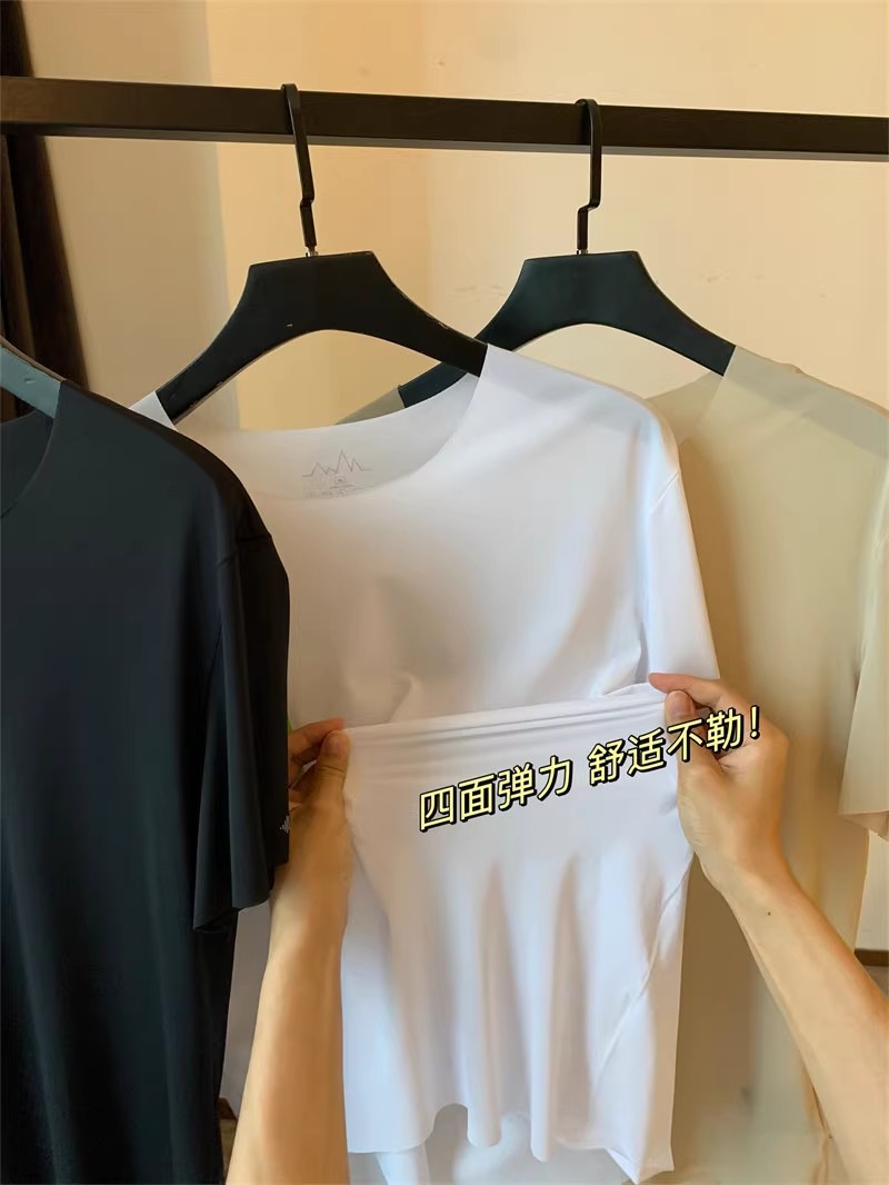 통조림 선물! 매미의 날개처럼 얇습니다! 비밀 복사 과정! 튀긴 얇은 시원한 여름 남자 둥근 목 스트레치 반소매 티셔츠 트렌디스토어 가기