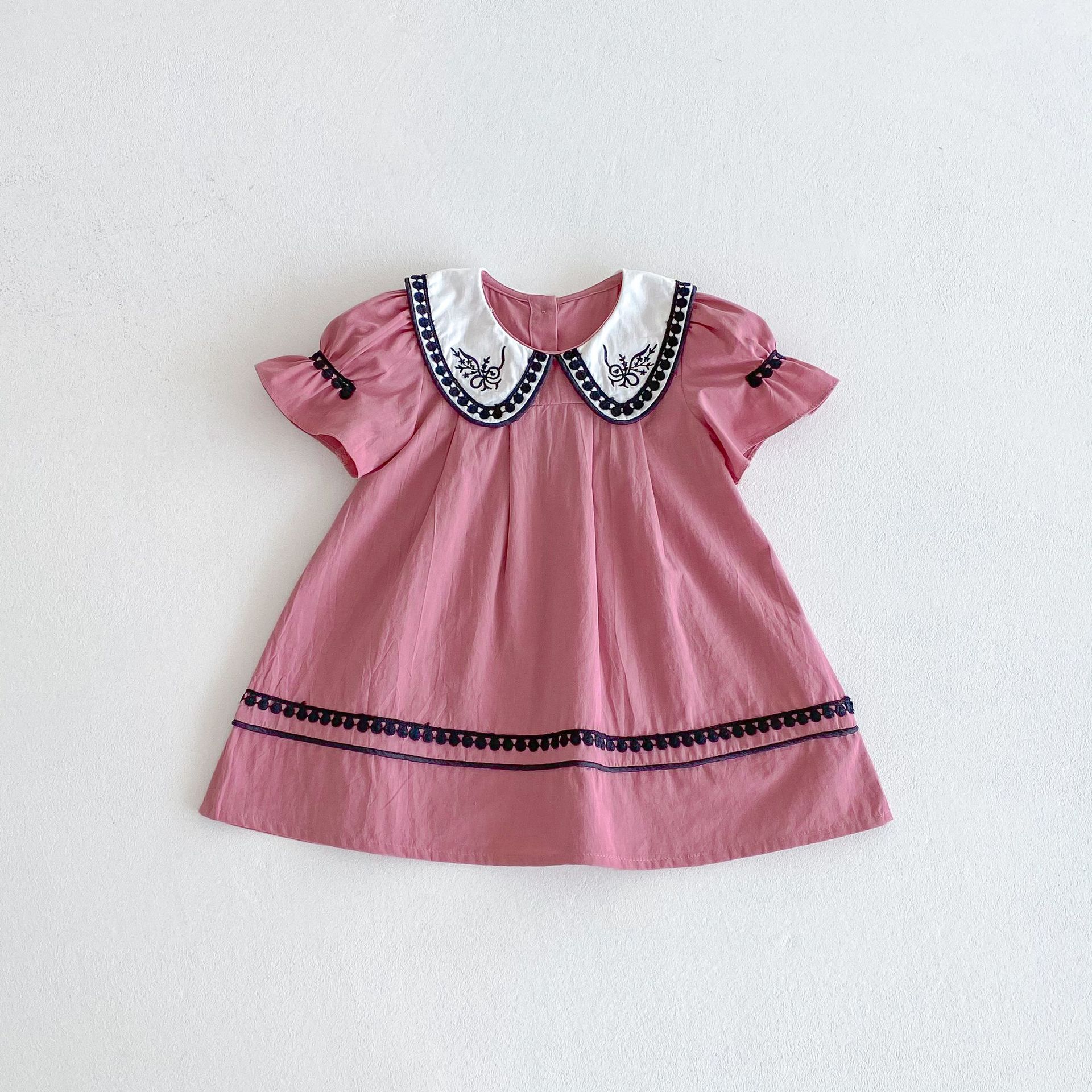 소녀 원피스 2025 여름 새 인형 목걸이 프랑스 자수 중소 소녀 아기 공주 원피스