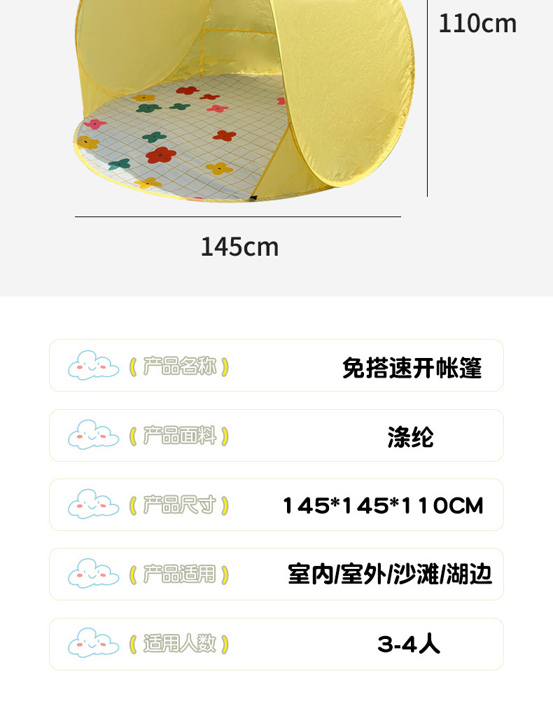 국경 간 새로운 야외 캠핑 피크닉 빠른 오픈 텐트 여름 휴대용 Ins 윈드 비치 무료 빌드 빠른 던지기 텐트스토어 가기