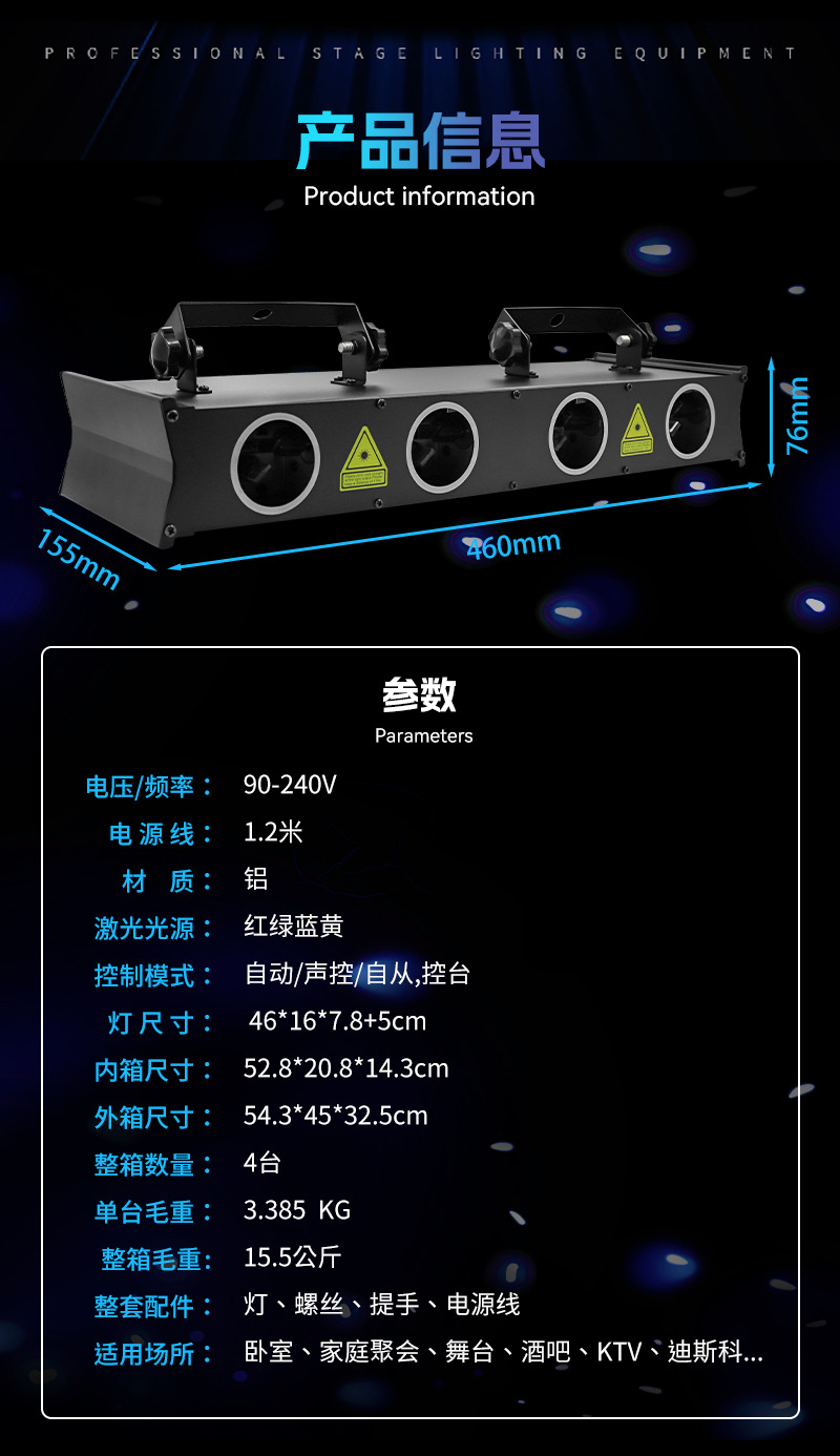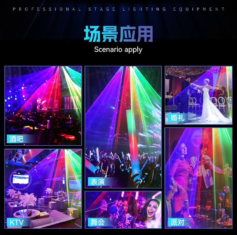 개인 모델 4 프레임 애니메이션 빔 레이저 빛 음성 제어 KTV 바 분위기 빛 회전 레이저 스캐닝 라인 무대 조명