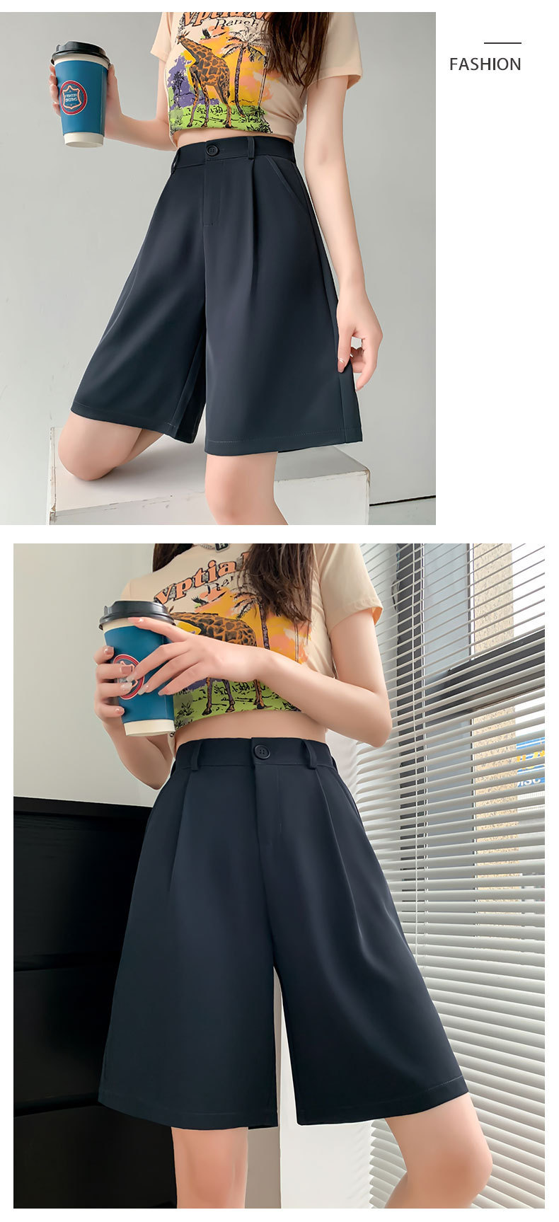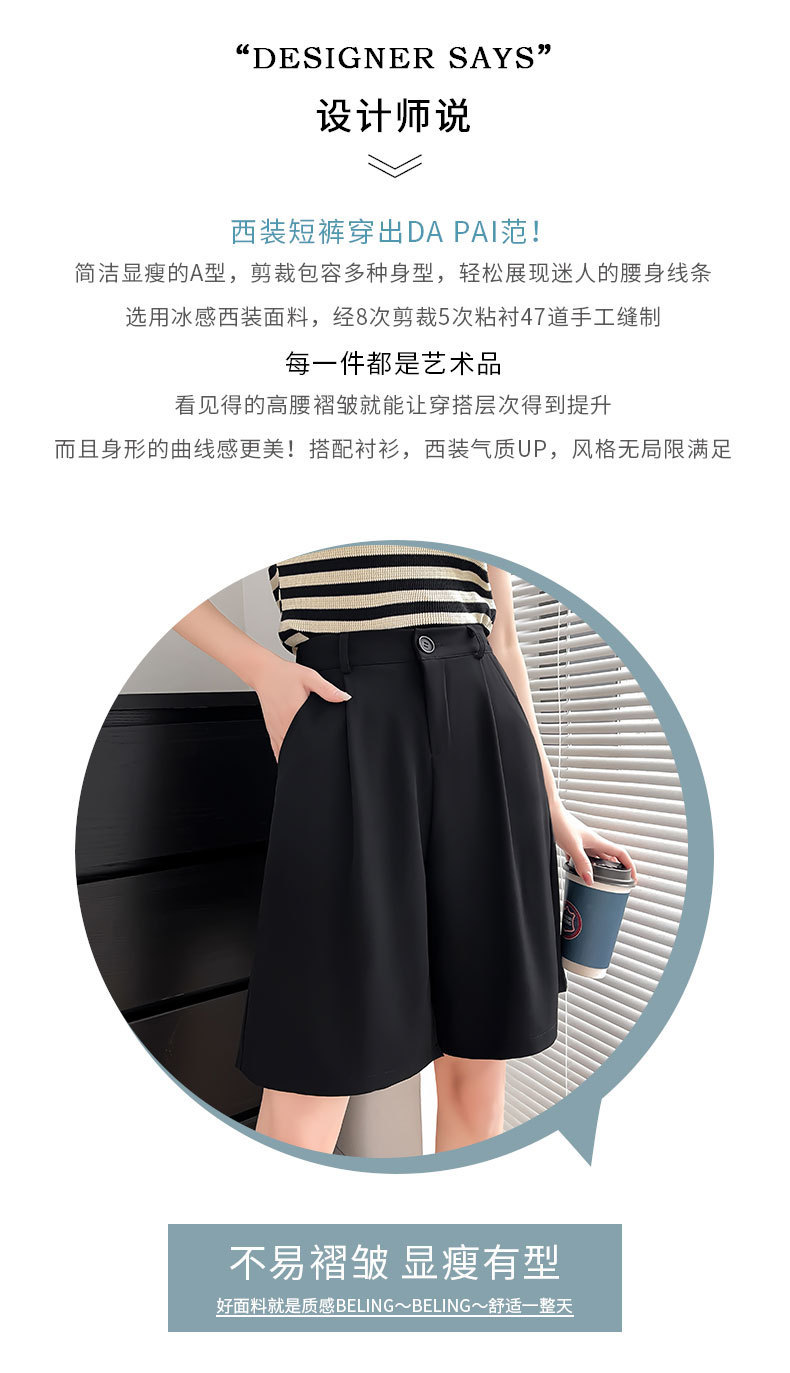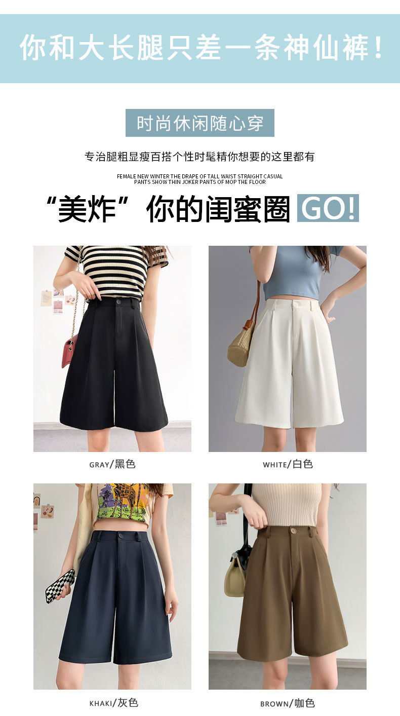 미국식 레트로 세트 반바지 여성 봄과 여름 새로운 하이 웨이스트 슬리밍 A 캐릭터 하이 엔드 센스 캐주얼 5 점 와이드 레그 반바지