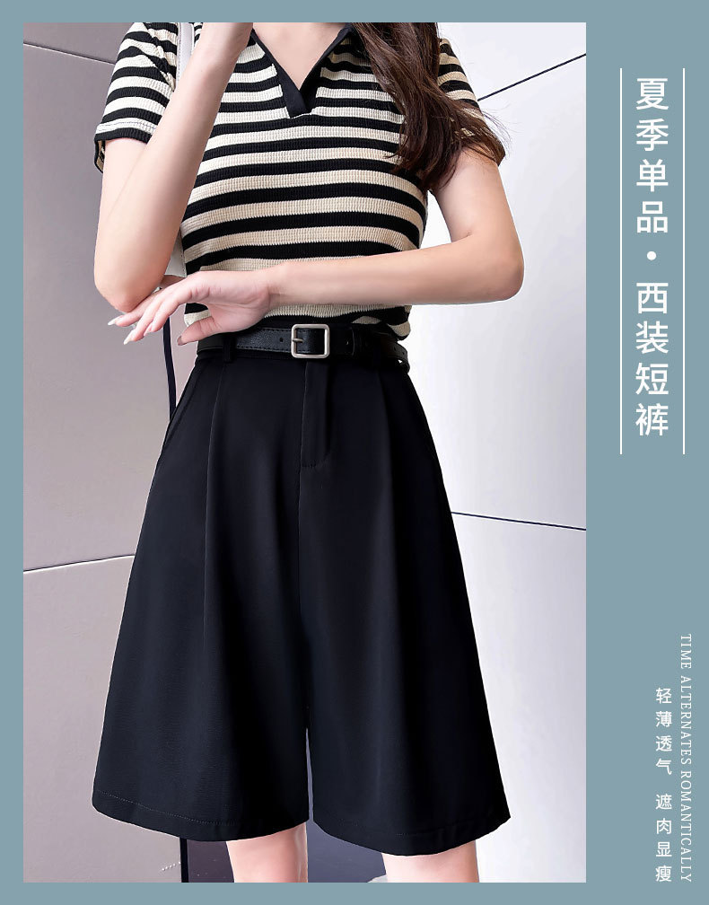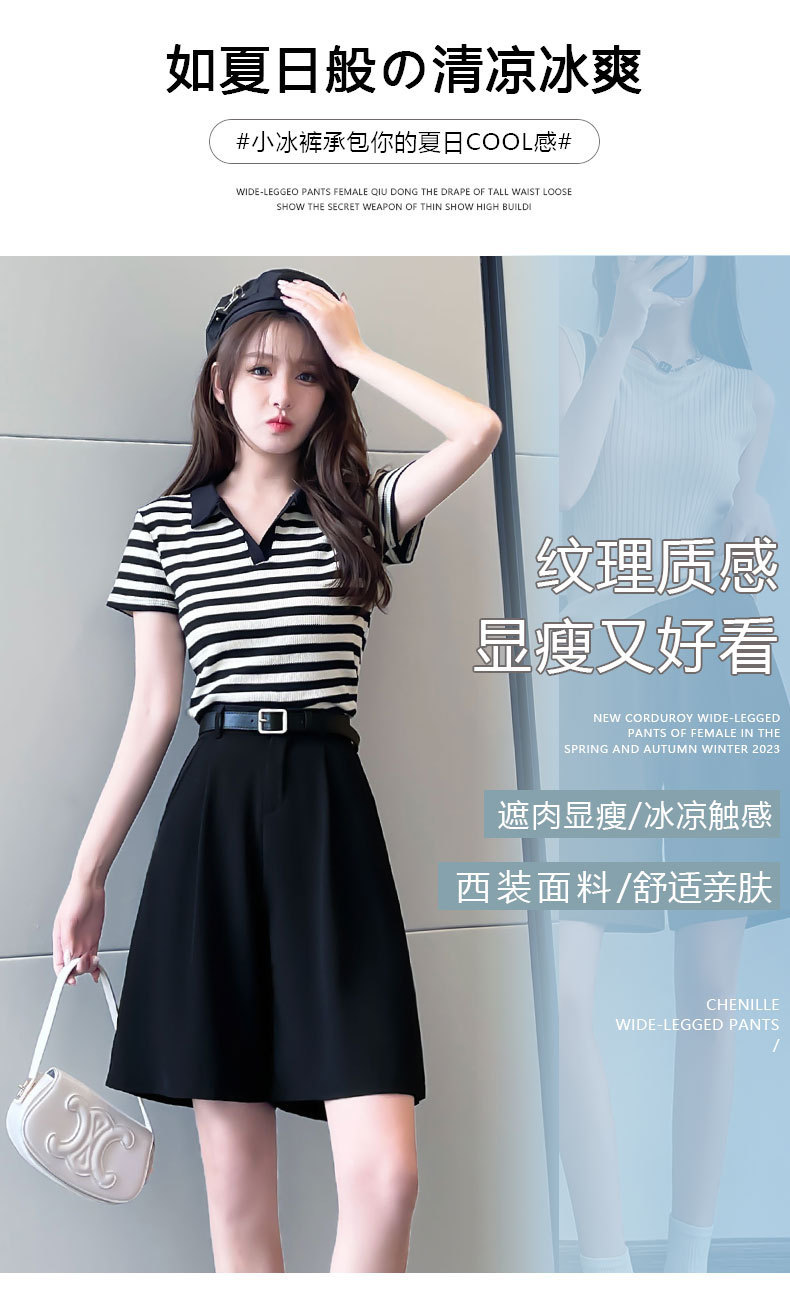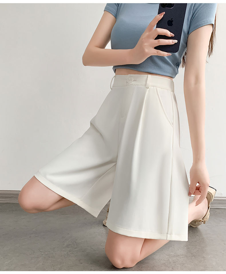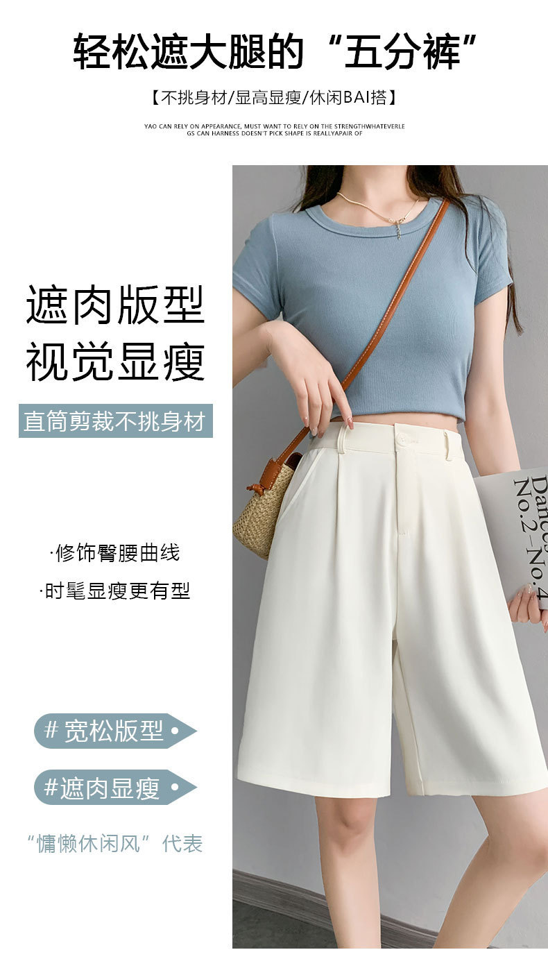 미국식 레트로 세트 반바지 여성 봄과 여름 새로운 하이 웨이스트 슬리밍 A 캐릭터 하이 엔드 센스 캐주얼 5 점 와이드 레그 반바지