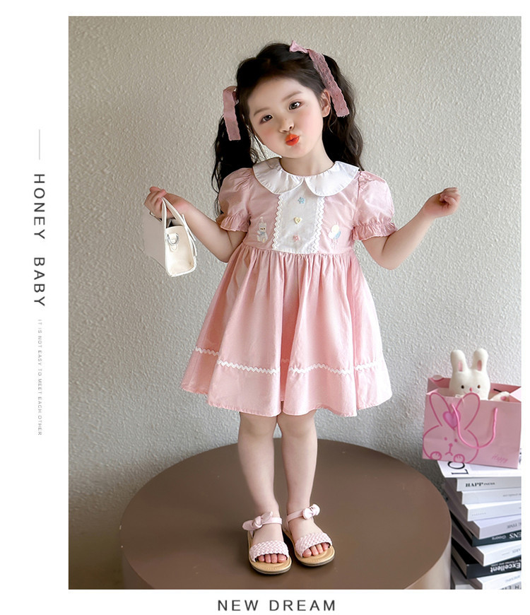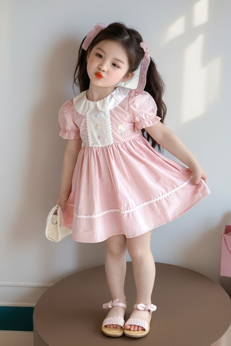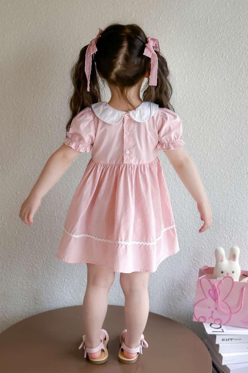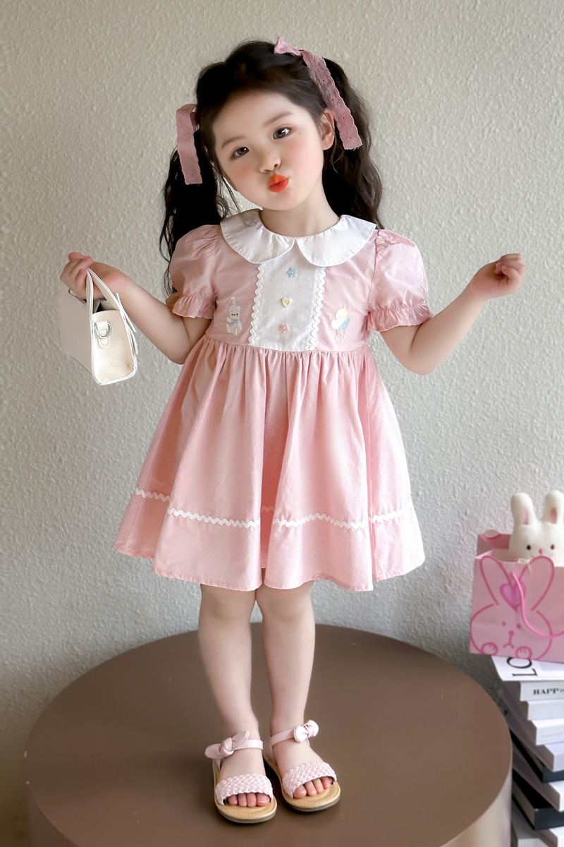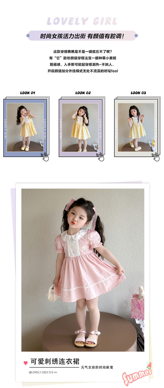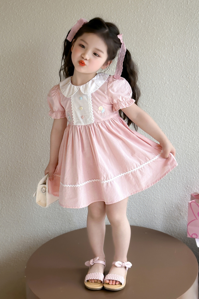 여자 원피스 2025 새로운 어린이 패션 인형 칼라 세련된 달콤한 핑크 퍼프 공주 원피스 여름스토어 가기