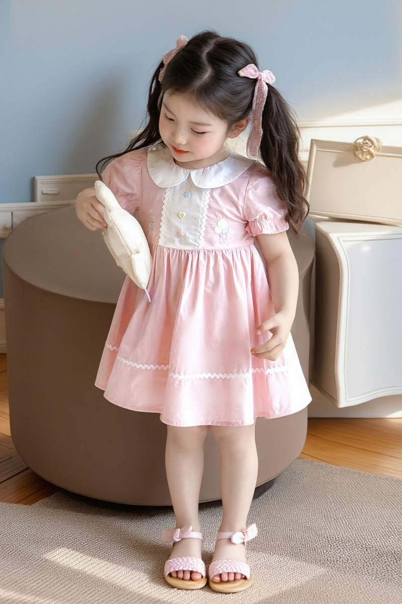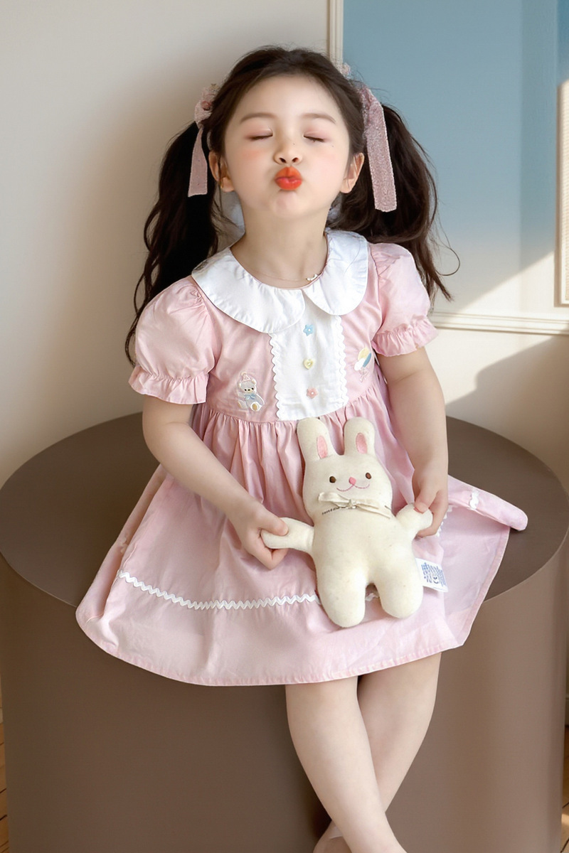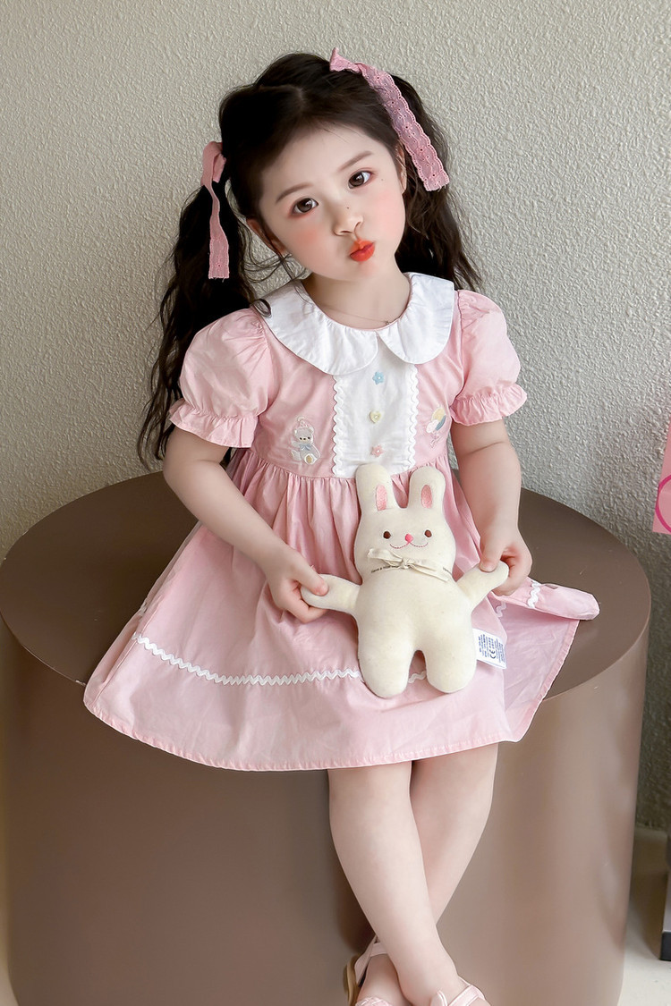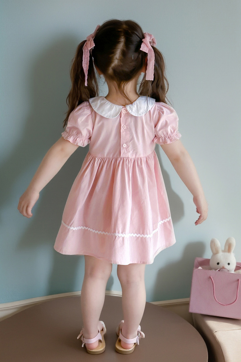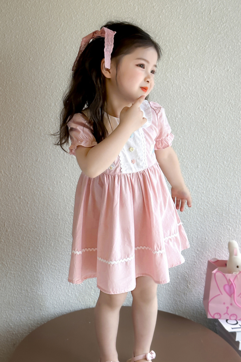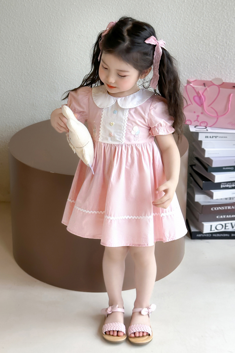 여자 원피스 2025 새로운 어린이 패션 인형 칼라 세련된 달콤한 핑크 퍼프 공주 원피스 여름스토어 가기