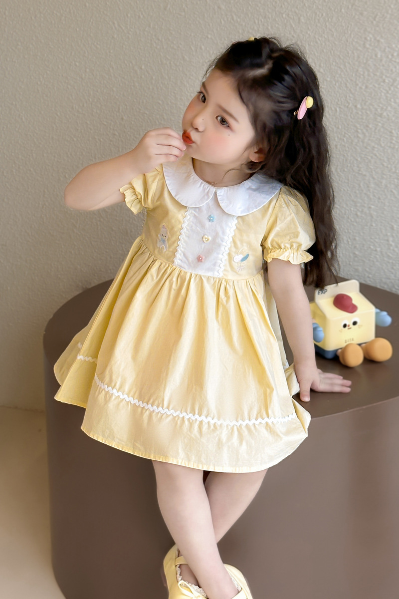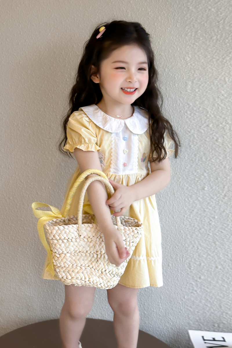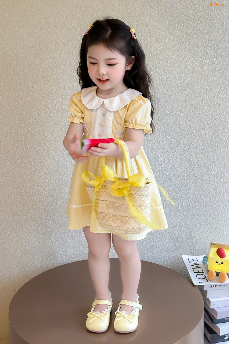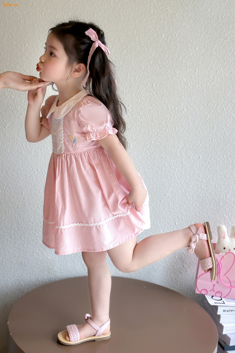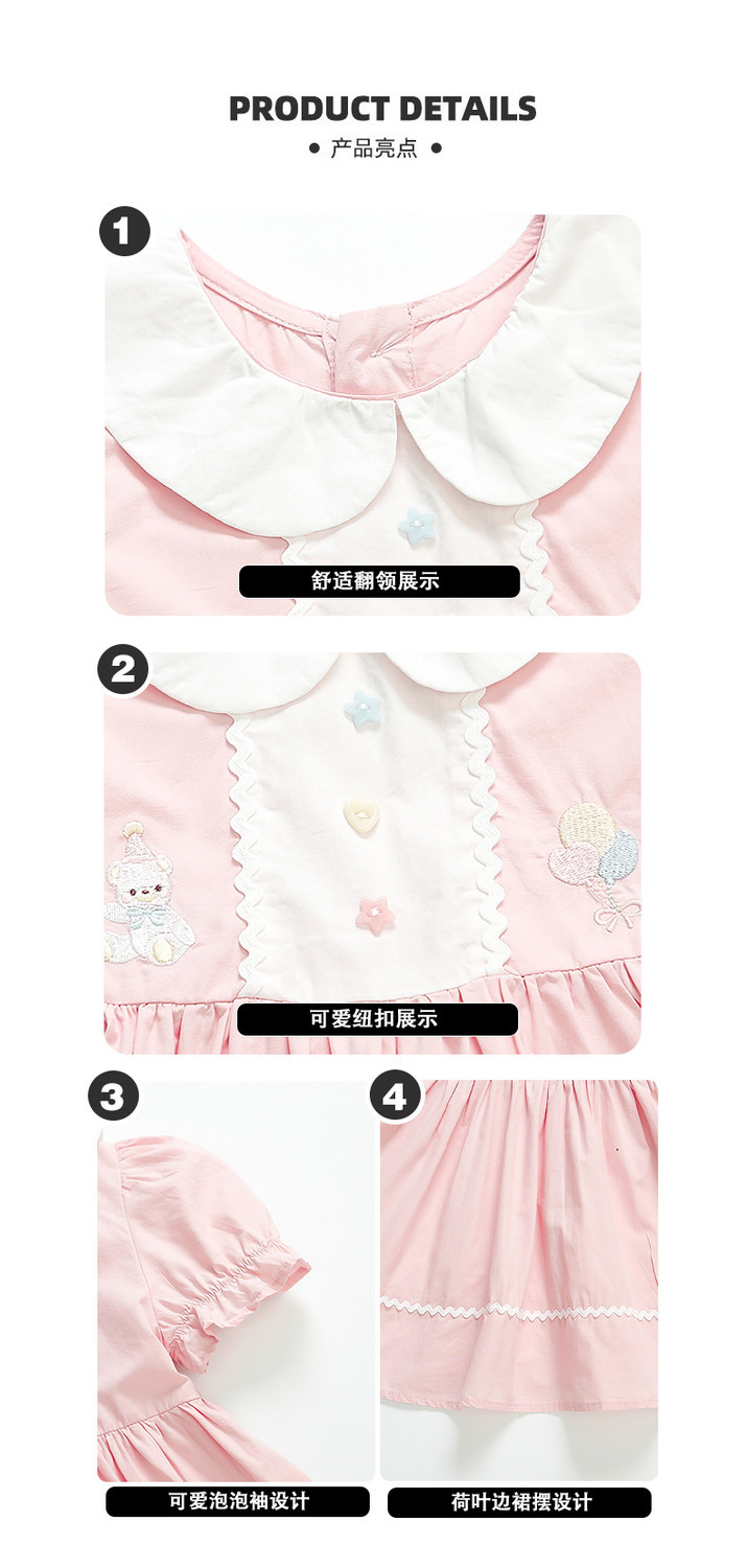 여자 원피스 2025 새로운 어린이 패션 인형 칼라 세련된 달콤한 핑크 퍼프 공주 원피스 여름스토어 가기