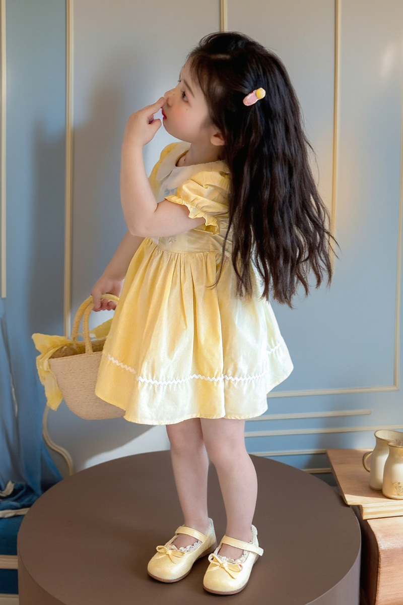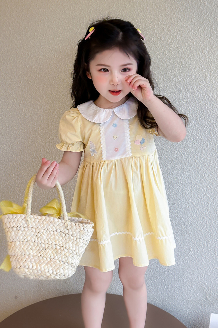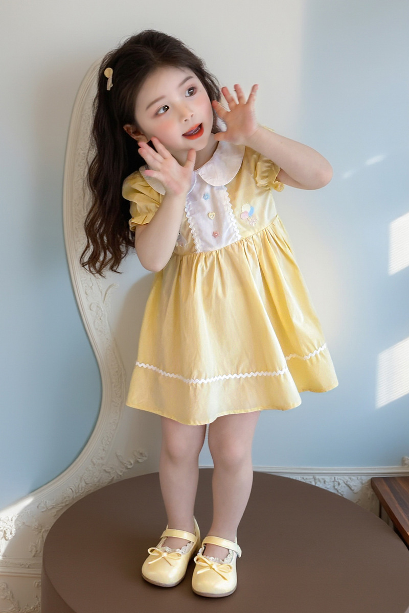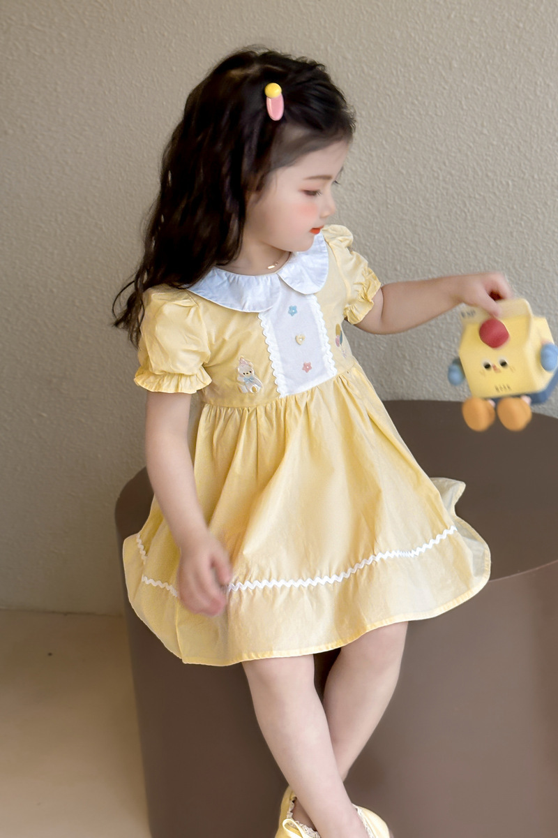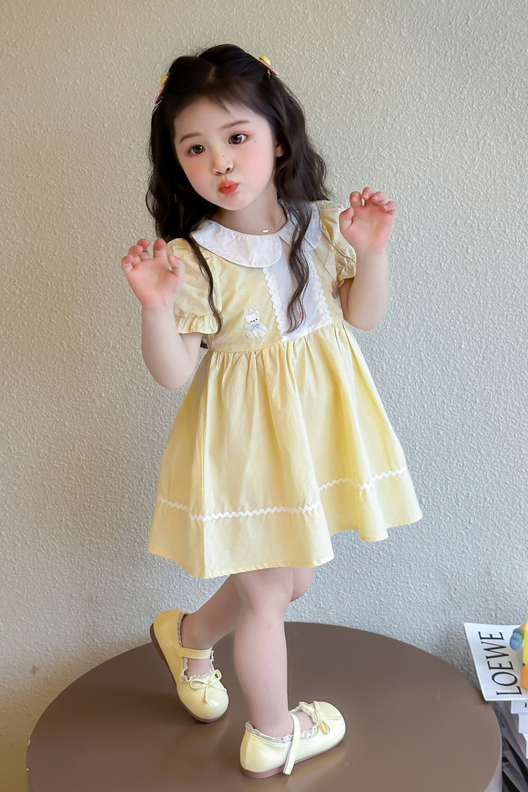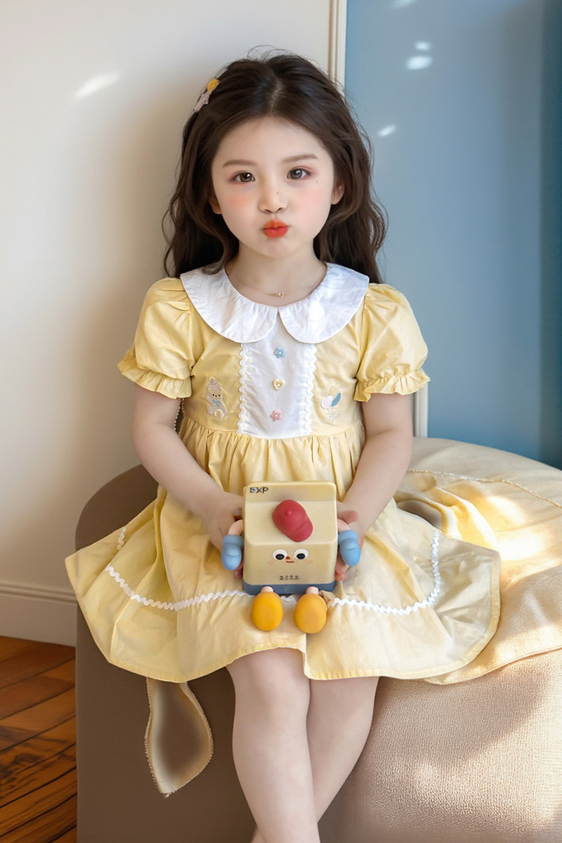 여자 원피스 2025 새로운 어린이 패션 인형 칼라 세련된 달콤한 핑크 퍼프 공주 원피스 여름스토어 가기