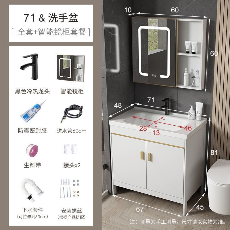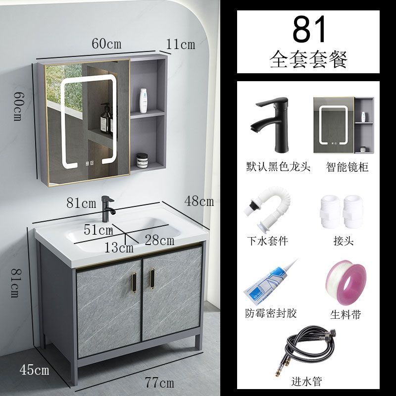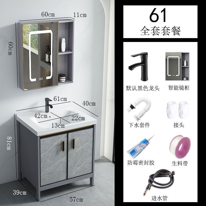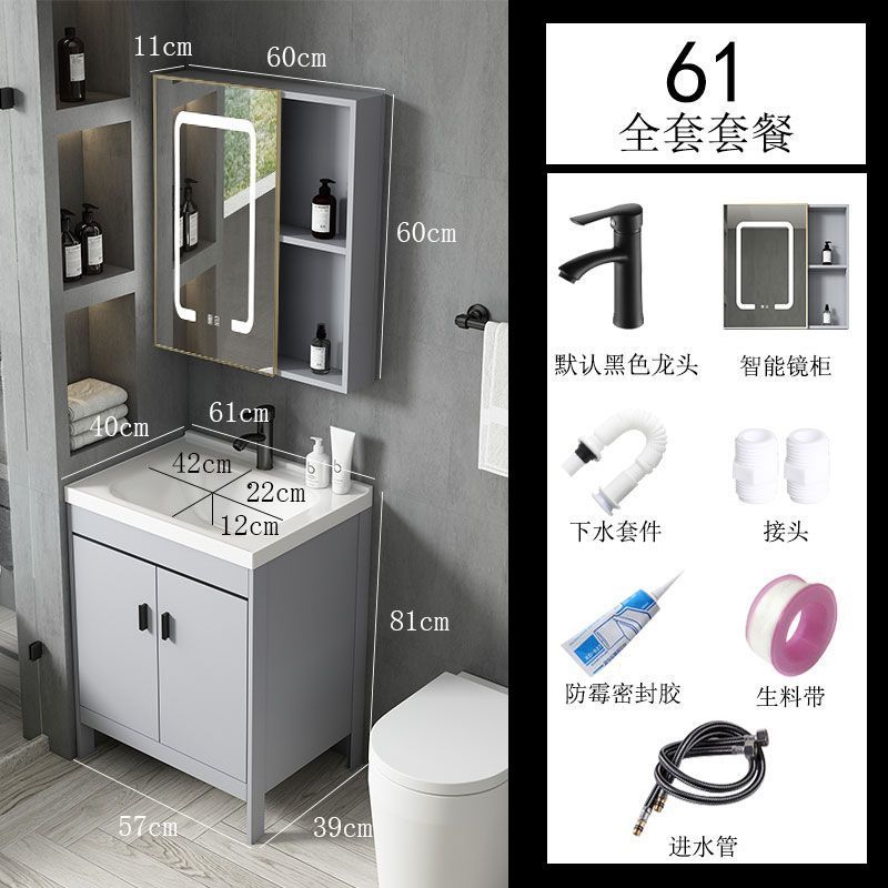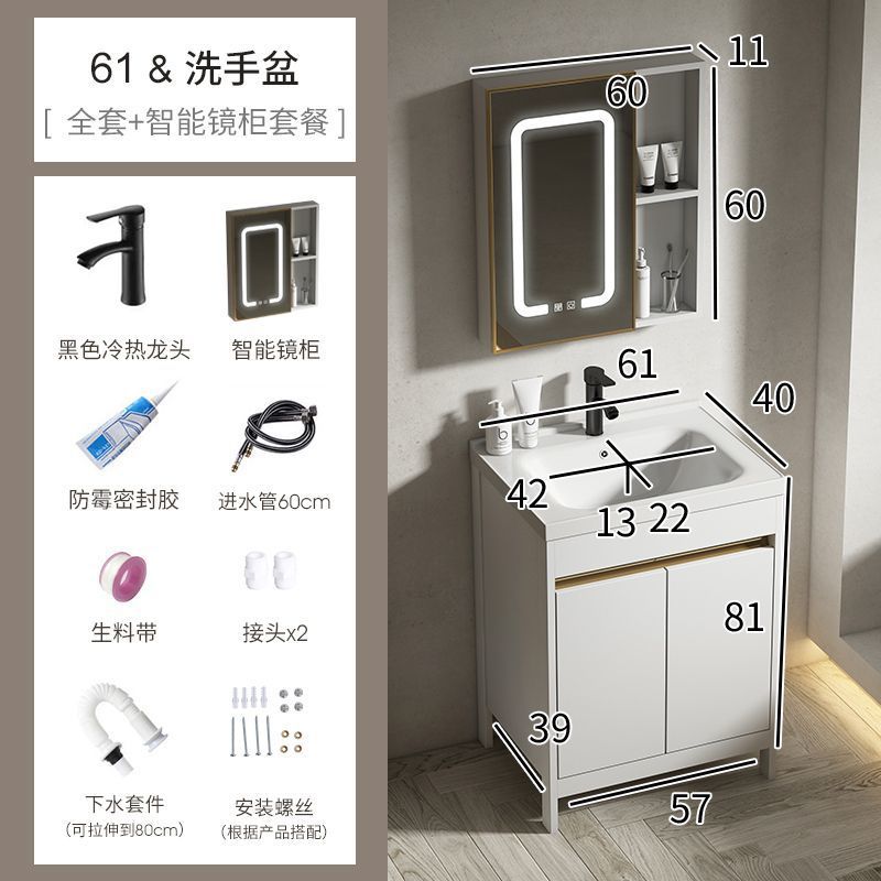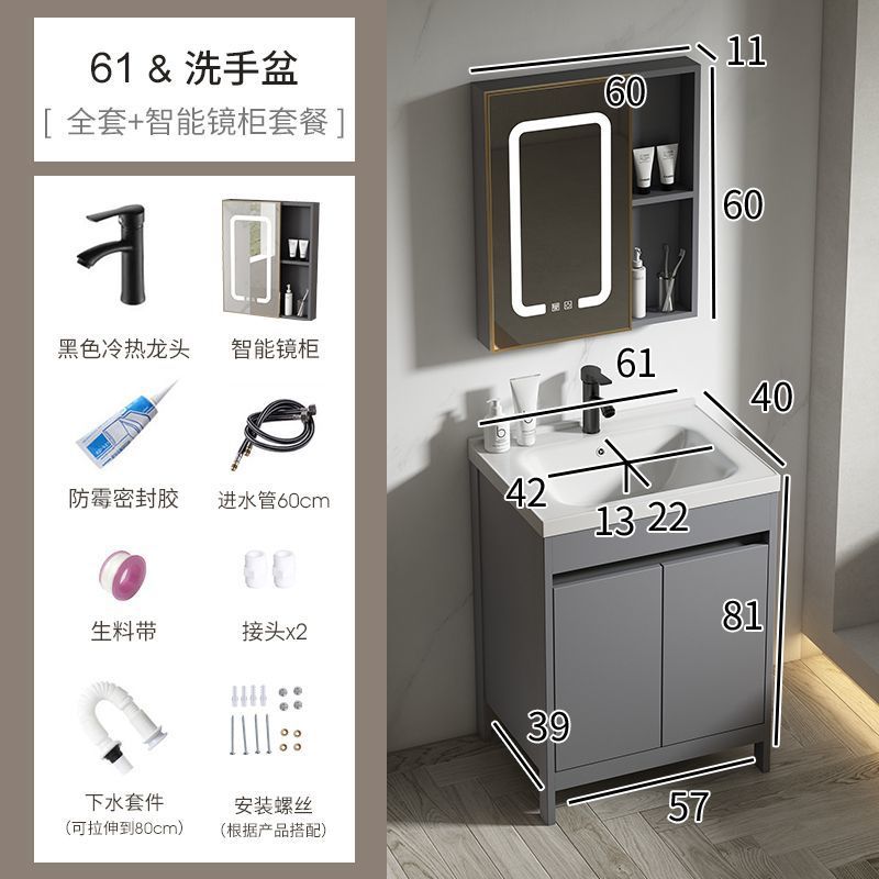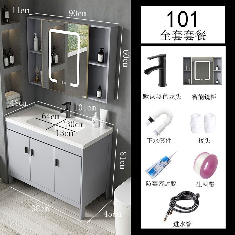 공간 알루미늄 욕실 캐비닛 세척 분지 캐비닛 욕실 지능형 바닥 발코니 통합 세라믹 세면기 캐비닛 조합스토어 가기