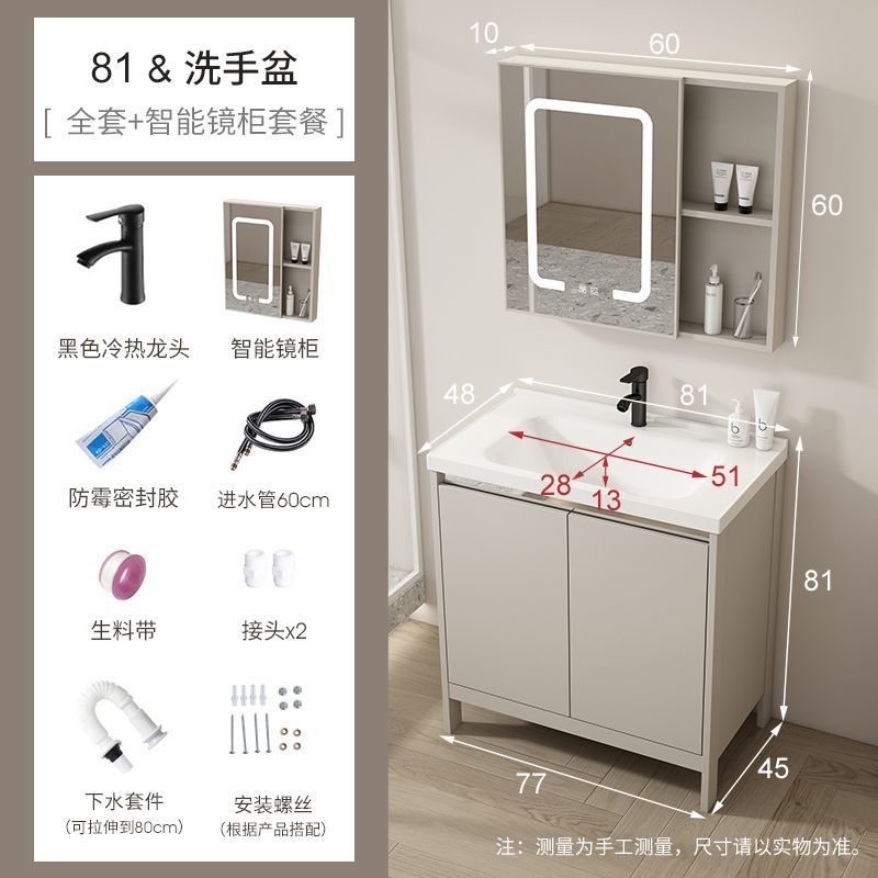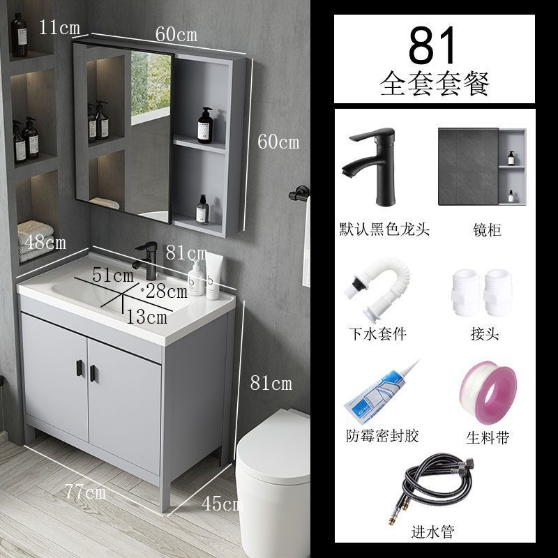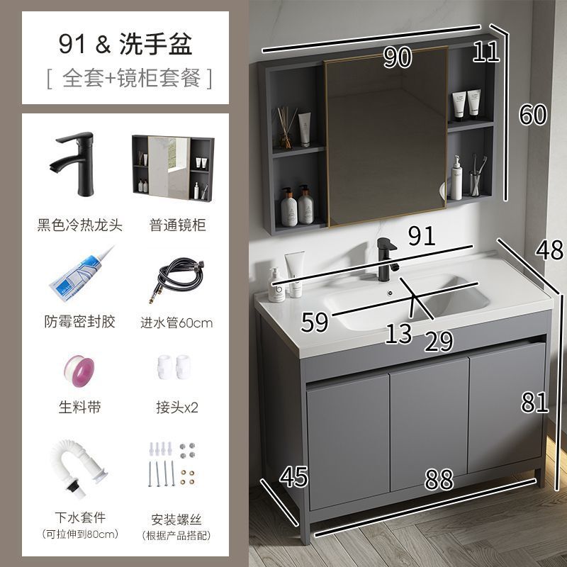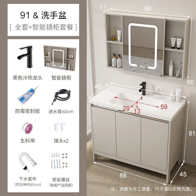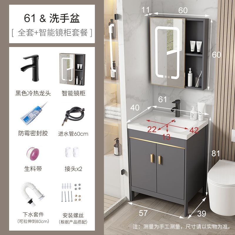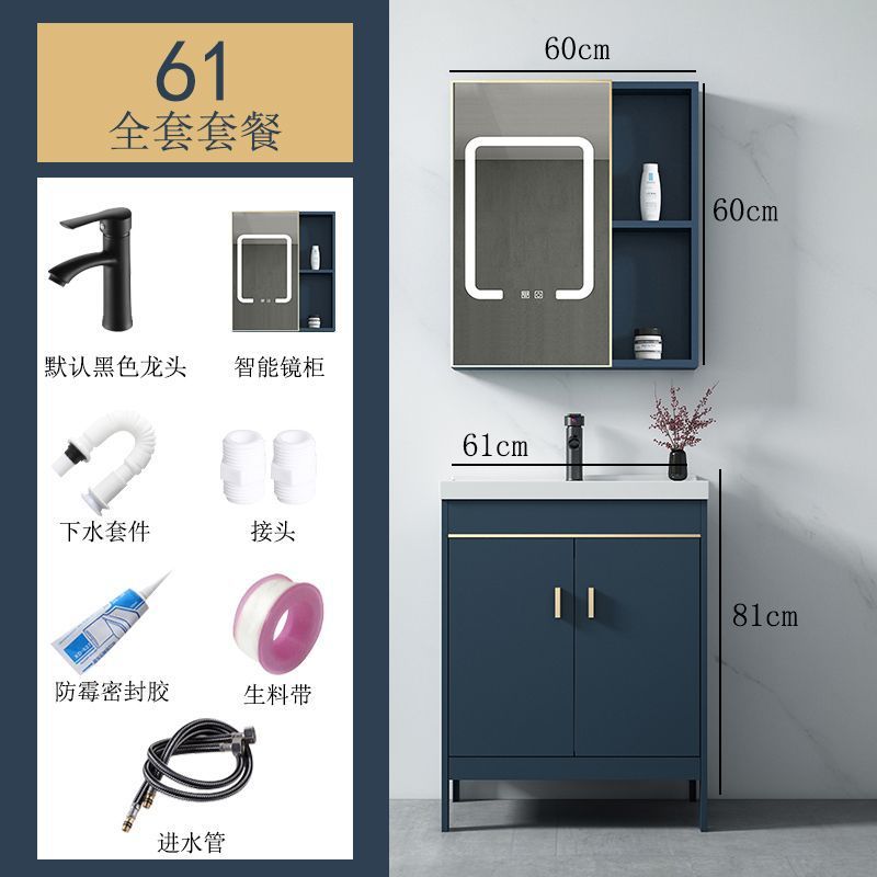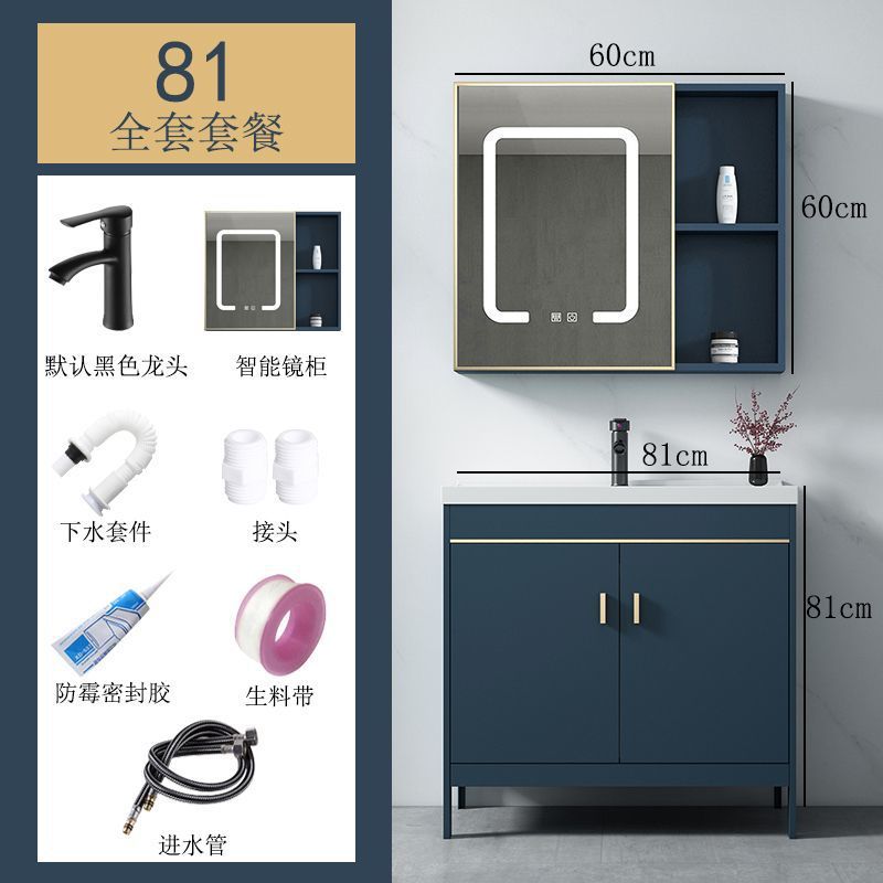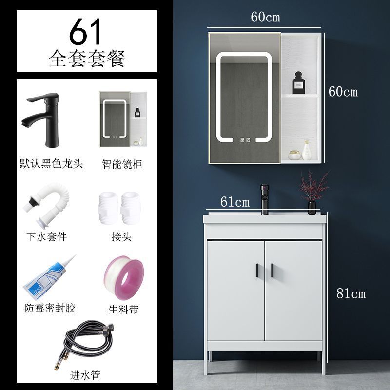 공간 알루미늄 욕실 캐비닛 세척 분지 캐비닛 욕실 지능형 바닥 발코니 통합 세라믹 세면기 캐비닛 조합스토어 가기