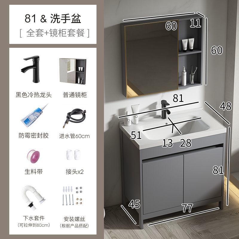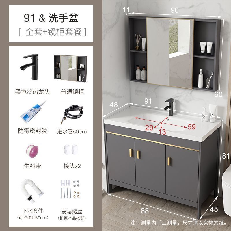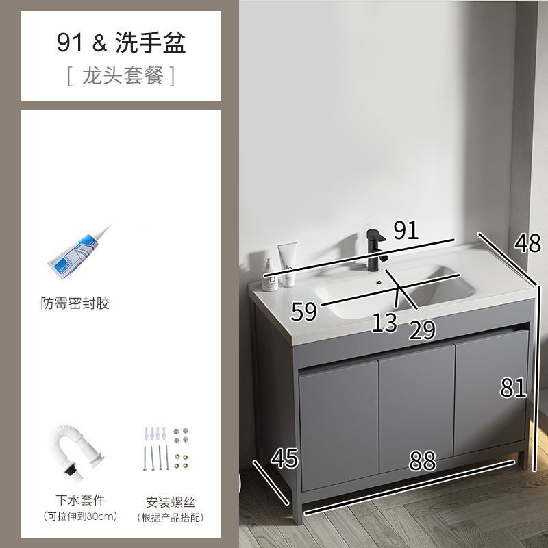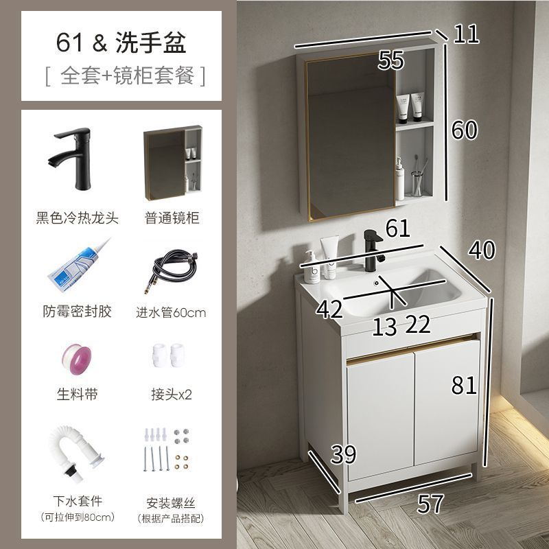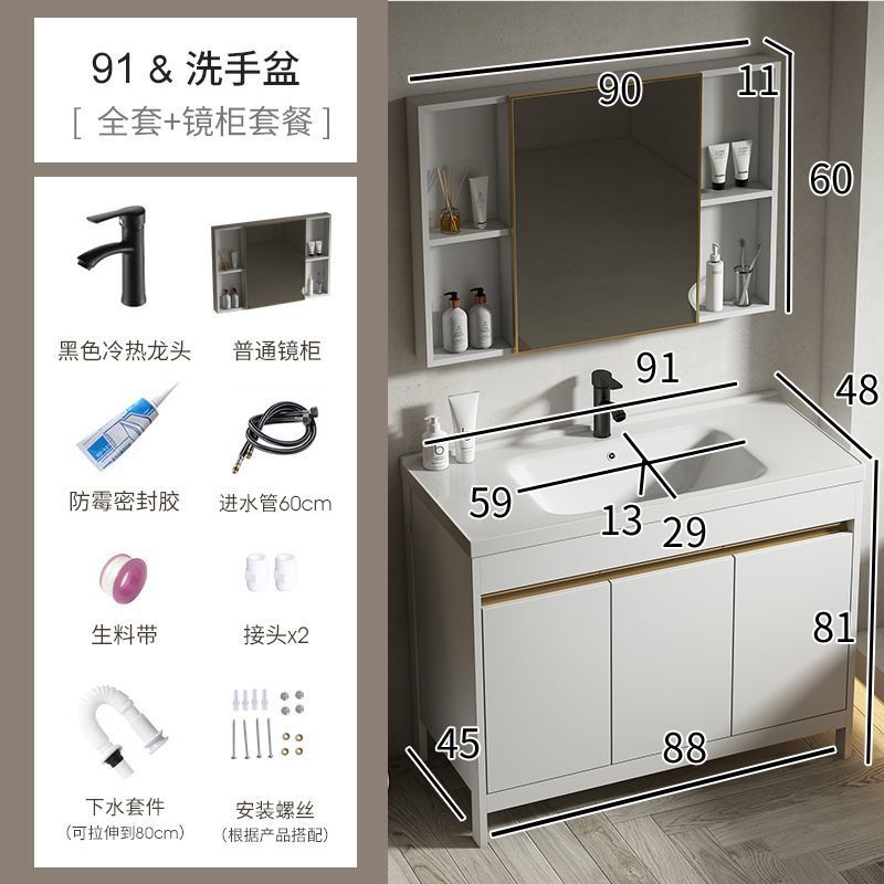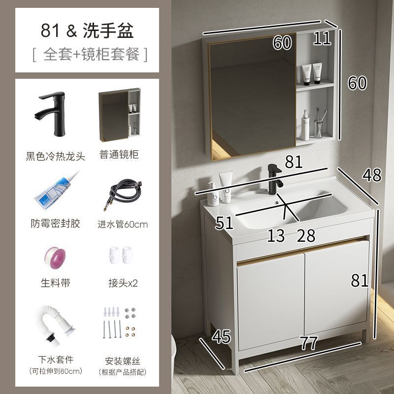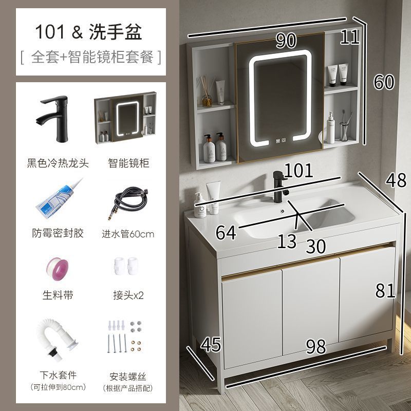 공간 알루미늄 욕실 캐비닛 세척 분지 캐비닛 욕실 지능형 바닥 발코니 통합 세라믹 세면기 캐비닛 조합스토어 가기