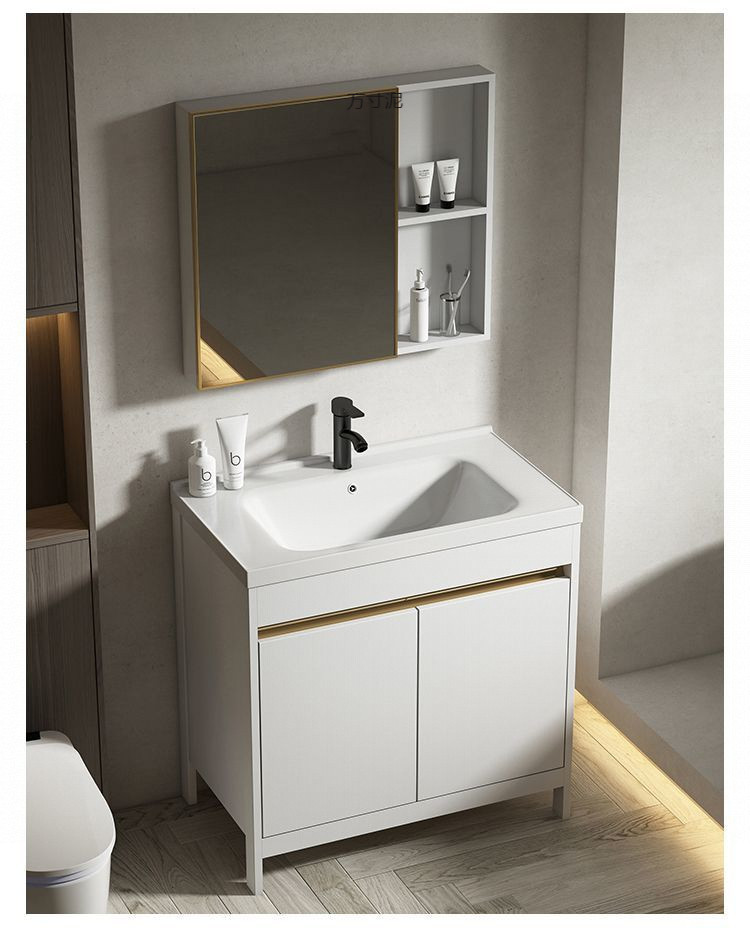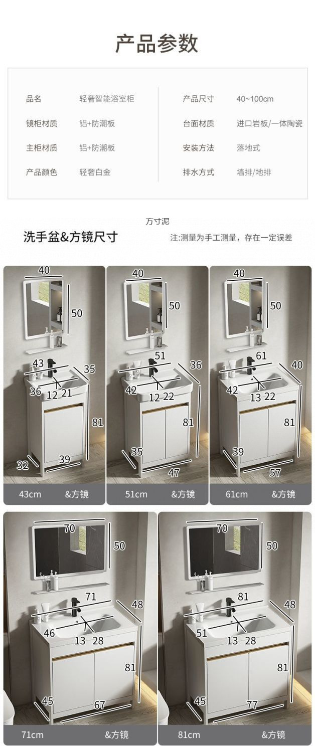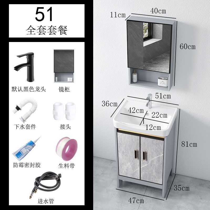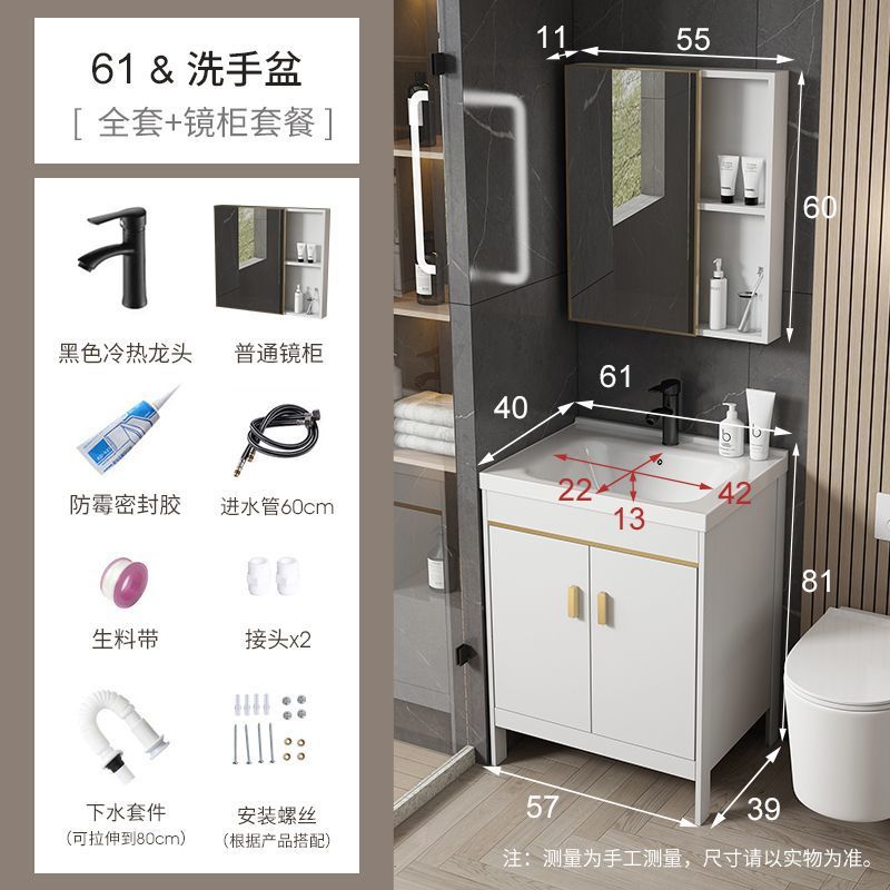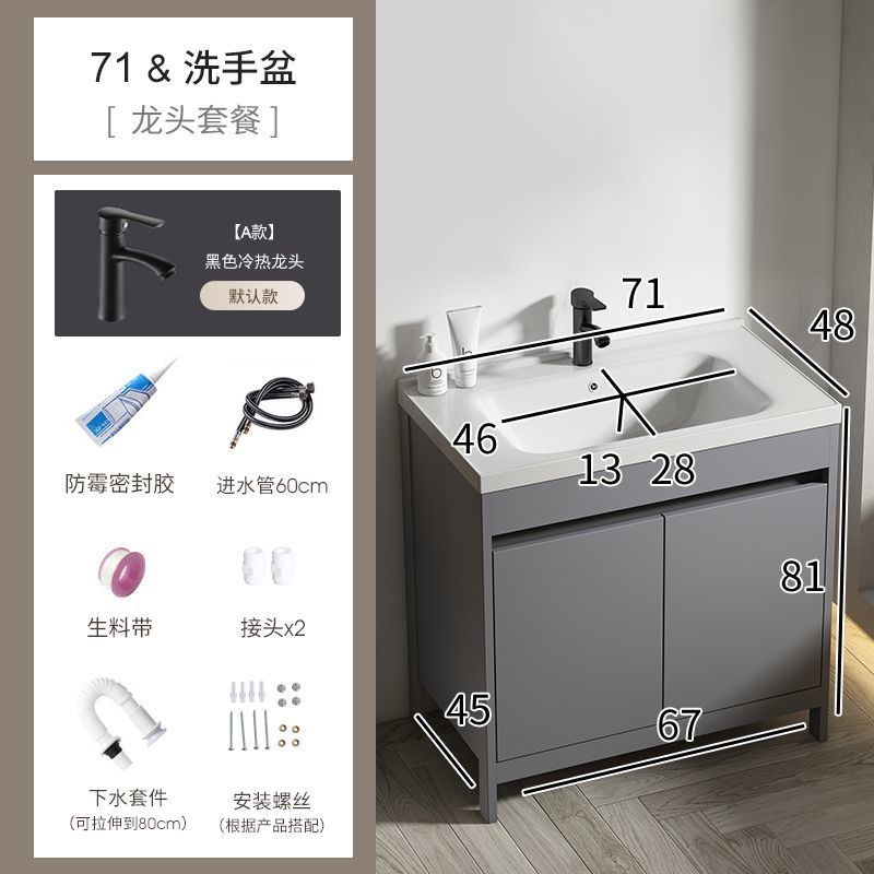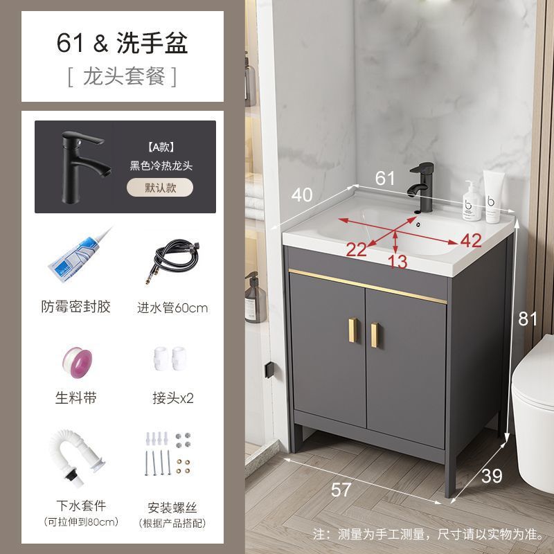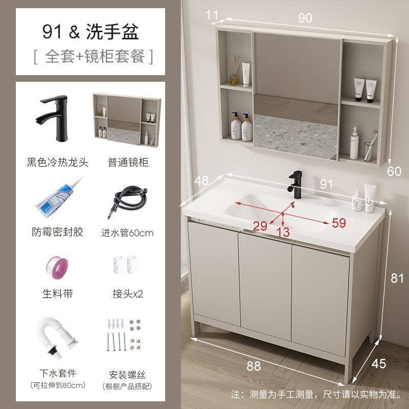 공간 알루미늄 욕실 캐비닛 세척 분지 캐비닛 욕실 지능형 바닥 발코니 통합 세라믹 세면기 캐비닛 조합스토어 가기