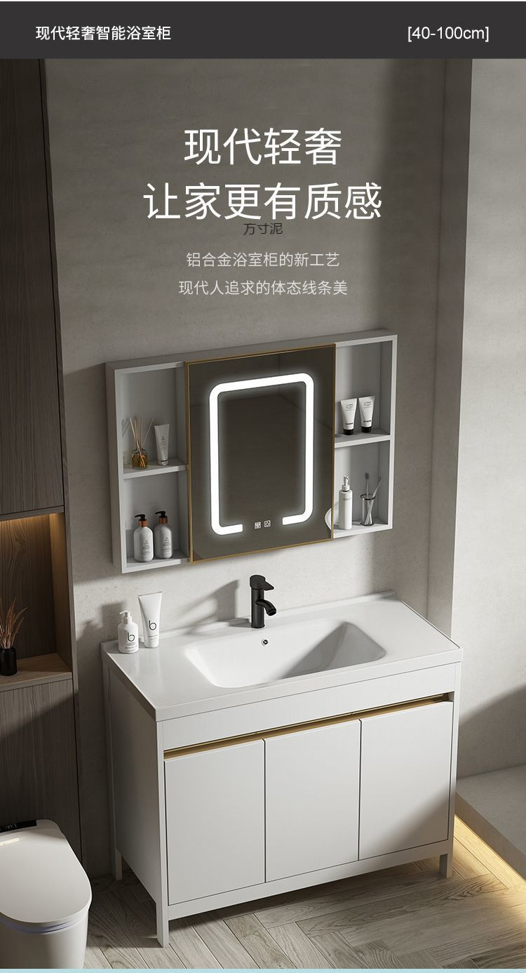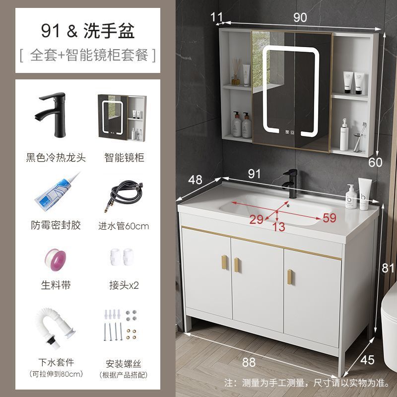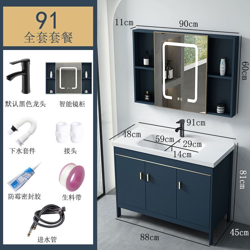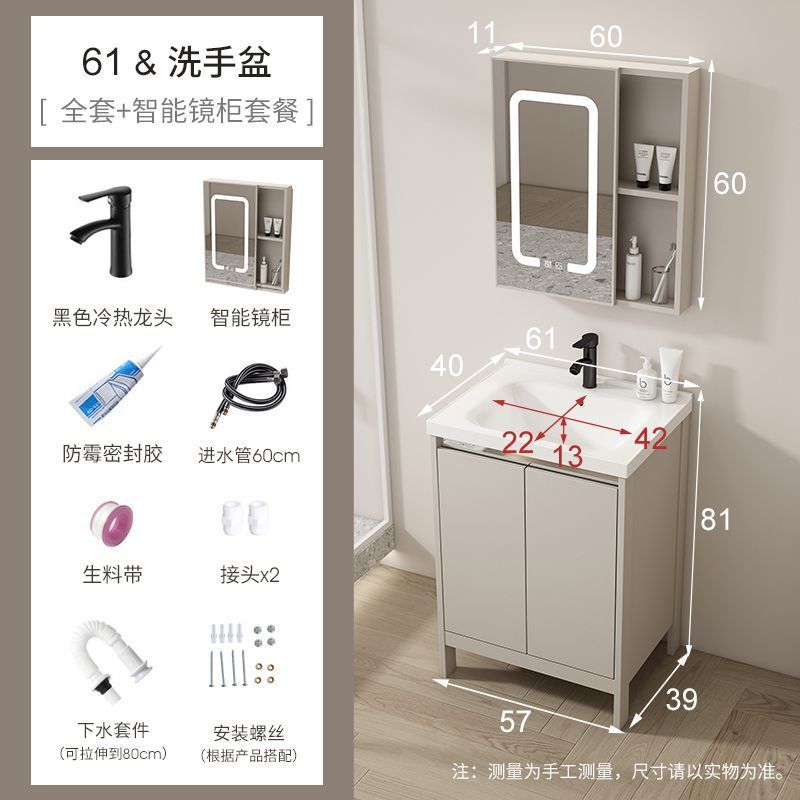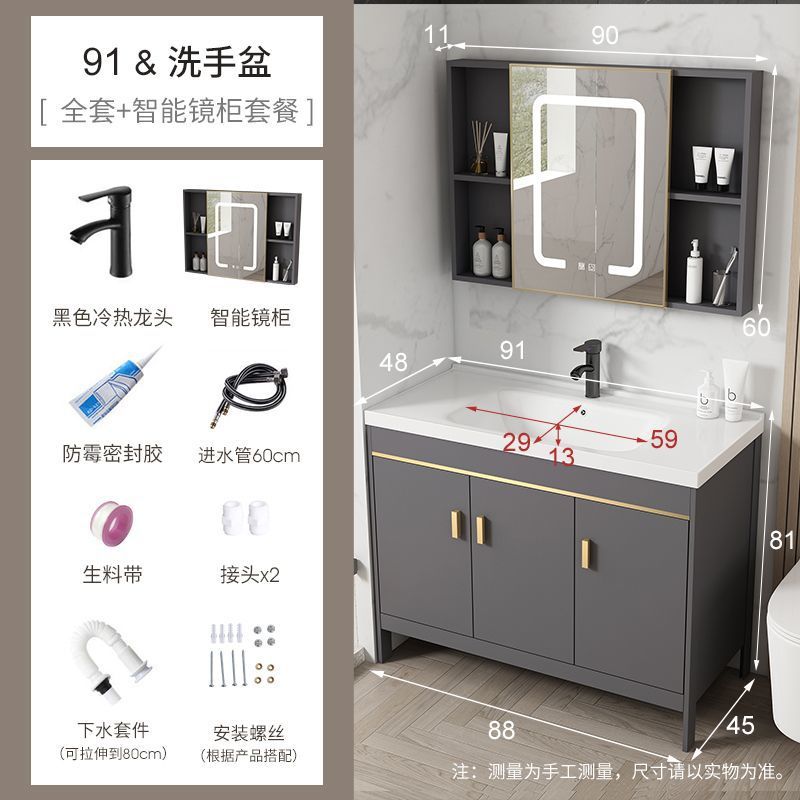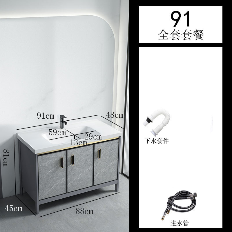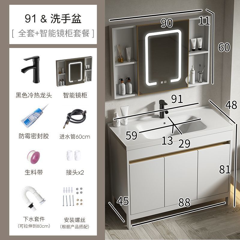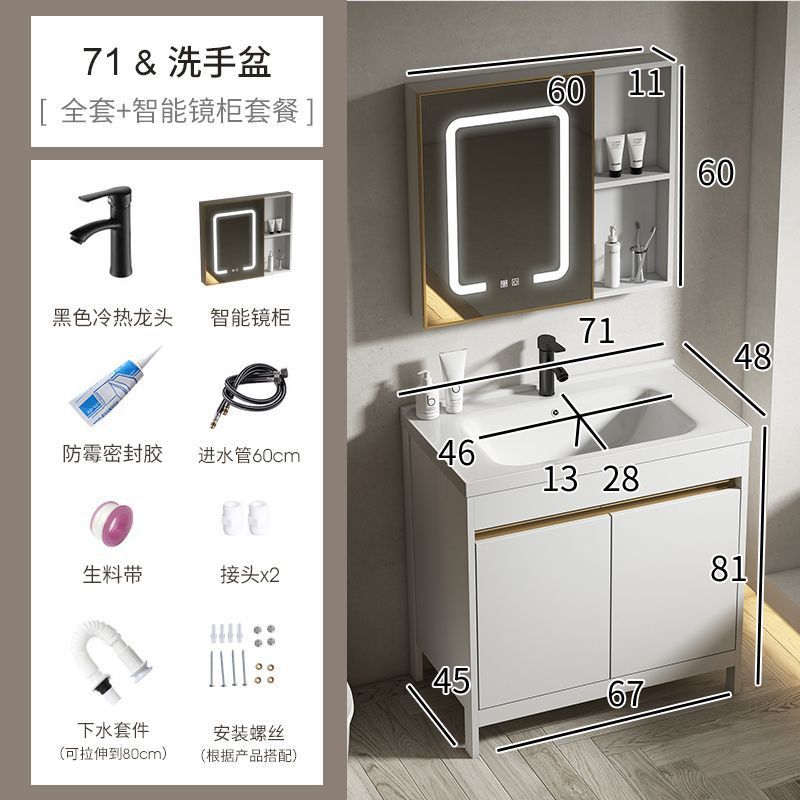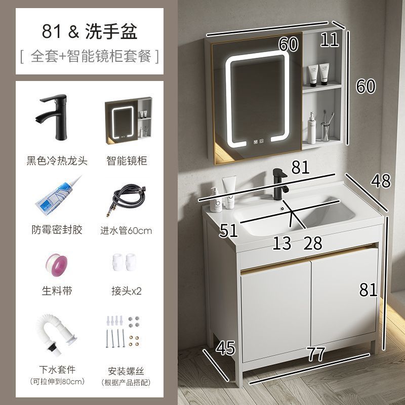 공간 알루미늄 욕실 캐비닛 세척 분지 캐비닛 욕실 지능형 바닥 발코니 통합 세라믹 세면기 캐비닛 조합