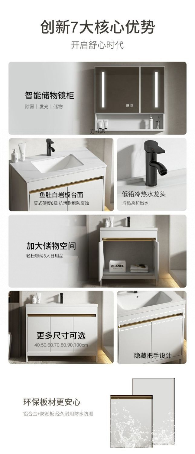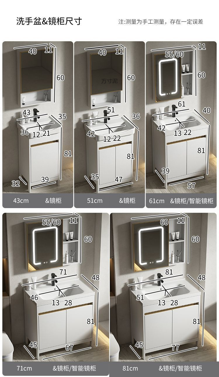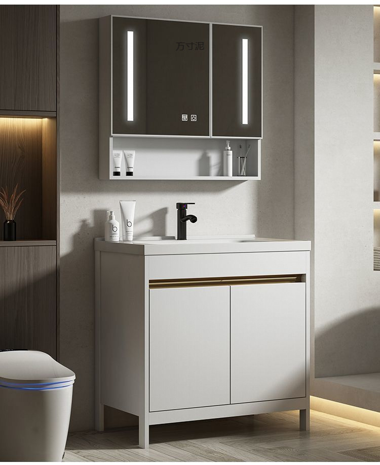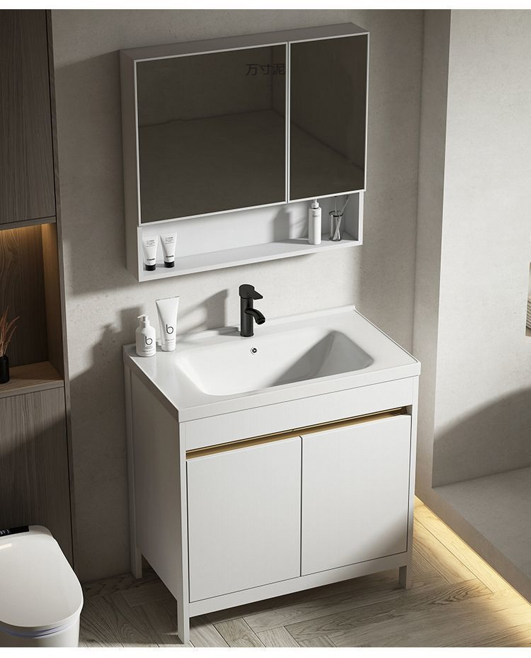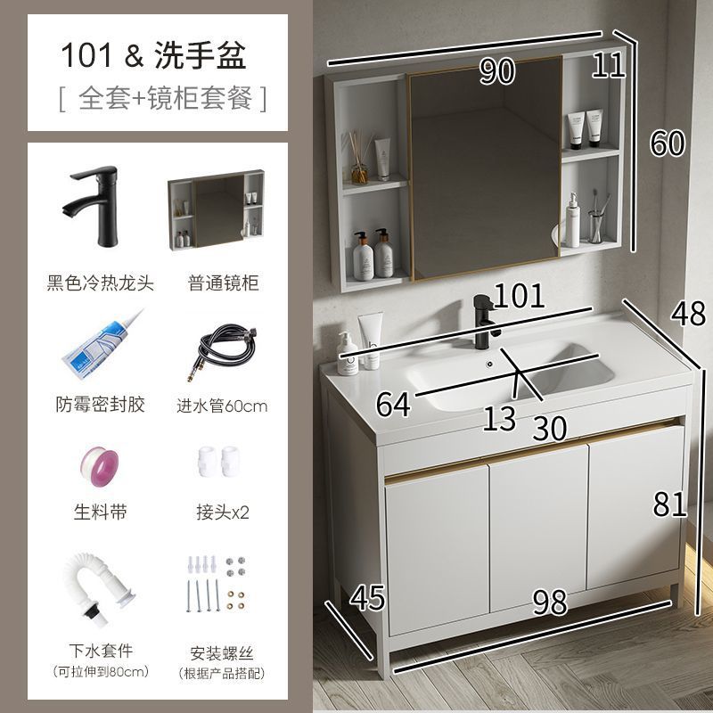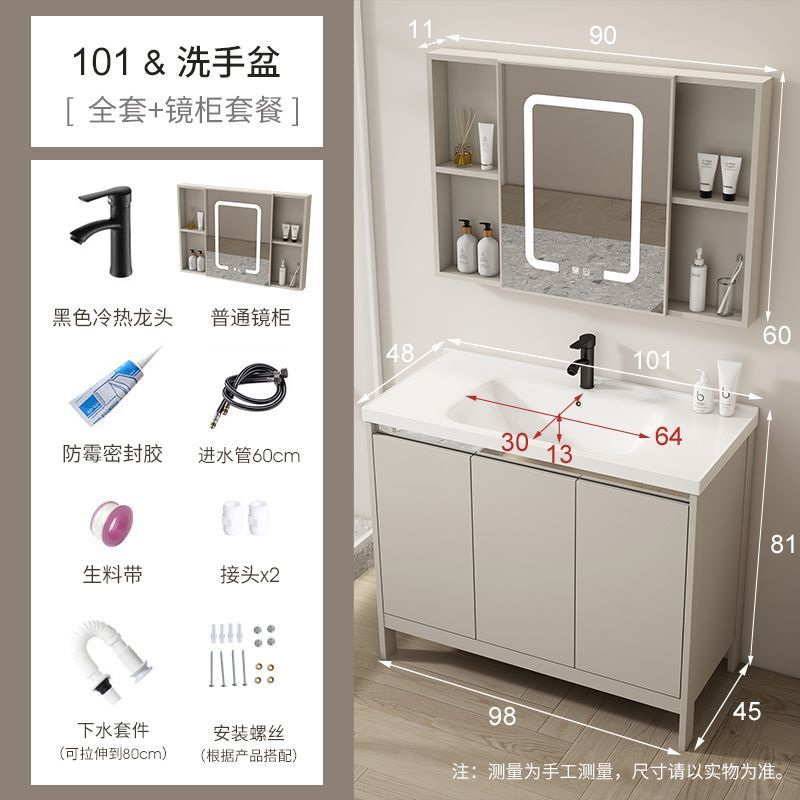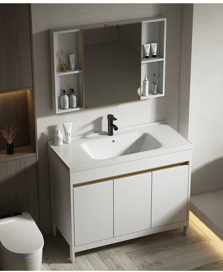 공간 알루미늄 욕실 캐비닛 세척 분지 캐비닛 욕실 지능형 바닥 발코니 통합 세라믹 세면기 캐비닛 조합