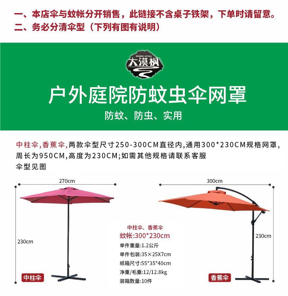 • 중앙 기둥 우산 모기장(우산 제외) 직경 3m x 높이 2.3m