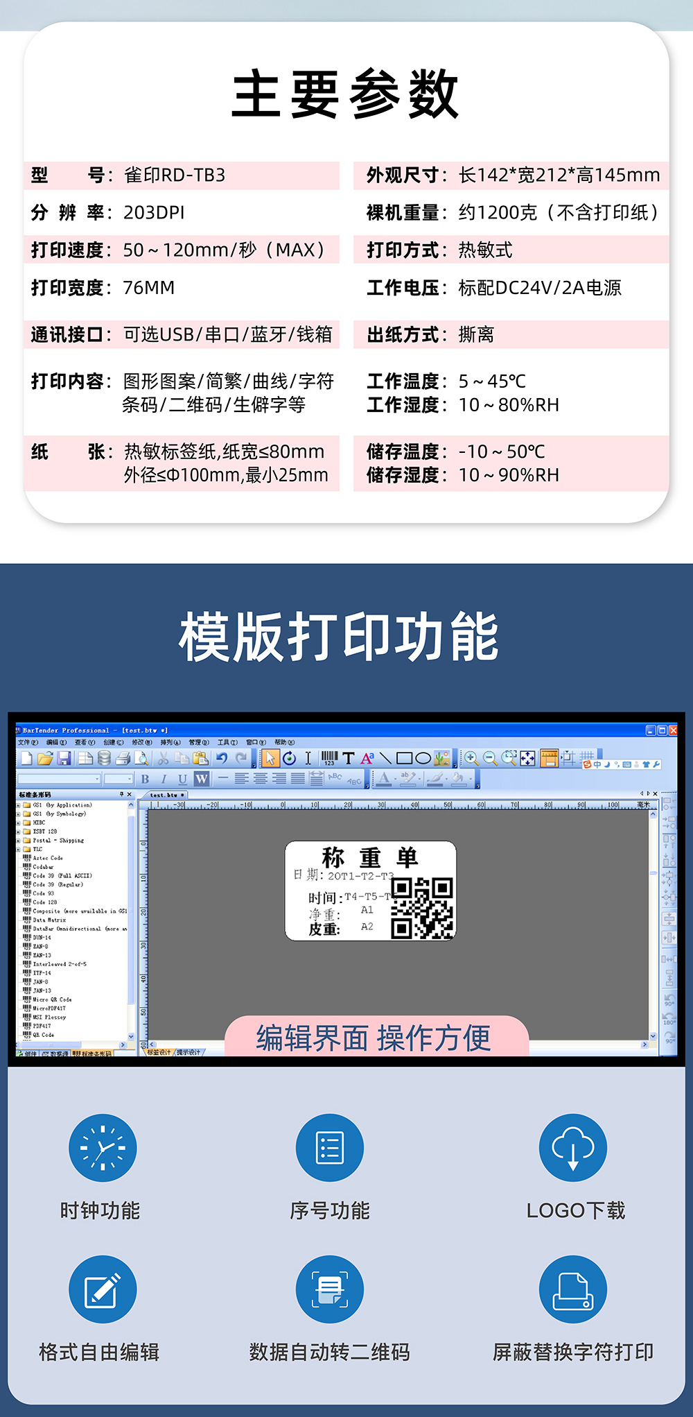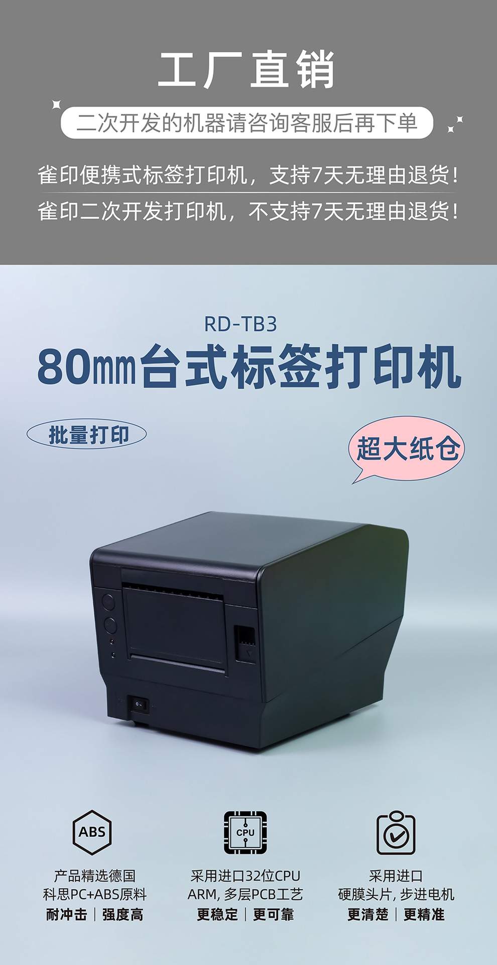 TB3 열전사 라벨 의류 태그 스티커 슈퍼마켓 식품 가격 바코드 프린터 고속 인쇄