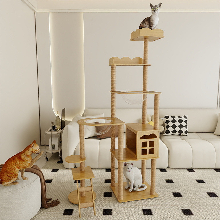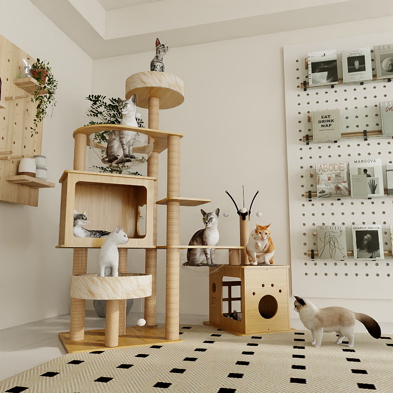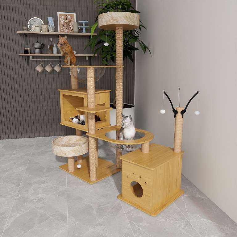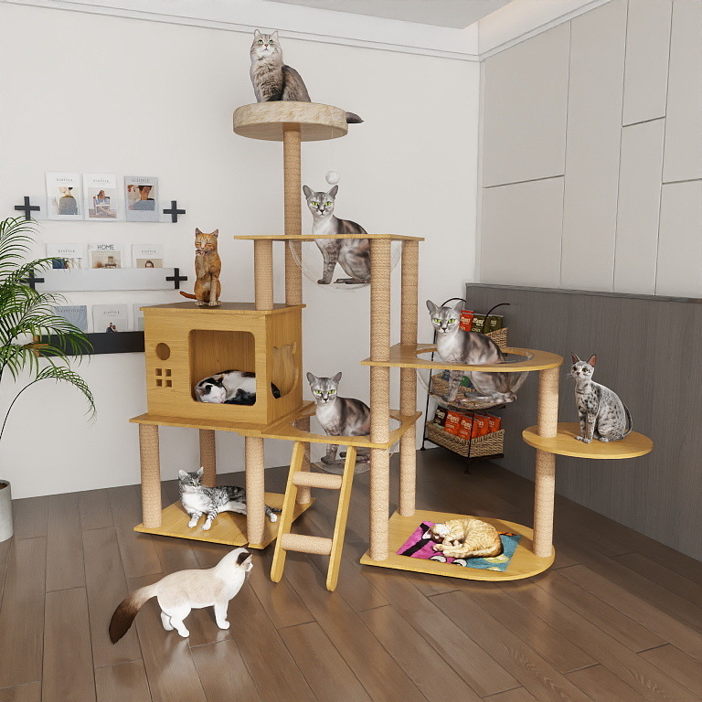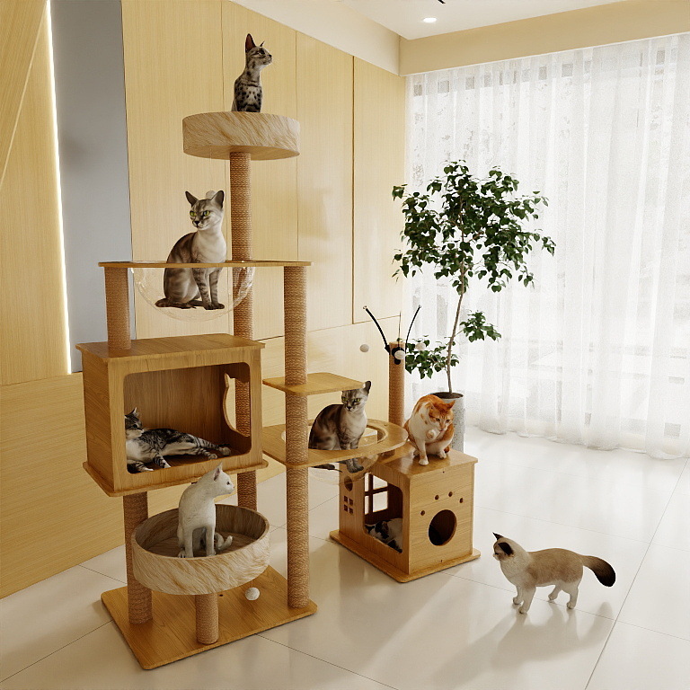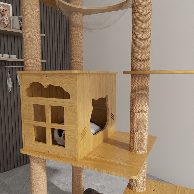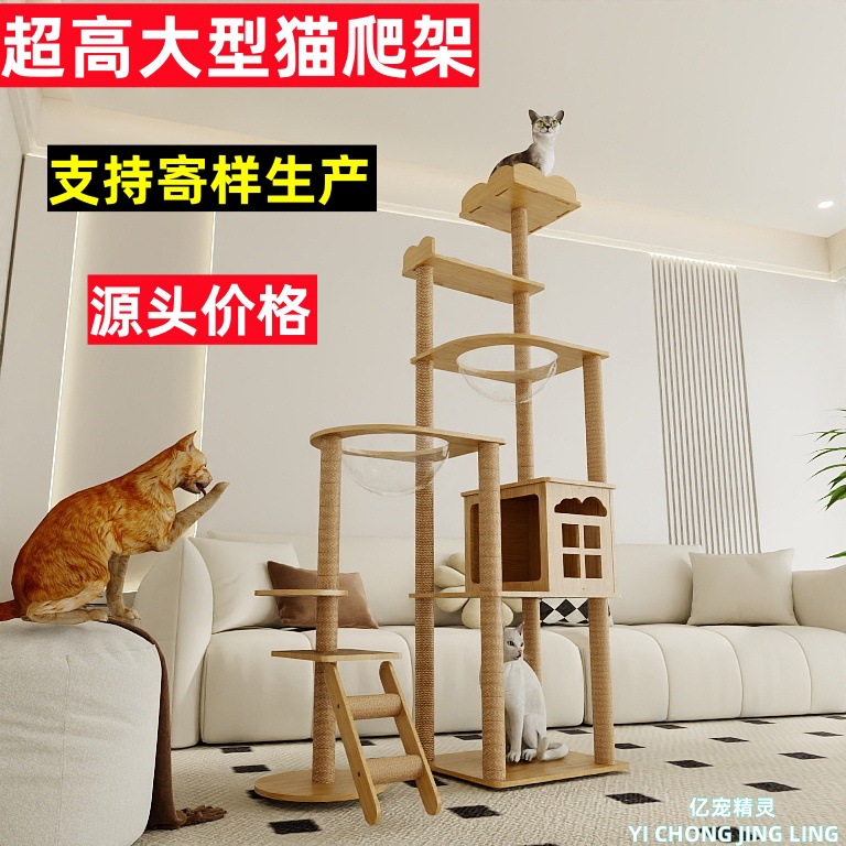 고양이 등반 랙 큰 고양이 둥지 통합 단단한 나무 고양이 나무 고양이 고양이 잡아 기둥 점프 플랫폼 사계절 유니버설 우주 캡슐 고양이 등반 랙