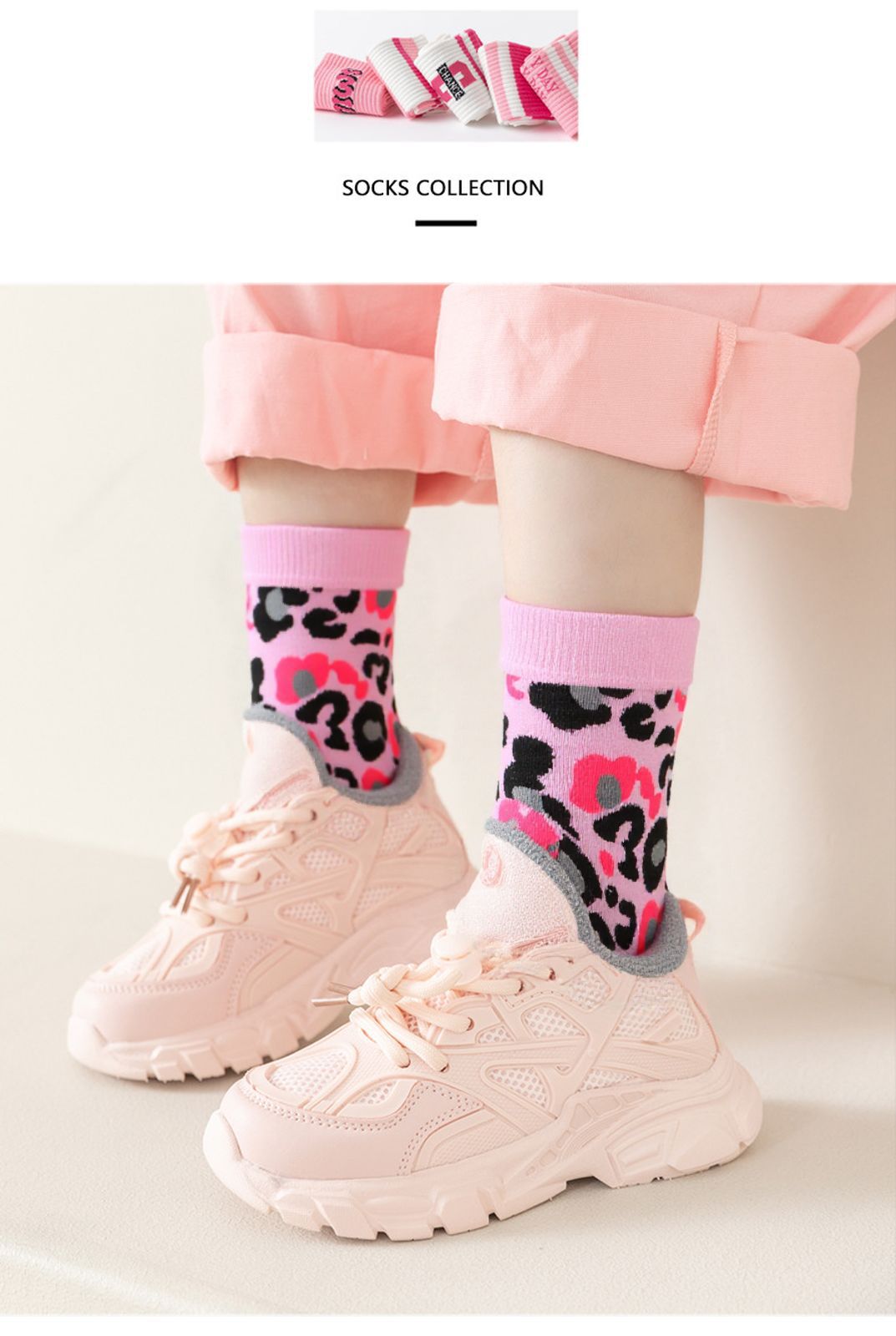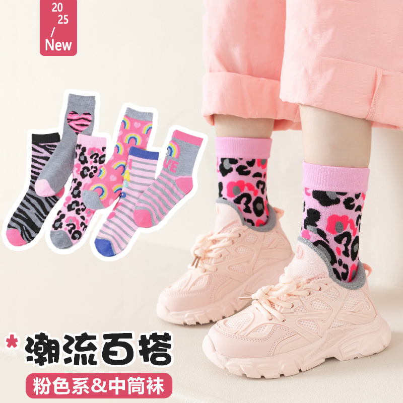 소녀 양말 봄 가을 얇은 소녀 중간 튜브 양말 핑크 레오파드 무늬 공주 어린이 가을 겨울 스포츠 양말 유행 편지스토어 가기