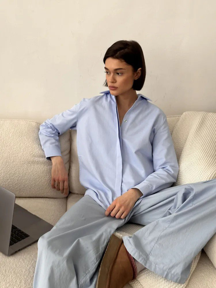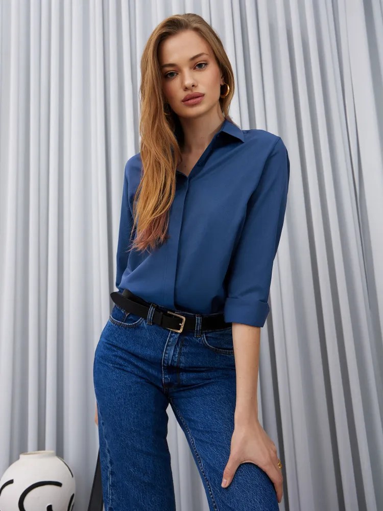 국경 간 유럽과 미국의 대외 무역 셔츠 디자인 센스 탑 올 매치 캐주얼 긴팔 러시아