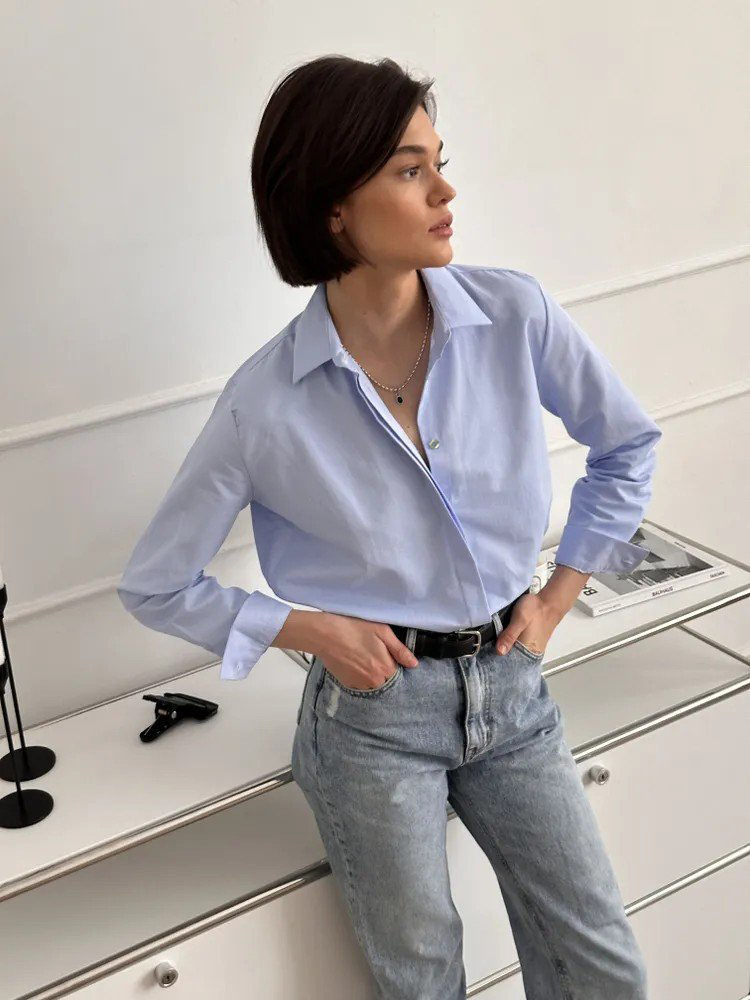 국경 간 유럽과 미국의 대외 무역 셔츠 디자인 센스 탑 올 매치 캐주얼 긴팔 러시아스토어 가기