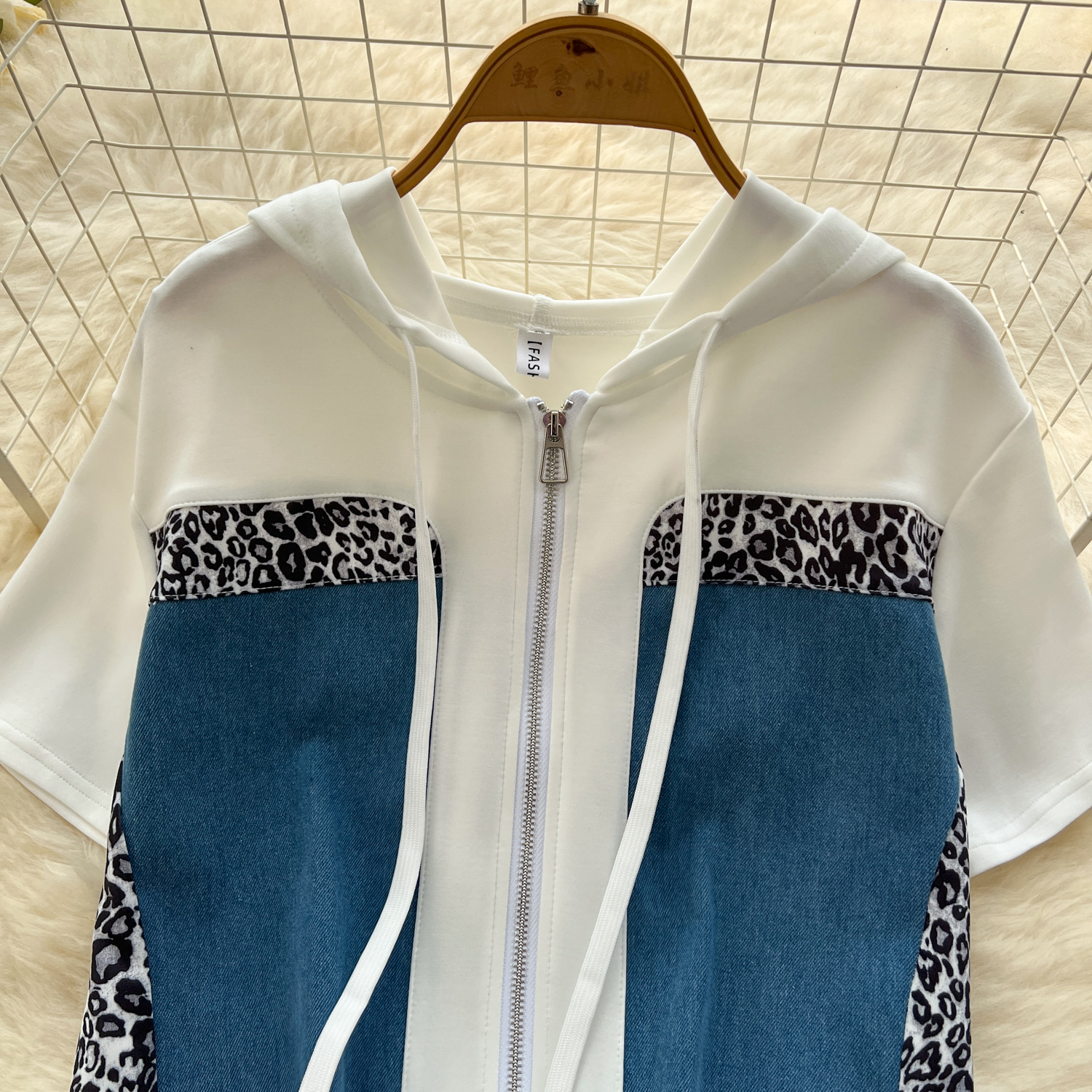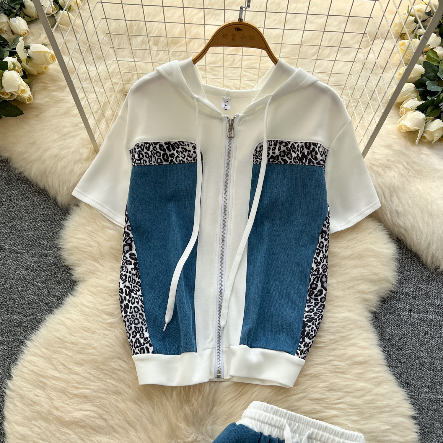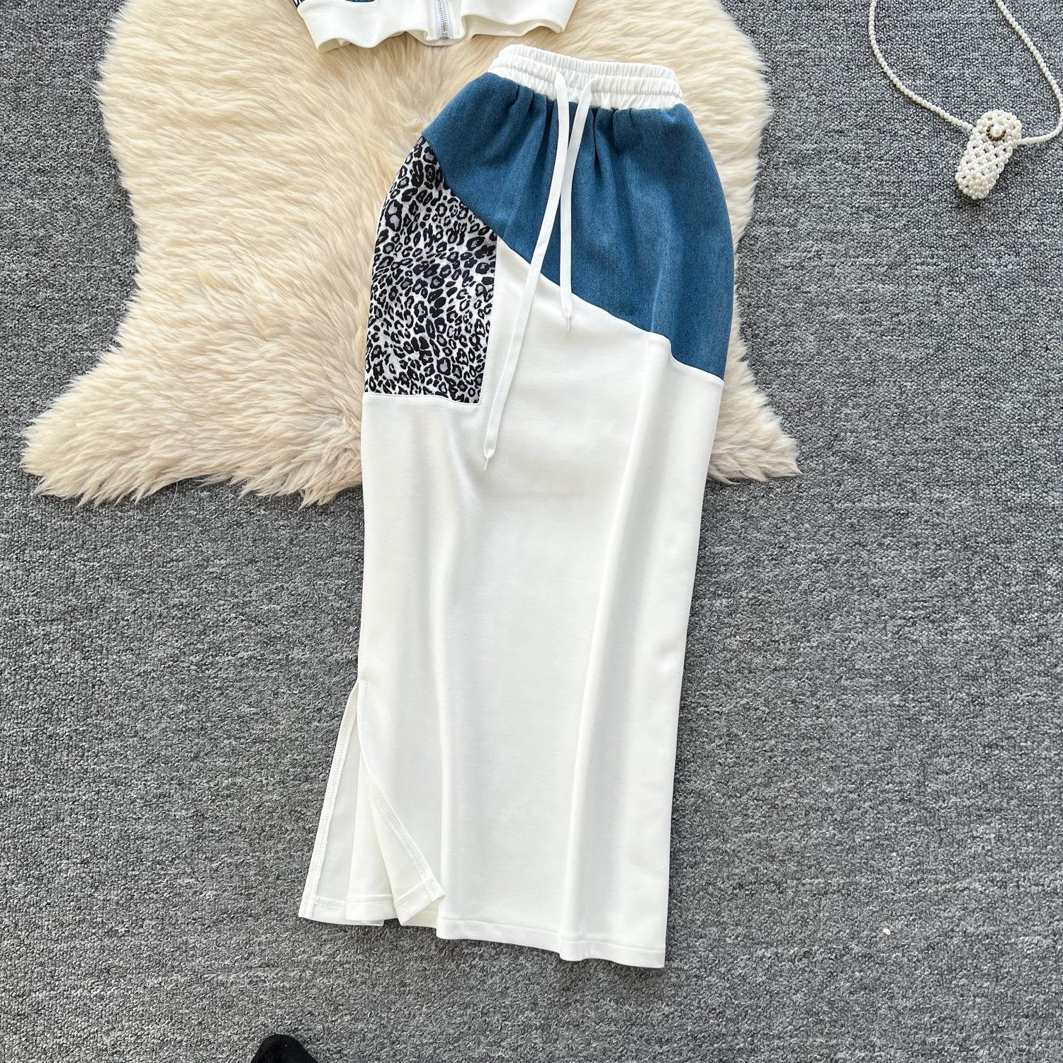올해 인기있는 세트 여성 여름 패션 표범 바느질 후드 스웨터 하이 허리 스플릿 힙 스커트 세트스토어 가기