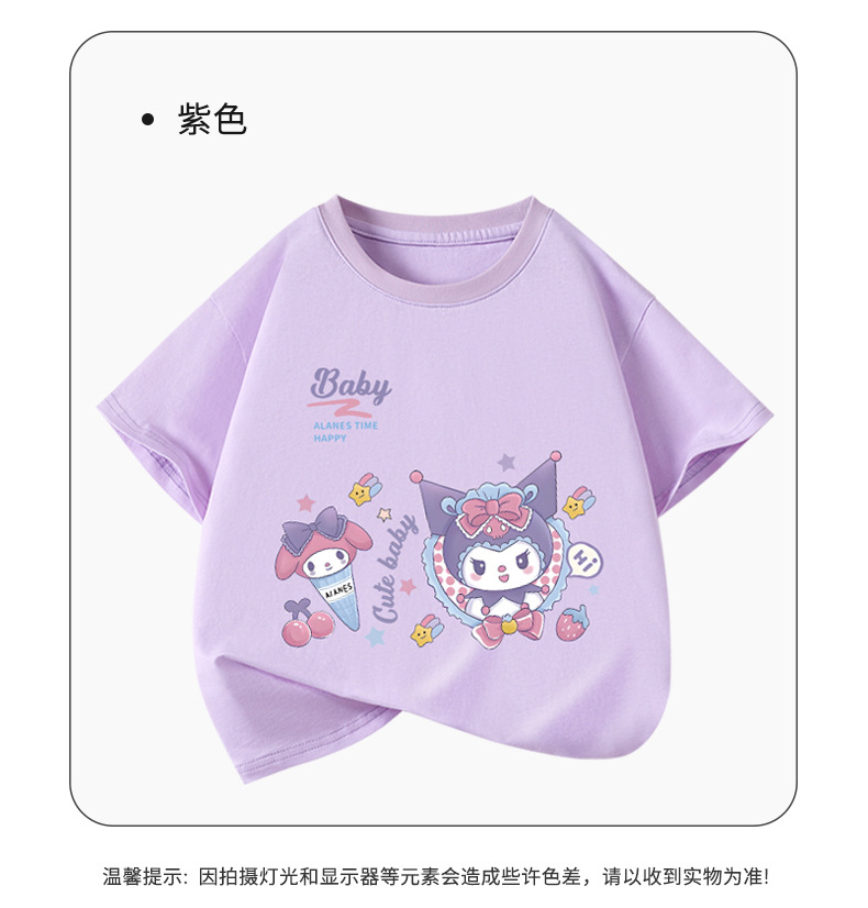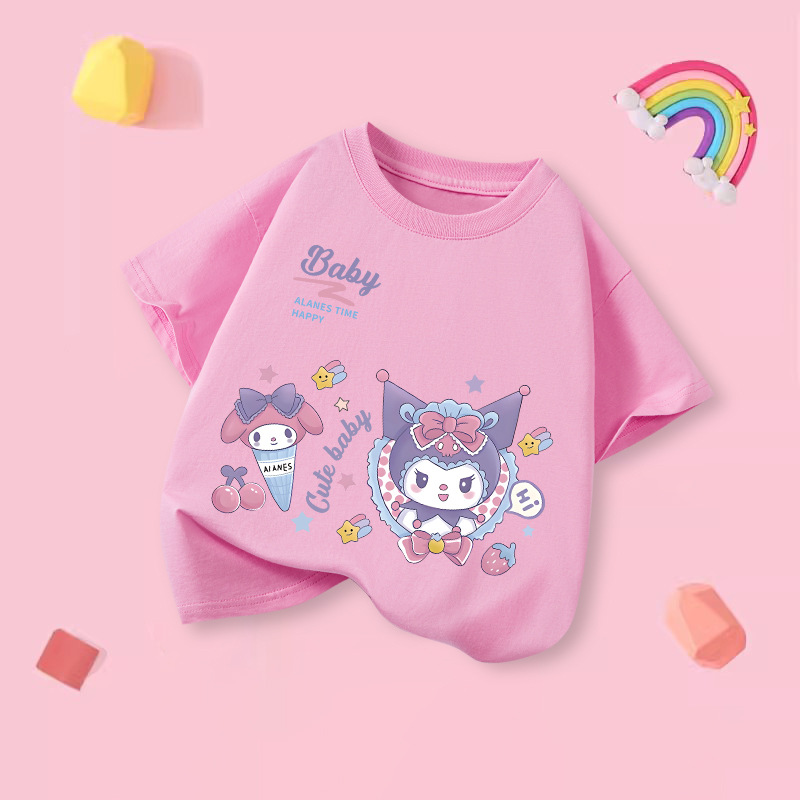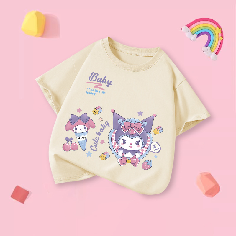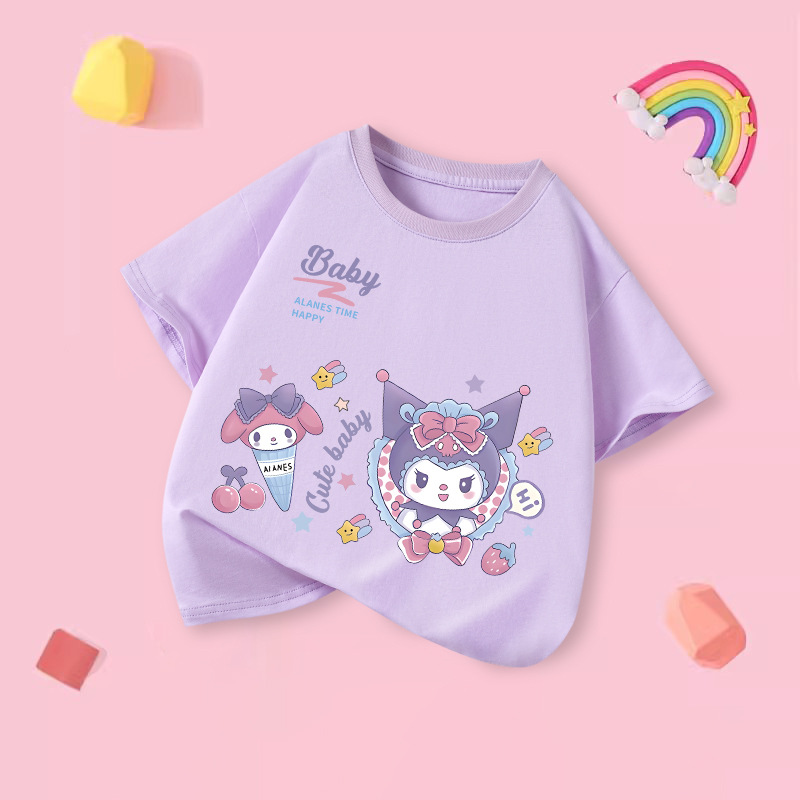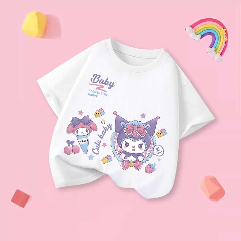 소녀 티셔츠 반팔 2025 새로운 도착 쿨로 미 중대형 어린이 최고 통기성 소녀의 순면 풀림 베이스 셔츠
